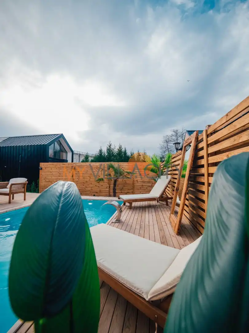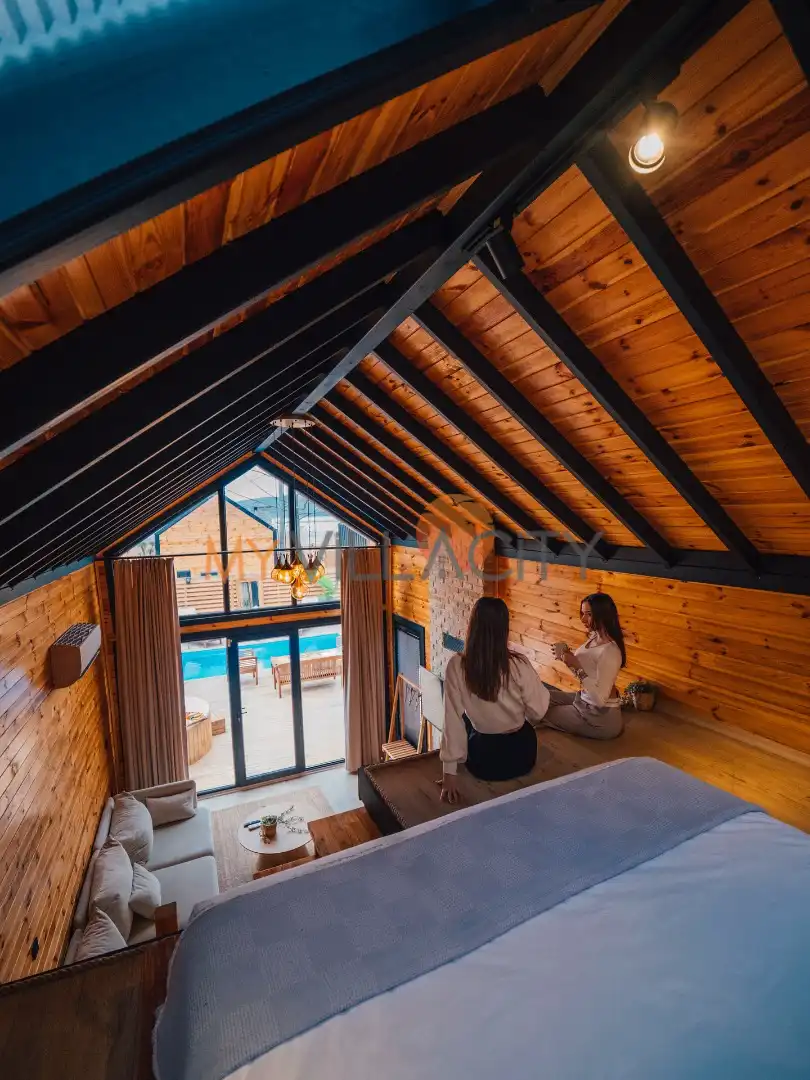 Dış alanında ise konukları özel ısıtmalı havuz ve açık alan jakuzisi karşılar. Özellikle soğuk mevsimlerde aktif olan sıcak havuz sistemi sayesinde dört mevsim keyifli bir konaklama mümkündür. Tamamen korunaklı müstakil bahçeye sahip olması, misafirlerin özel alanlarında rahatça vakit geçirmelerini sağlar.