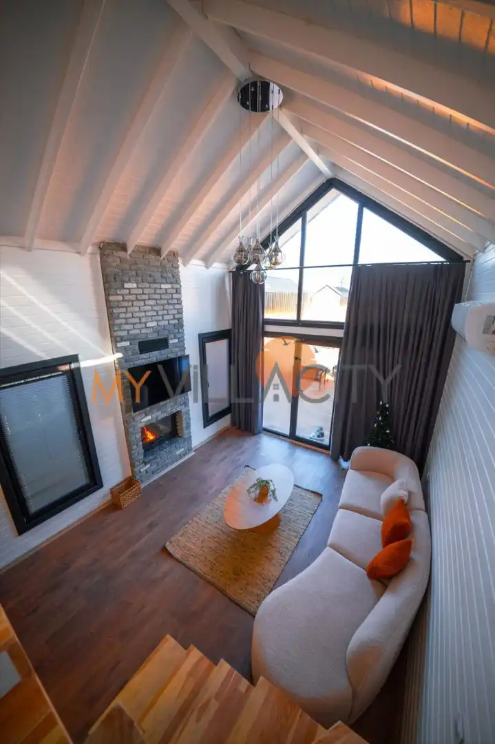 Her bungalov 2 kişi kapasitelidir ve içerisinde 1 adet çift kişilik yatak ile açılır kanepe, bir adet WC – banyo, klima, iç-dış görselli şömine, temel mutfak gereçleri ve ihtiyaç duyulan tüm donanımlar yer almaktadır. Şömine için odun hizmeti misafirlere ait olup, dilerseniz tesis çevresindeki paket servis seçeneklerinden kolayca yararlanabilirsiniz.