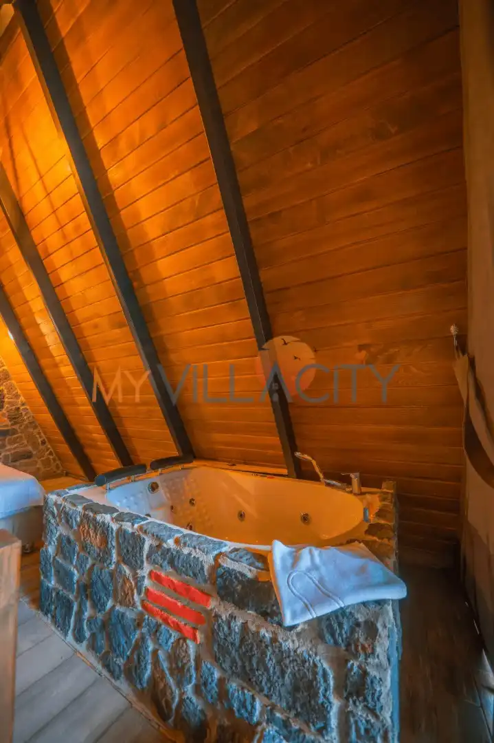 Bungalov içerisinde ihtiyaç duyulan tüm donanımlar özenle düşünülmüştür. Sıcak havuz, şömine, tam donanımlı mutfak, oturma alanı, WiFi ve TV gibi imkanlarla hem yaz hem kış mevsiminde konforlu bir tatil yapabilirsiniz. Bahçe alanında bulunan barbekü bölümü ise dış mekânda keyifli vakit geçirmenize olanak tanır. Graniva'nın doğal atmosferi, modern detaylarla birleşerek dört mevsim unutulmaz bir kaçamak deneyimi sunar.