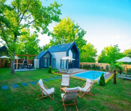 Bungalov La Noguera 5, Sapanca’nın eşsiz doğasıyla çevrili Yanık bölgesinde yer alan, modern tasarımı ve konforlu yapısıyla dikkat çeken 2+1 bungalovlardan oluşan özel bir tesistir. Maksimum 5 kişi konaklama kapasitesi sunan La Noguera, hem aileler hem de arkadaş grupları için ideal bir tatil deneyimi vadeder. Tesis içerisinde aynı konseptte toplam 6 adet havuzlu bungalov bulunmakta olup her biri misafirlerine dört mevsim konfor sunacak şekilde özenle tasarlanmıştır.
