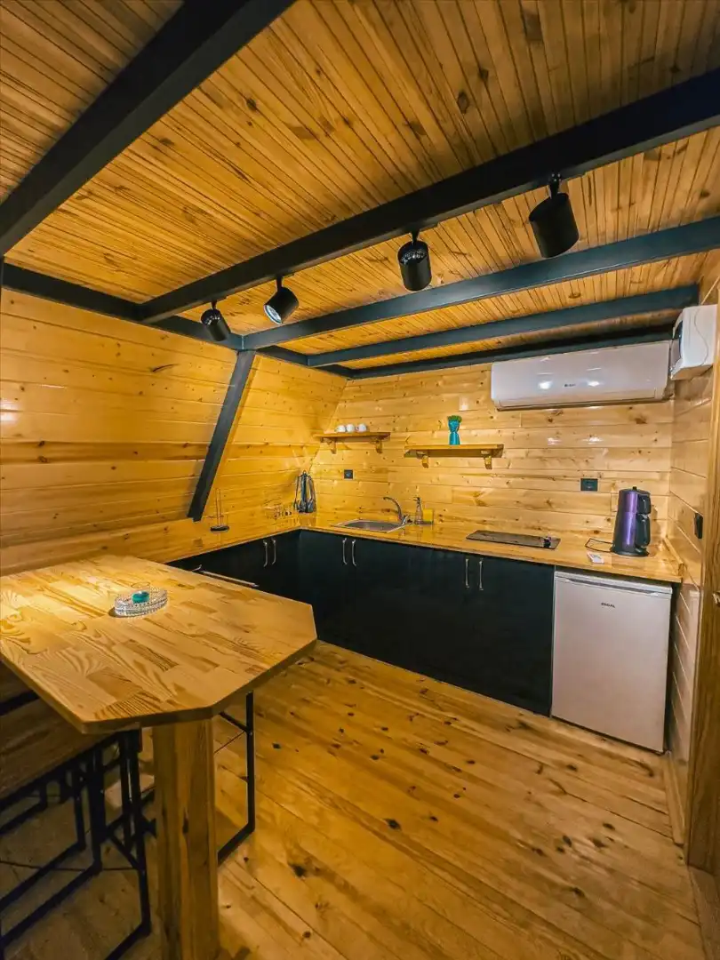 2 kişilik kapasitesiyle, sakin ve romantik bir kaçamak arayan misafirler için ideal bir atmosfere sahiptir. İç mekanda çift kişilik yatak, açılabilir köşe koltuk, WiFi, TV, Netflix, mutfak (ocak mevcut) ve klima gibi konfor detayları yer alır. Bu sayede ister dinlenebilir, ister yemeklerinizi kendiniz hazırlayarak ev sıcaklığını hissedebilirsiniz.