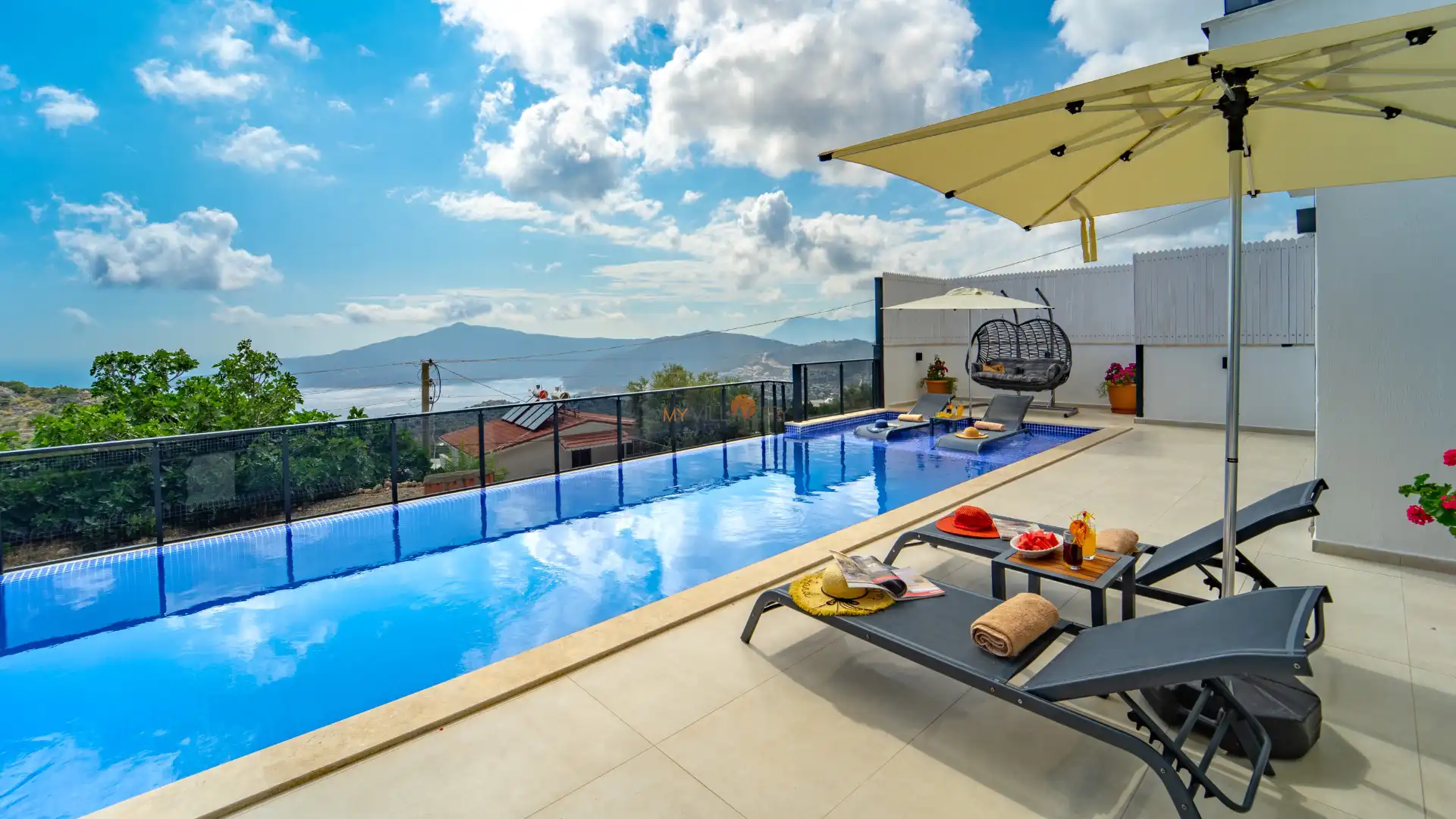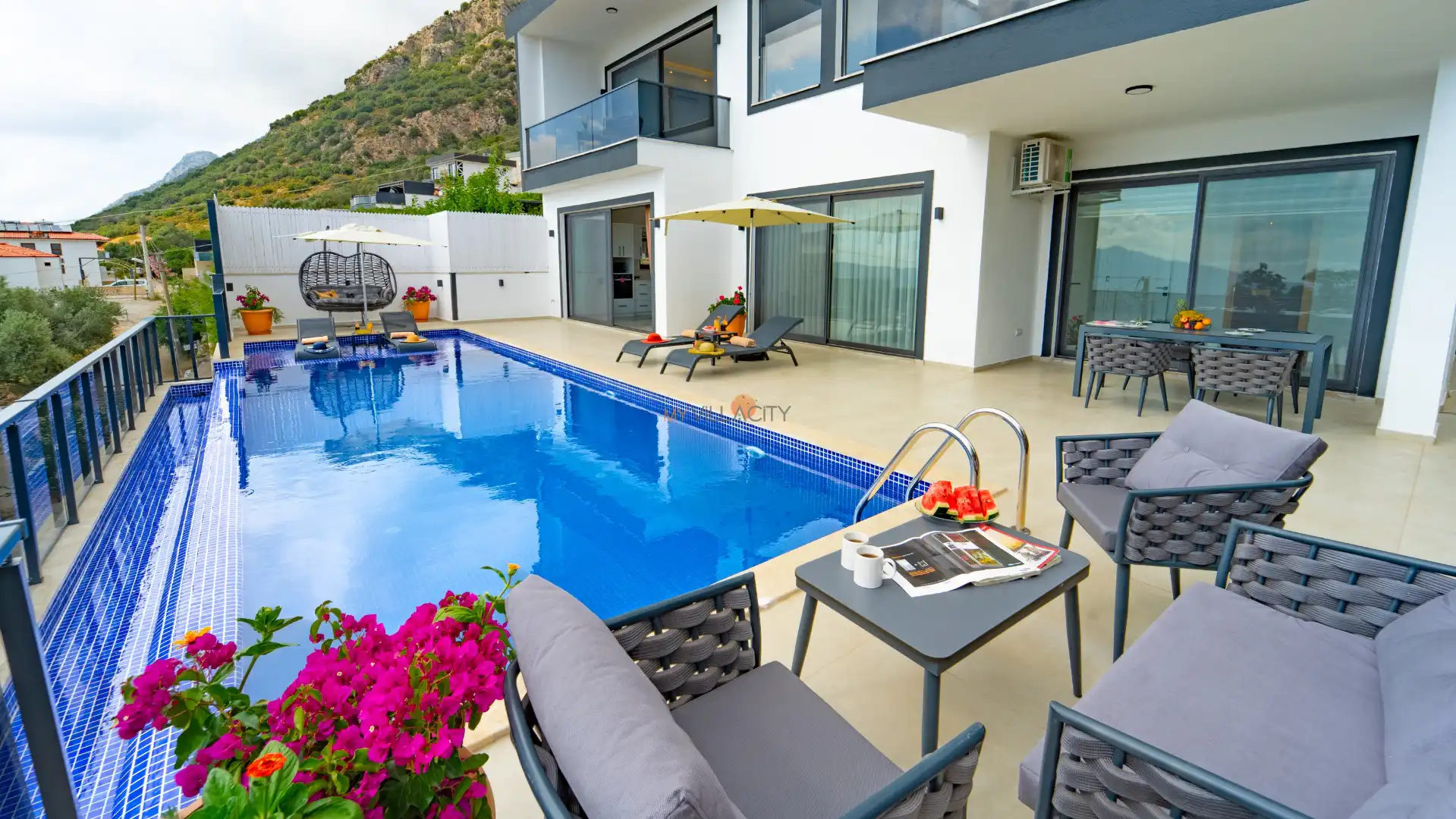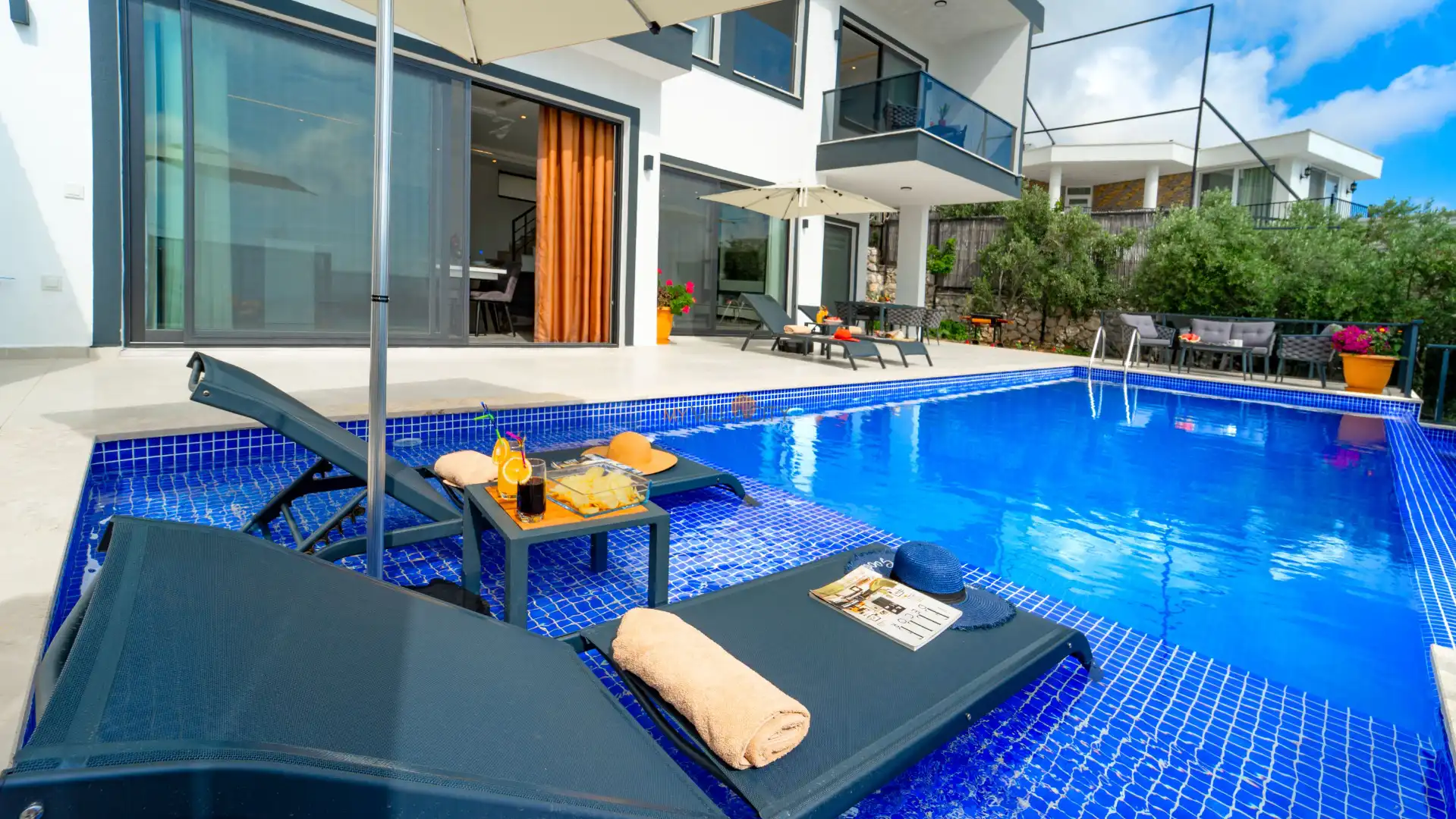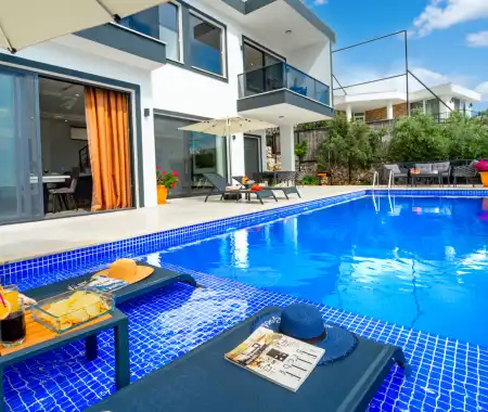 Villa Alba Kördere , Kalkan'ın Kördere bölgesinde yer alan 2 yatak odalı 4 kişilik kapasiteye sahip villamızdır. Kalkan'ın büyüleyici deniz manzarasına sahiptir. Havuz terasında mangal alanı, manzaraya karşı keyifle dinlenebileceğiniz rahat şezlonglar ve çocuk oyun alanı bulunmaktadır. Tatilinizin konforunu en üst düzeye taşıyan villamızın alt katında bir adet sauna bulunmaktadır. Tam donanımlı odalarında kendinizi evinizde hissedeceğiniz villamızda siz değerli misafirlerimizin mümemmel bir tatil geçirmesini diliyoruz.