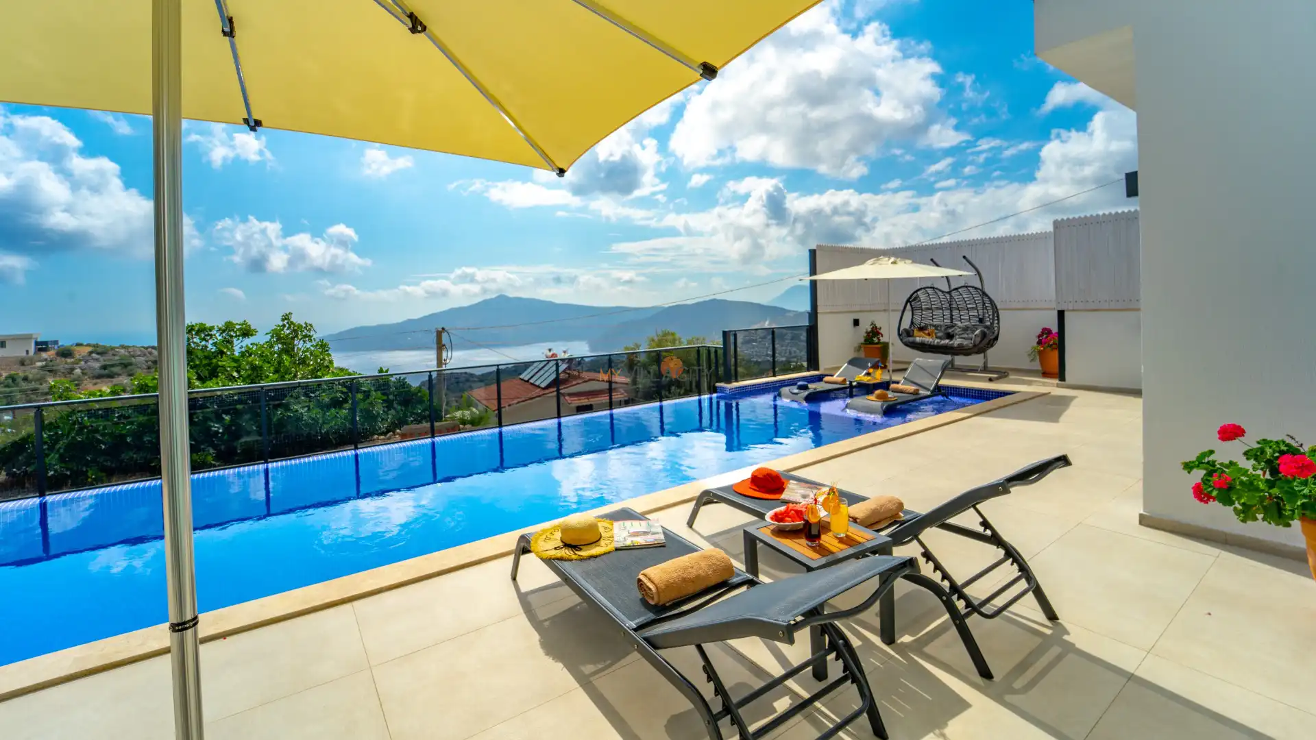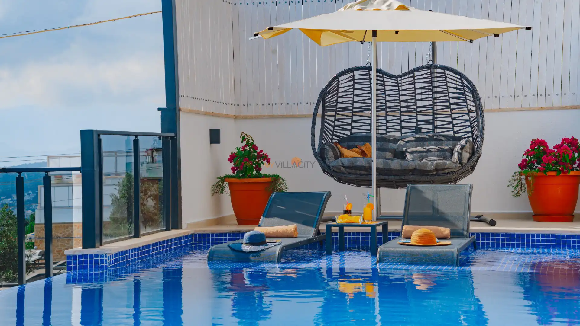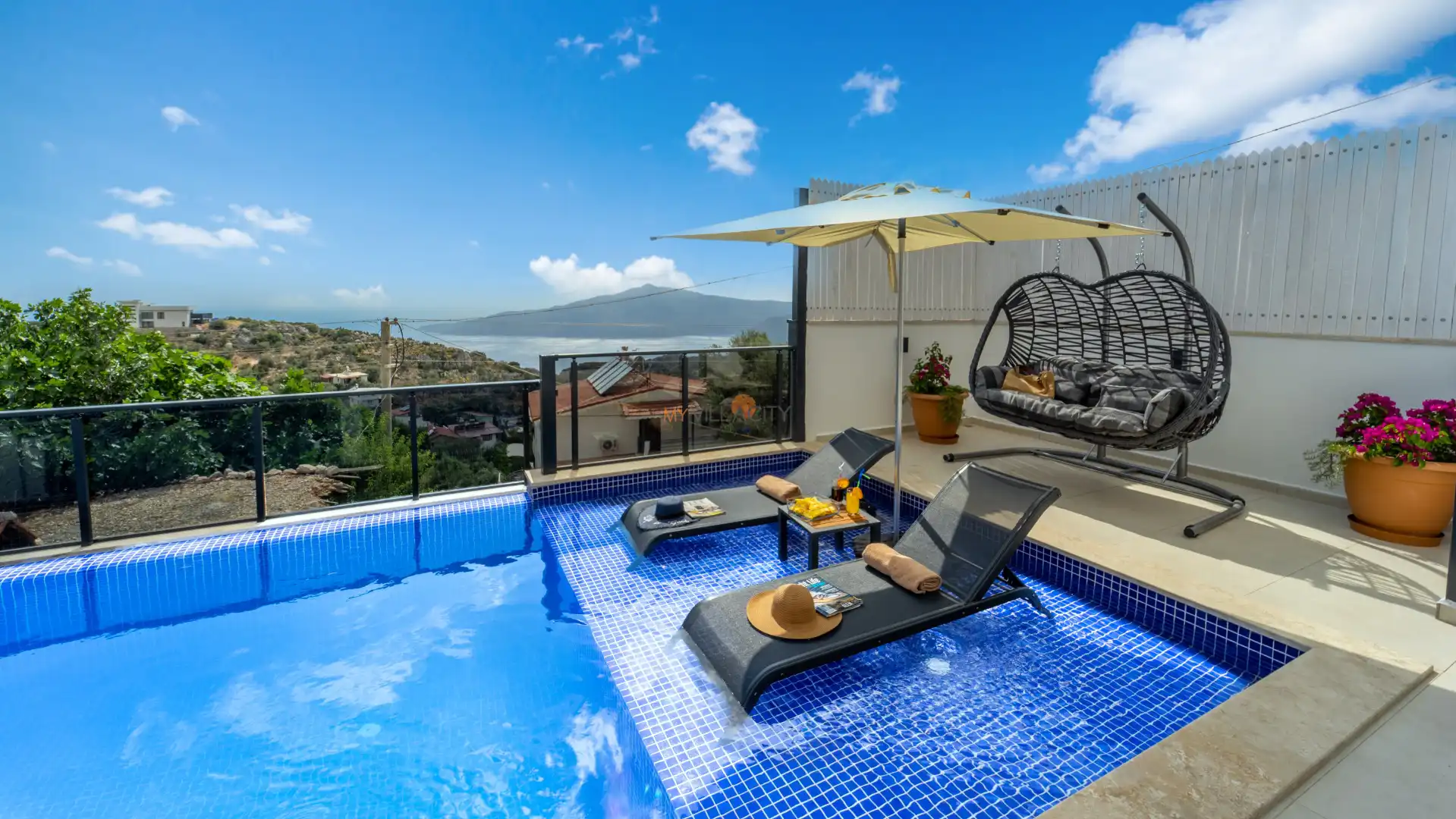Villa Alba Kördere , Kalkan'ın Kördere bölgesinde yer alan 2 yatak odalı 4 kişilik kapasiteye sahip villamızdır. Kalkan'ın büyüleyici deniz manzarasına sahiptir. Havuz terasında mangal alanı, manzaraya karşı keyifle dinlenebileceğiniz rahat şezlonglar ve çocuk oyun alanı bulunmaktadır. Tatilinizin konforunu en üst düzeye taşıyan villamızın alt katında bir adet sauna bulunmaktadır. Tam donanımlı odalarında kendinizi evinizde hissedeceğiniz villamızda siz değerli misafirlerimizin mümemmel bir tatil geçirmesini diliyoruz.