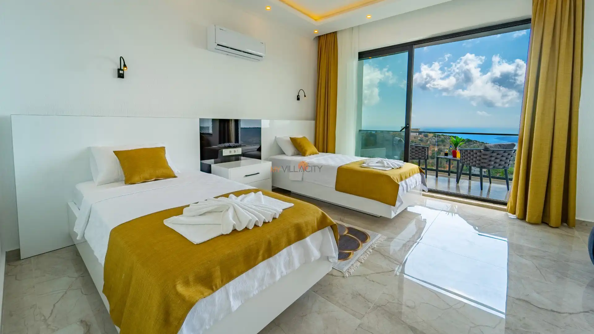 - 2 Tek Kişilik Yatak, 1 Banyo/WC, 2 Komodin, Elbise dolabı, Makyaj Masası, Klima,