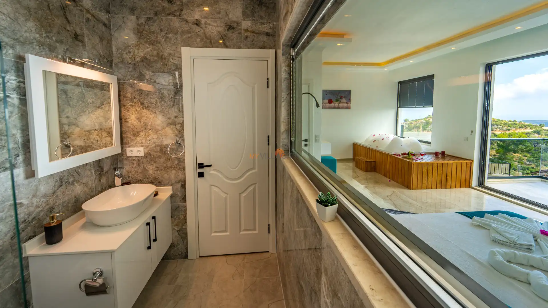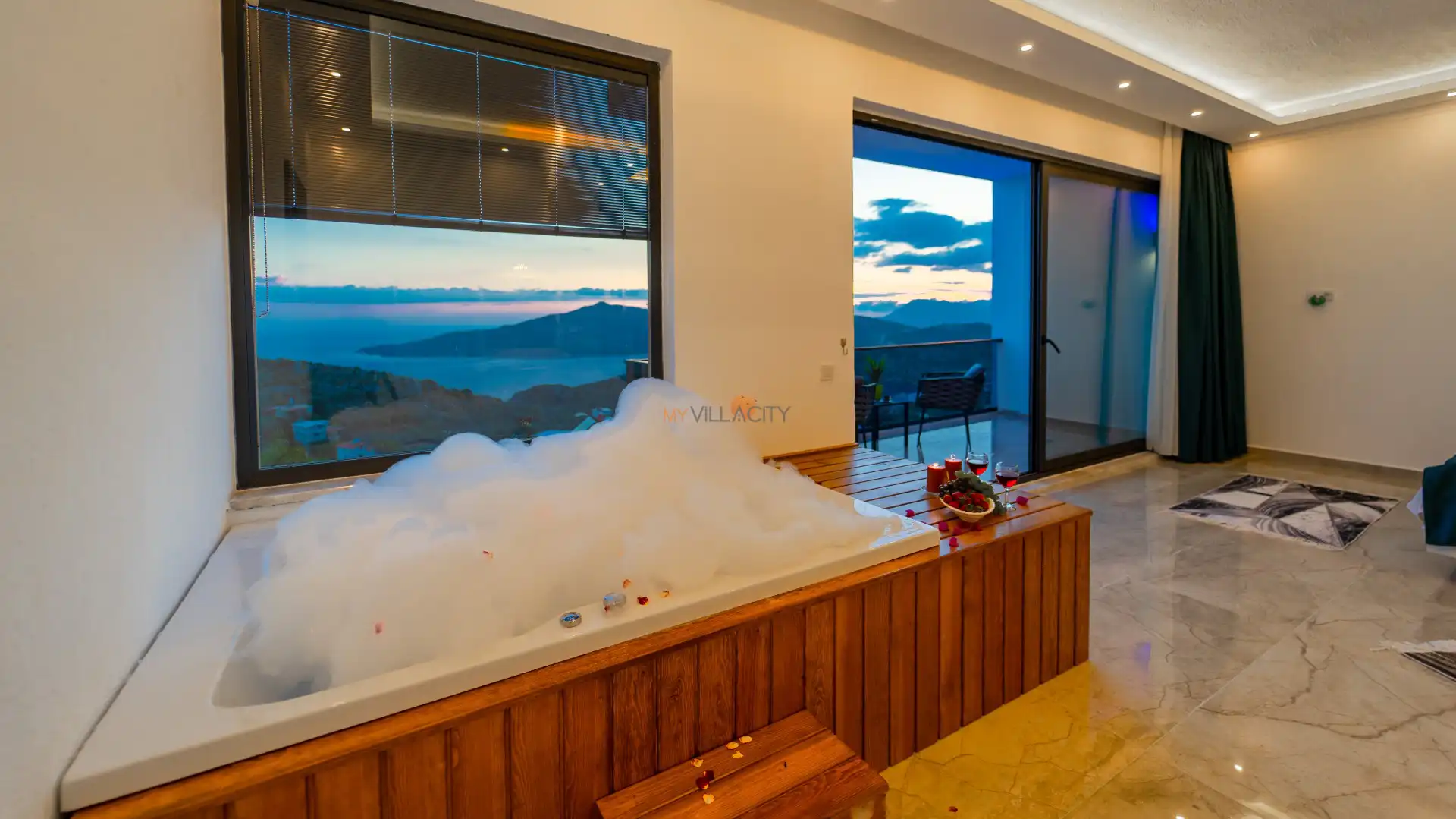 - 1 Çift Kişilik Yatak, 1 Jakuzi, Sauna, 1 Banyo/WC, 2 Komodin, Elbise dolabı, Makyaj Masası, Klima,