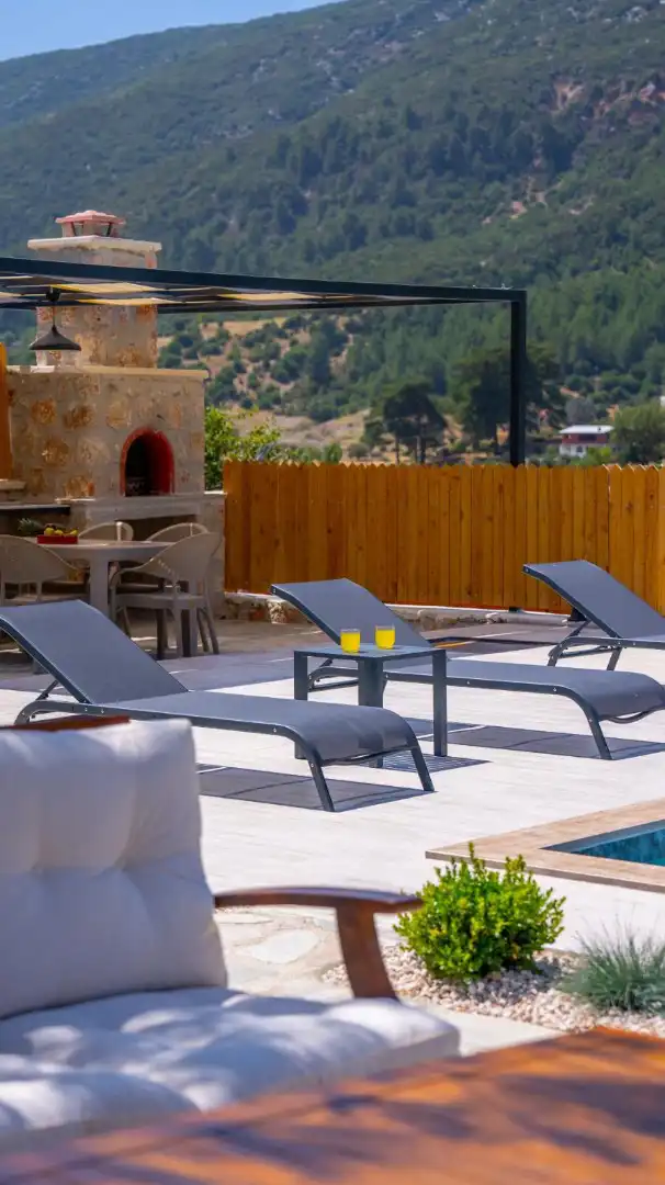 Villa Bellatrix, Kalkan Sarıbelen'de, 5 misafir kapasitesine sahip, doğa içinde konumlanmış, özel havuzlu bir tatil villasıdır. Villa, şık mobilyalar, jakuzi ve geniş yaşam alanları sunar, konforlu bir tatil için idealdir.