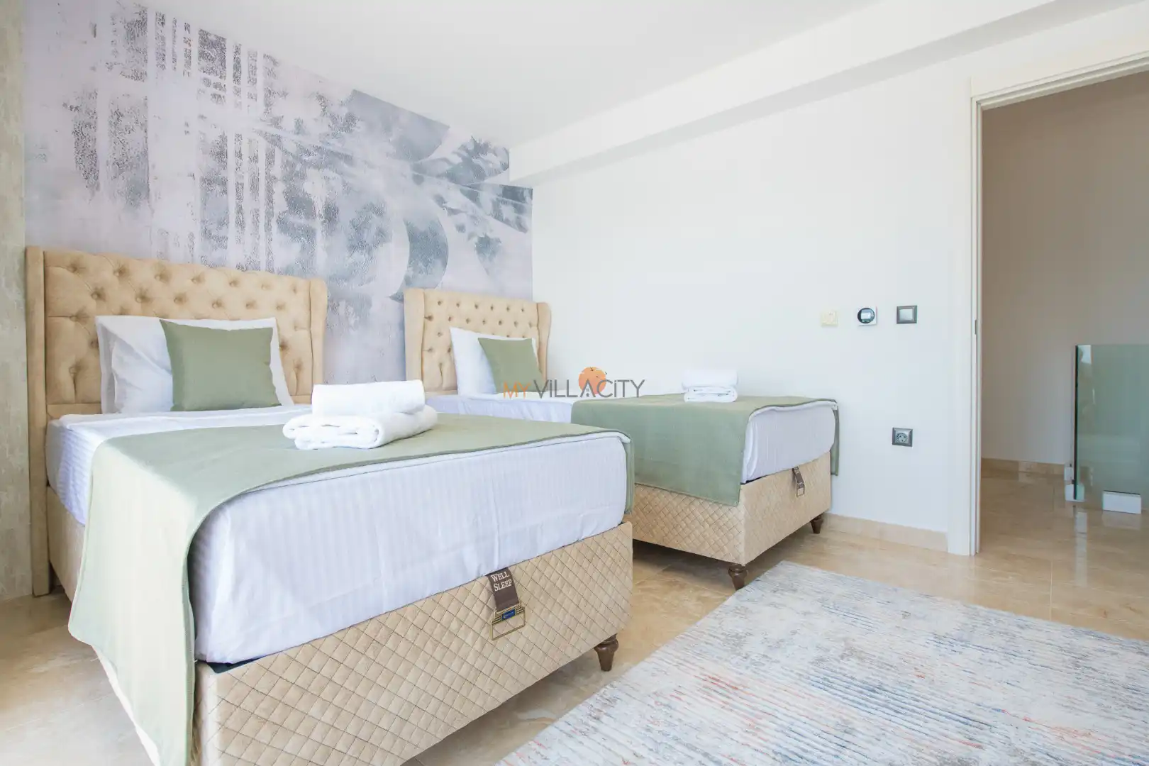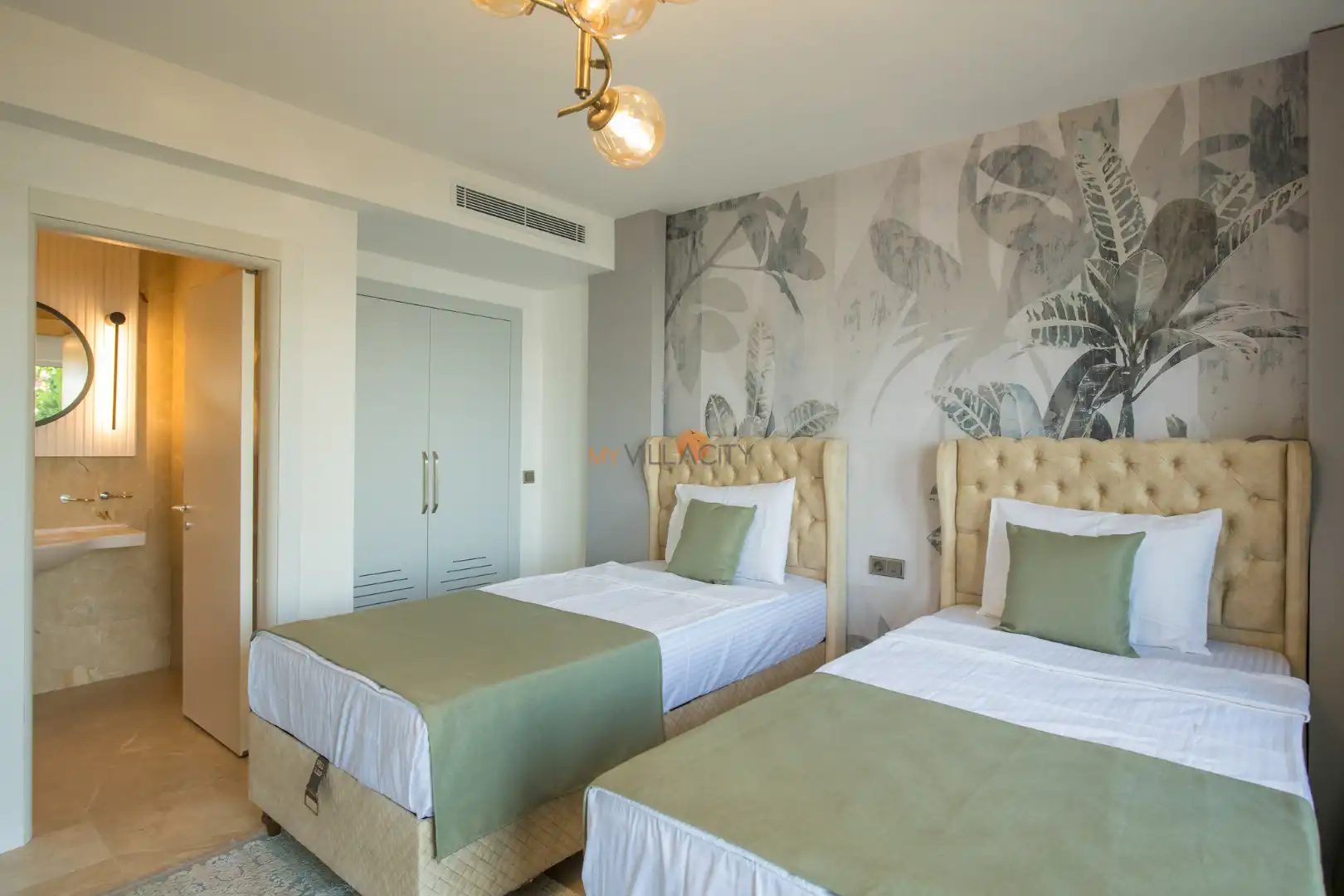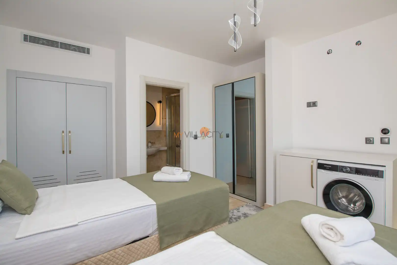 - 2 Tek Kişilik Yatak, 1 Banyo/WC, 2 Komodin, Elbise dolabı, Makyaj Masası, Klima,