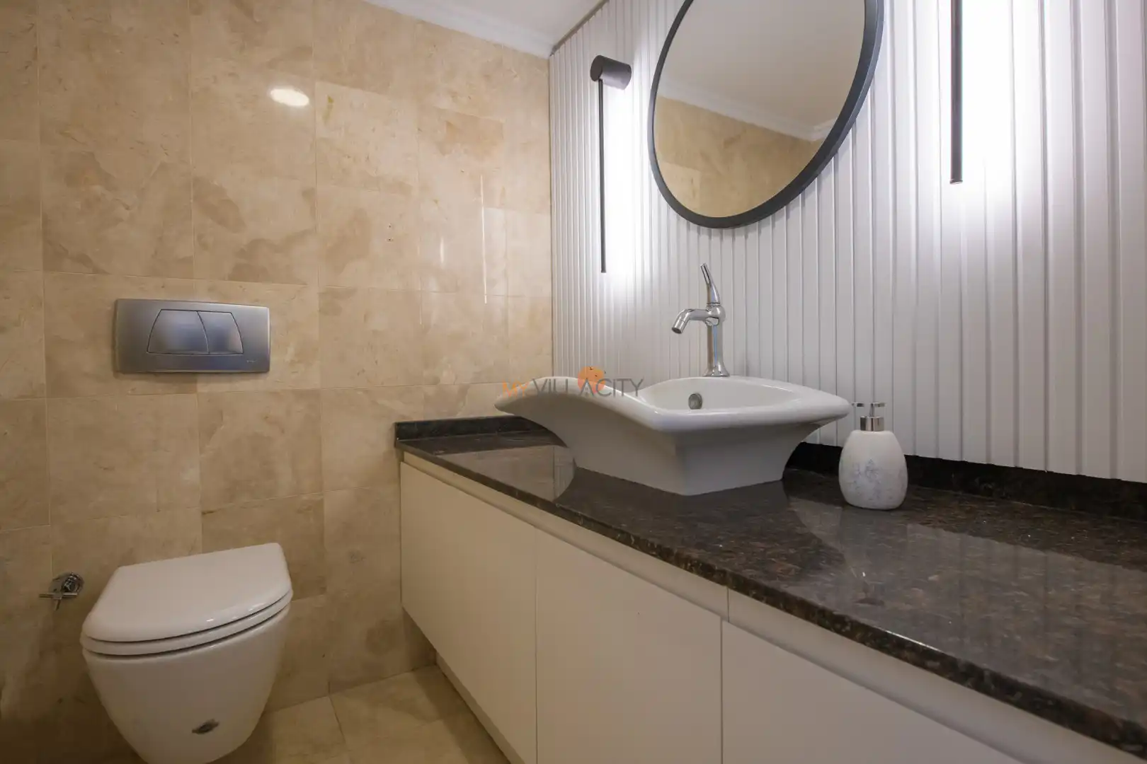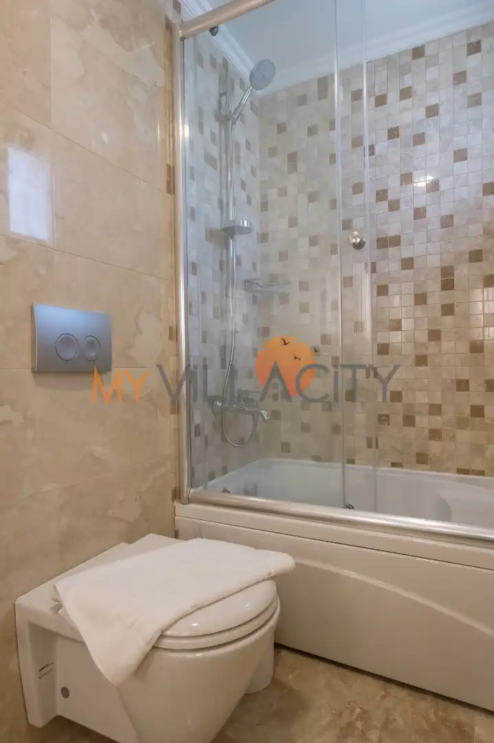 - 1 Çift Kişilik Yatak, 1 Banyo/WC, 2 Komodin, Elbise dolabı, Makyaj Masası, Klima,