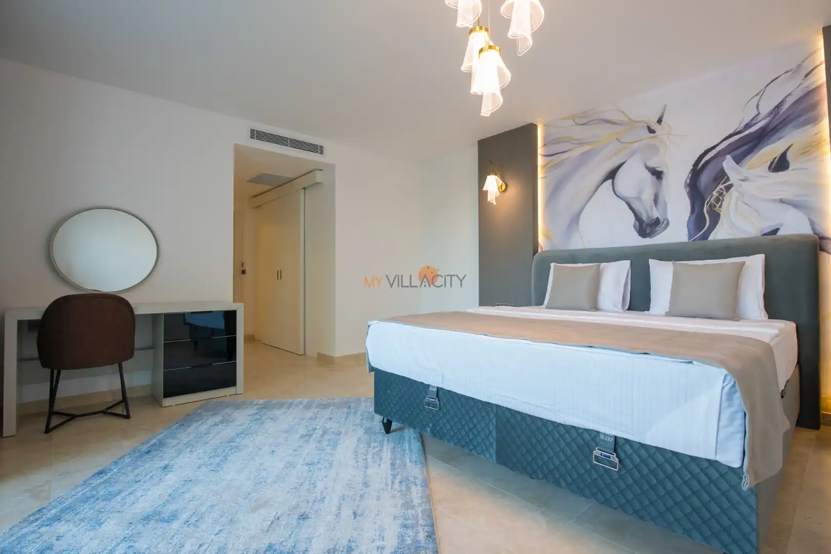 - 1 Çift Kişilik Yatak, 1 Banyo/WC, Elbise dolabı, Makyaj Masası, Klima,