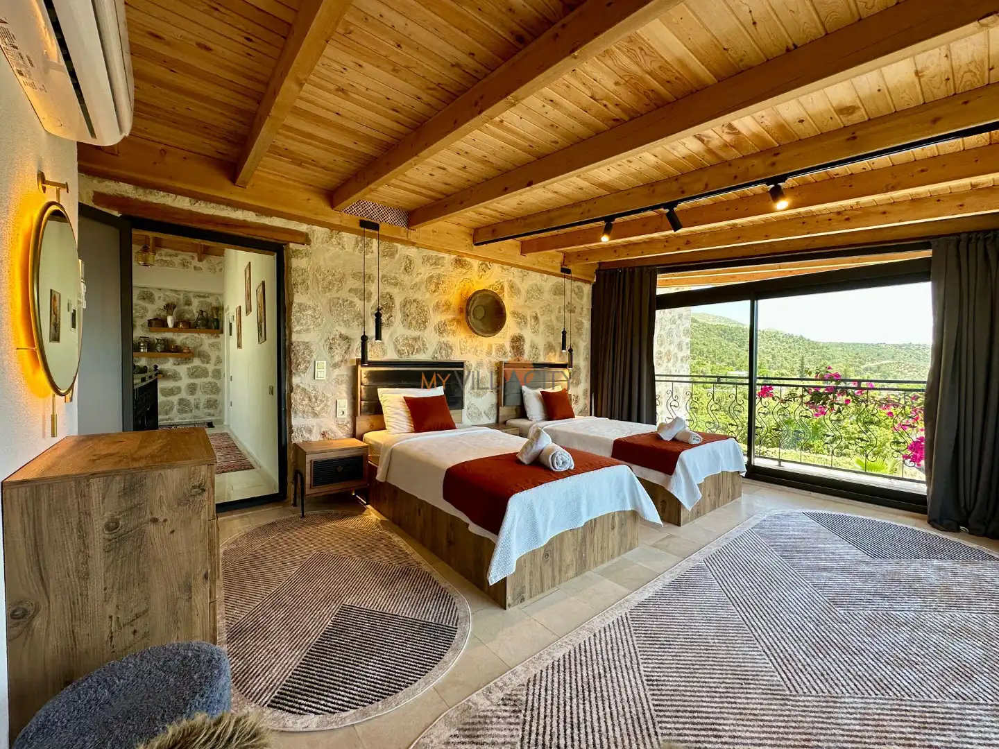 2 Tek Kişilik Yatak, 1 Banyo/WC, 2 Komodin, Elbise dolabı, Makyaj Masası, Klima,