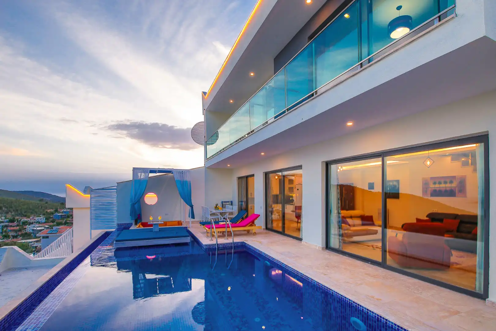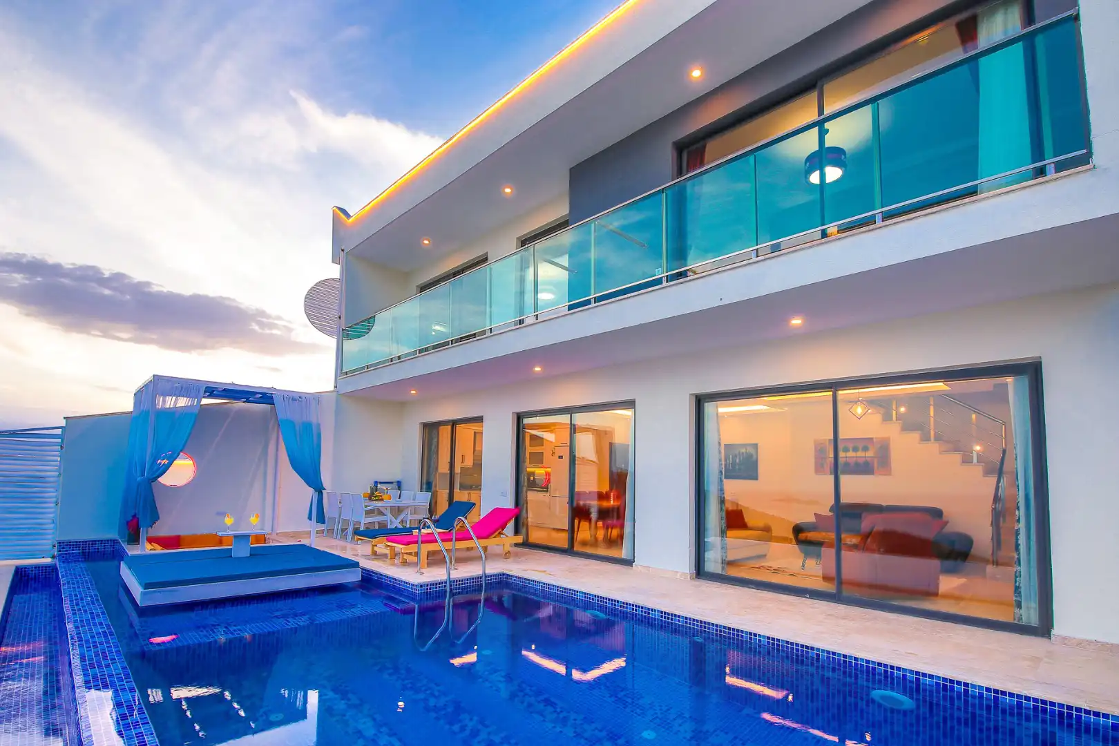 Villa Etiler, Kalkan'ın Akbel bölgesinde, 4 kişiye özel havuzlu ve deniz manzaralı konaklama sunar. Huzurlu bir tatil için idealdir, geniş aile ve arkadaş gruplarına uygun tasarlanmıştır.