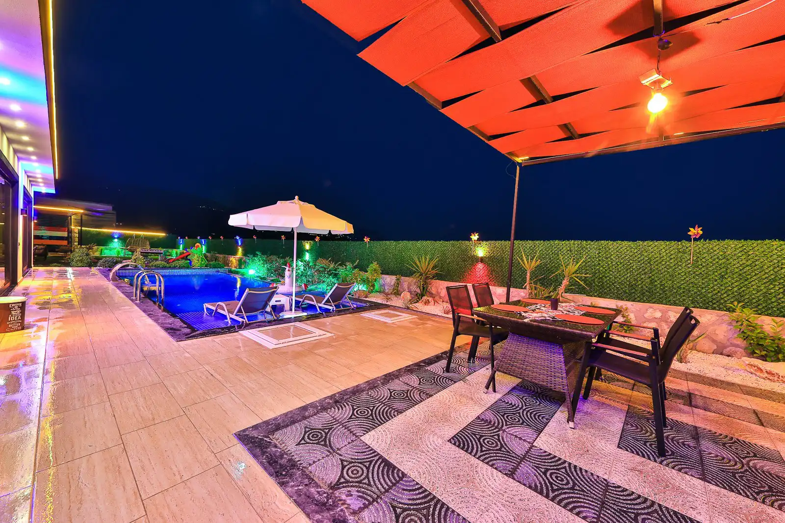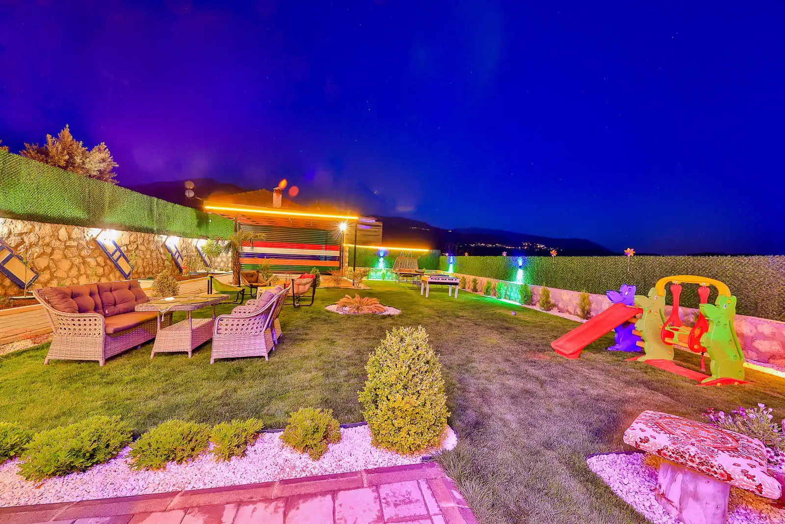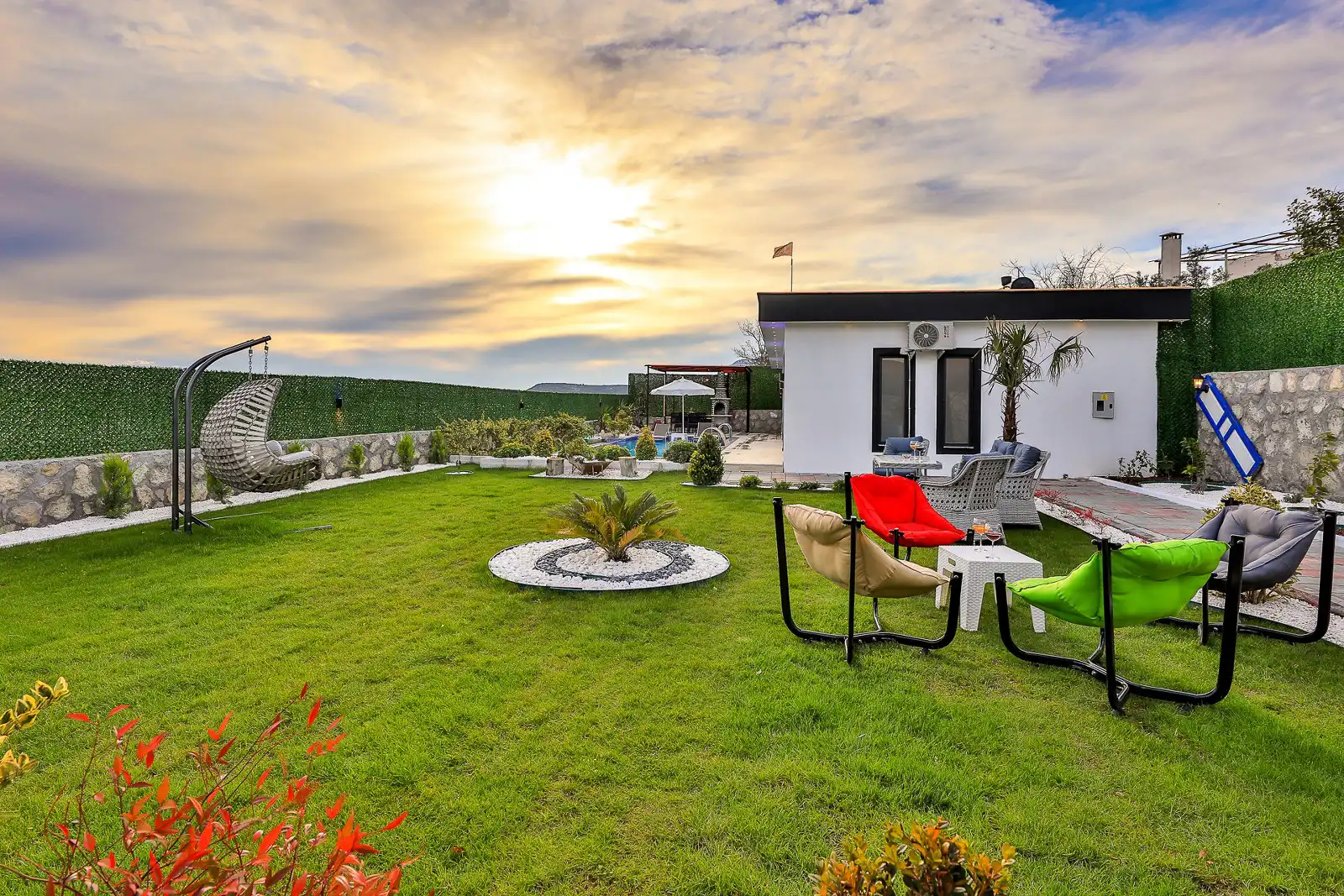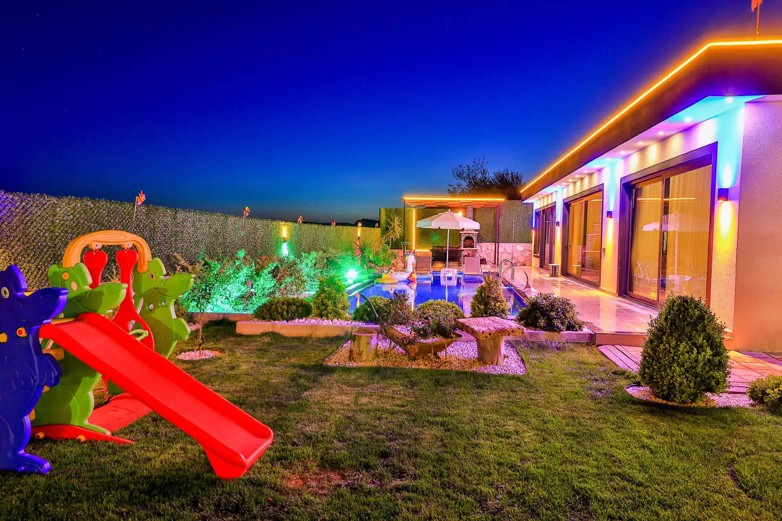 Villa Eylül Excalisuve geniş bahçeli ,muhafazakar ve özel havuzlu 4 kişilik villamızdır. Çocuklar için oyun parkı, masa tenisi ve langırtı bulunan villamızda aktivite açısındanda oldukça fazladır. Sevdiklerinizle beraber özel havuzda akşam güneşinin tadını çıkarabilirsiniz veya geniş barbekü alanında hoş sohbetler eşliğinde keyifli vakitler geçirebilirsiniz .