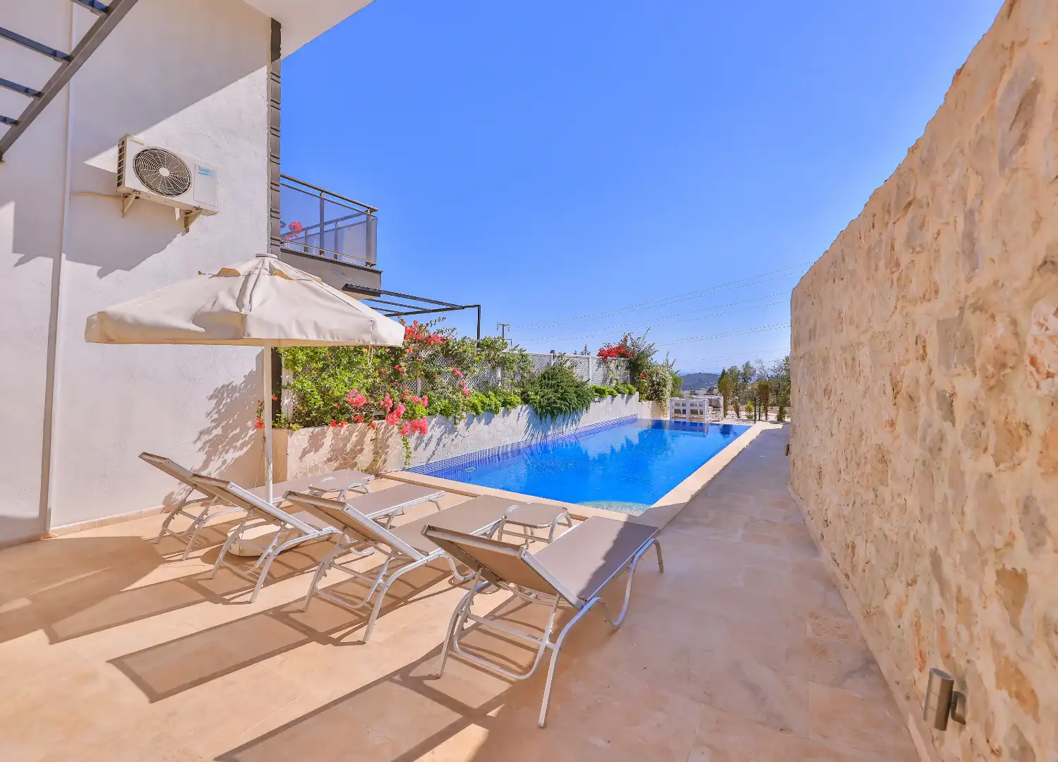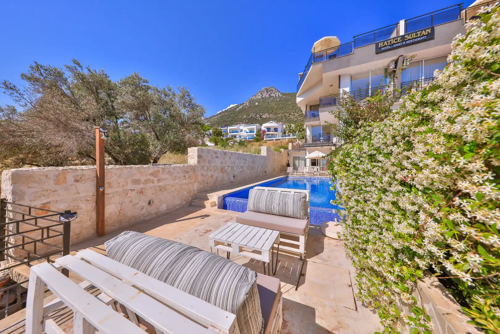 Villa Hatice Sultan 2 , Kaş Kalkan bağlı Kızıltaş Bölgesinde yer almaktadır. Bu villa, 3 yatak odası ve 6 kişilik kapasiteye sahiptir. Özellikle muhafazakar aileler ve geniş aileler için ideal bir seçenektir.Havuz alanı tamamen korunaklıdır ve misafirlerin mahremiyetine önem verilmektedir. Ana yatak odasında özel banyo ve tuvalet bulunmaktadır. Villamızın lüks ve konforlu tasarımı göz kamaştırmaktadır. Havuz terasımız oldukça geniştir ve bu alanda keyifli vakit geçirebilirsiniz. Ayrıca villamız, muhteşem deniz manzarası, sakin doğa manzarası sunmaktadır. Modern mobilyaları,şık dekarasyonu,şık dizaynırı ile ön plana çıkmaktadır.İhtiyaç duyabileceğiniz tüm temel araç ve gereçler villada mevcuttur. Doğayla iç içe, sakin ve huzurlu bir tatil isteyen misafirlerimiz için mükemmel bir seçimdir.