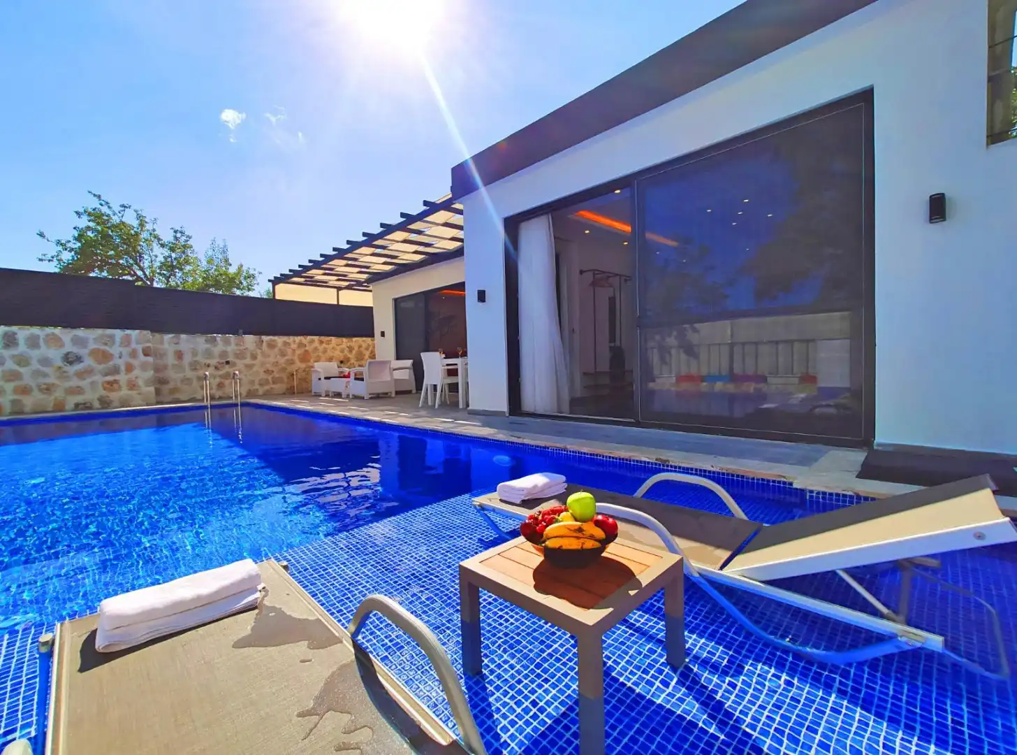 Villa Lantana Kalkan Üzümlü mevkisin de konumlanan özel havuzlu 2 kişi konaklama kapasiesine sahip muhafazakar villalarımızdandır. Şık konforlu ve modern mimarisiyle ;özel havuza,şezlonga,jakuziye ve konforlu mobilyalara sahiptir. Hem çekirdek ailelerimize hem de balayı çiftlerimize uygundur.