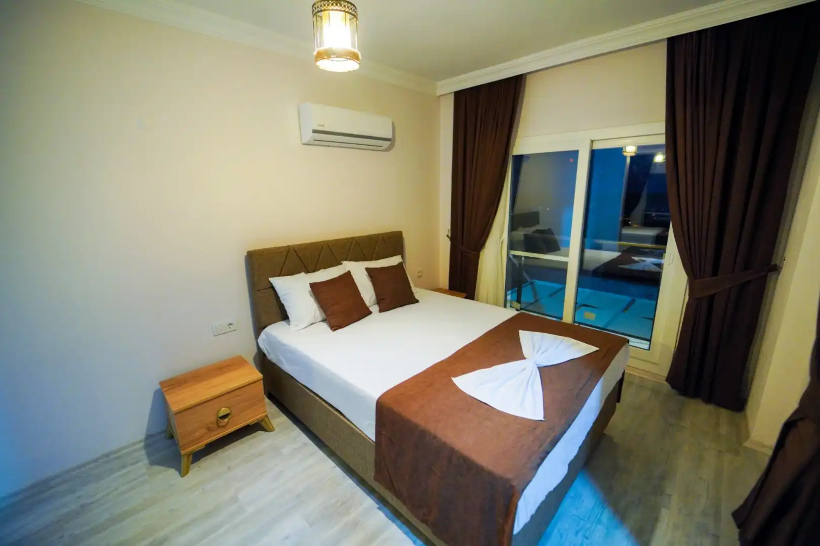 - 1 Çift Kişilik Yatak, 1 Banyo/WC, 1 Komodin, Elbise dolabı, Makyaj Masası, Klima,