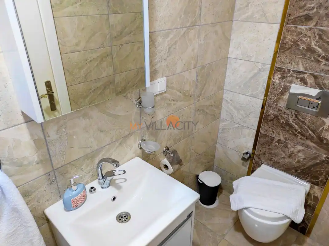 - 1 Çift Kişilik Yatak, 1 Banyo/WC, 2 Komodin, Elbise dolabı, Makyaj Masası, Klima,