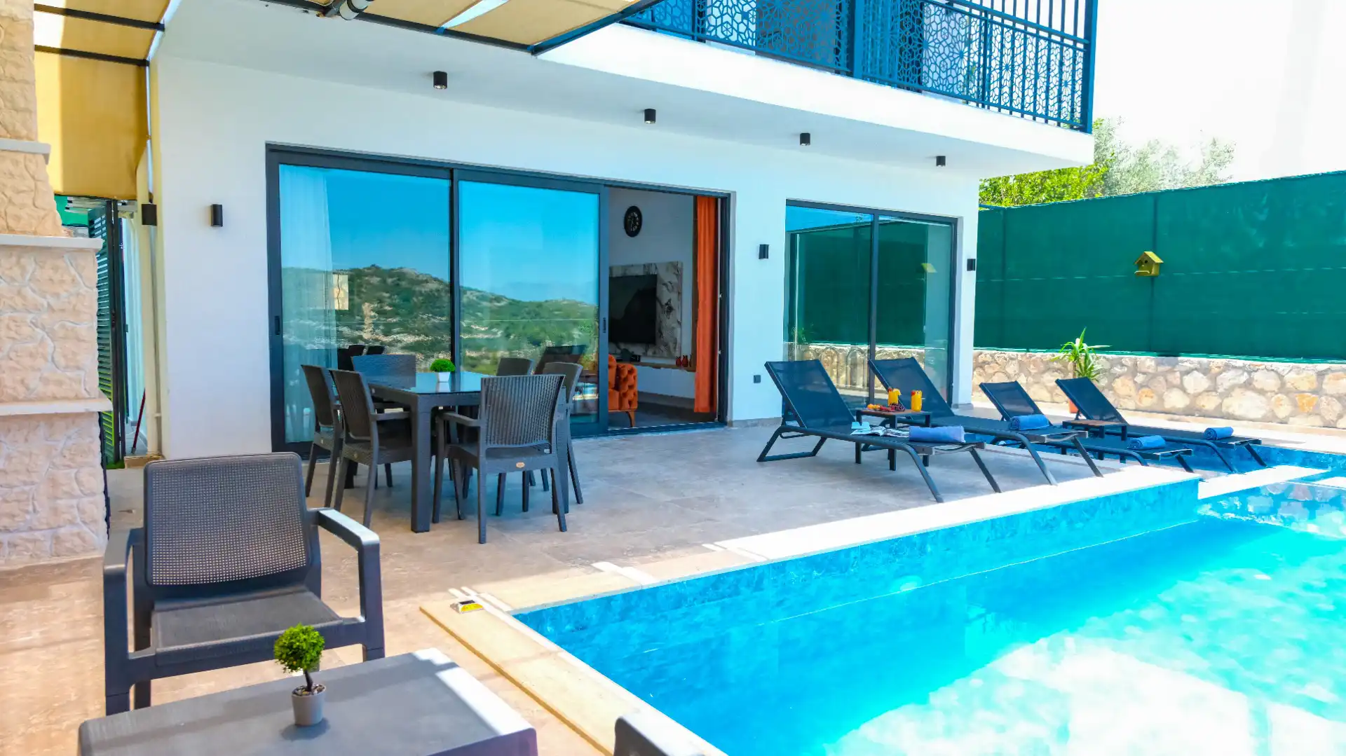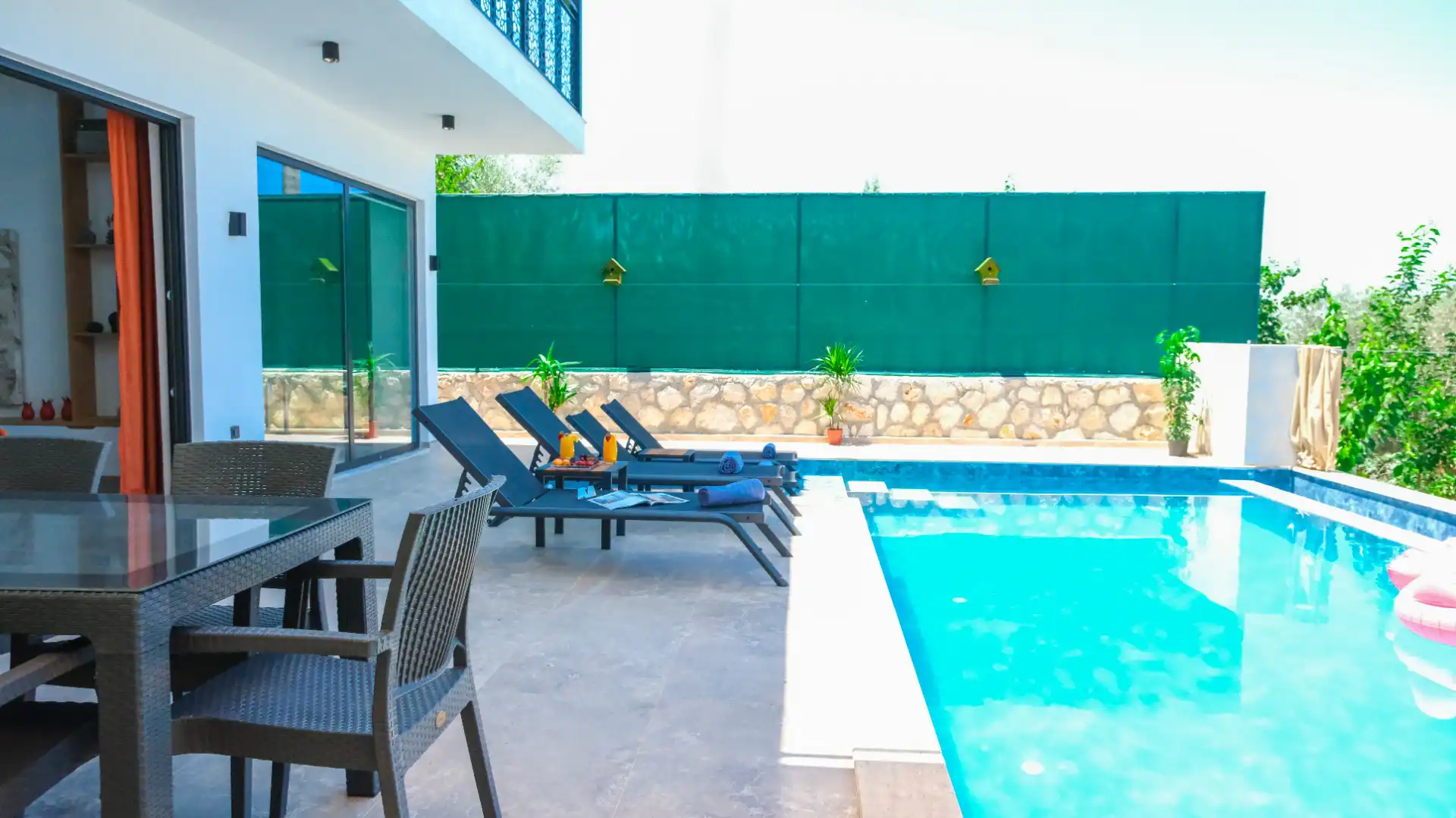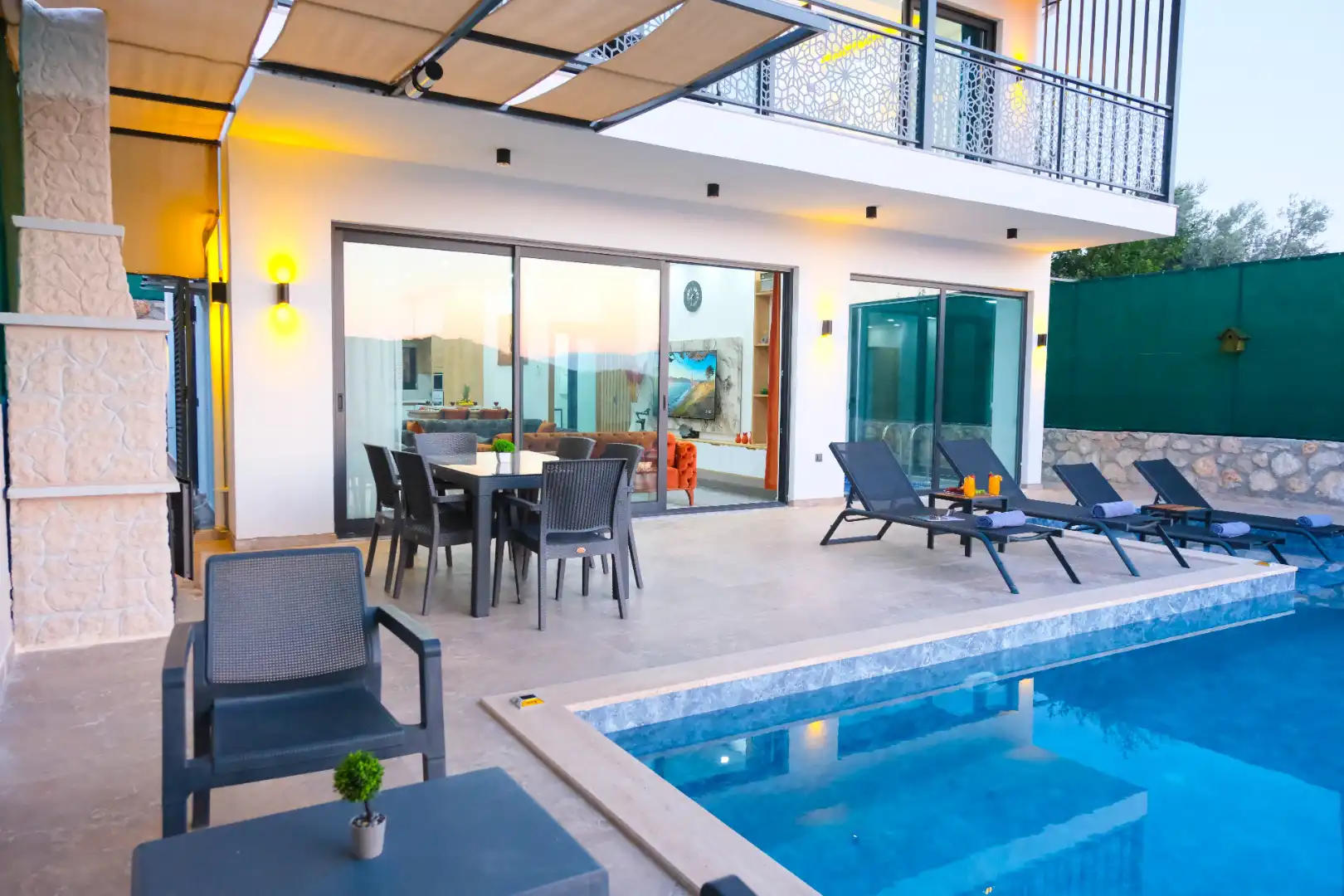 Villa Loft Üzümlü ; Kalkan Üzümlü bulunan muhafazakar bir balayı villasıdır. Merkeze yaklaşık 15-20 dakika araç mesafesinde bulunan bu villamız gözlerden uzak, huzurlu bir tatil geçirmek isteyen misafirlerimizin ilk tercihleri arasında yer almaktadır. Geniş bahçesinde size özel yüzme havuzu, şezlonglar, mangal alanı ve salıncak bulunmaktadır. Modern yapıdaki villamızın içerisi tam donanıma ve yüksek konfora sahiptir. Villamızın mutfağında ve diğer odalarında her şey özenle dizayn edilmiştir. Ayrıca misafirlerimizin vazgeçilmezi jakuzi ve ısıtmalı havuz da villamızda bulunmaktadır.