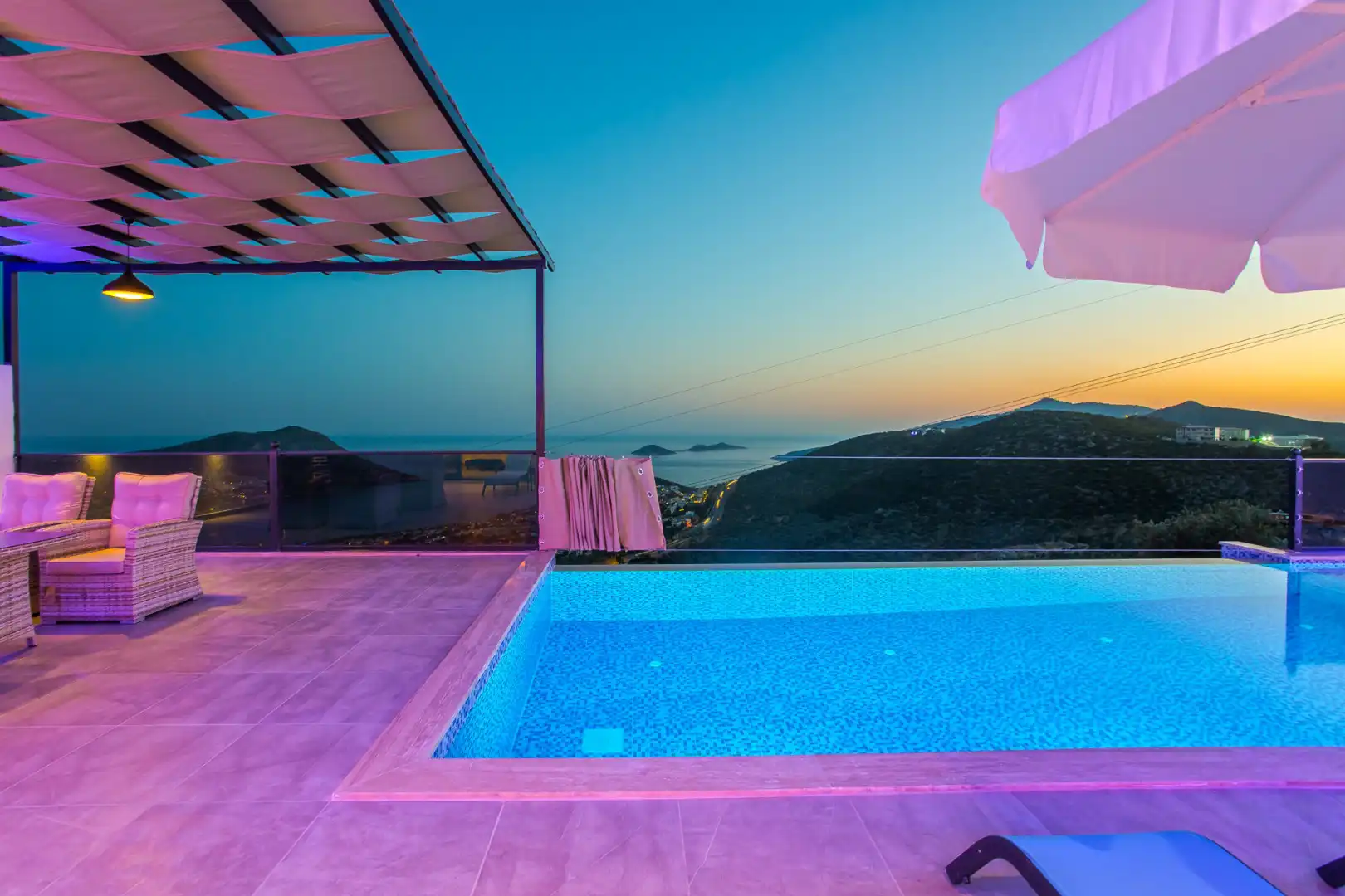 Villa Manzara; Kalkan merkezi konumuna yakın, lüks ve deniz manzaralı bir villadır. Havuz terasında mangal alanı, yemek masası ve rahat şezlonglar bulunmaktadır. Villa içerisi tatilinizi konforlu şekilde geçirebilmeniz adına tam donanımlı hale getirilmiştir. Manzaraya sahip odaları sayesinde villada vakit geçirmek sizin için keyifli bir hale gelmektedir. Çift kişilik yatak odasında, deniz manzarasına karşı keyifli dakikalar geçirebileceğiniz bir adet jakuzi bulunmaktadır. Muhafazakar ailelerin ve balayı çiftlerinin tercihleri arasında yer alan villamızda siz değerli misafirlerimizin güzel bir tatil geçirmesini diliyoruz.