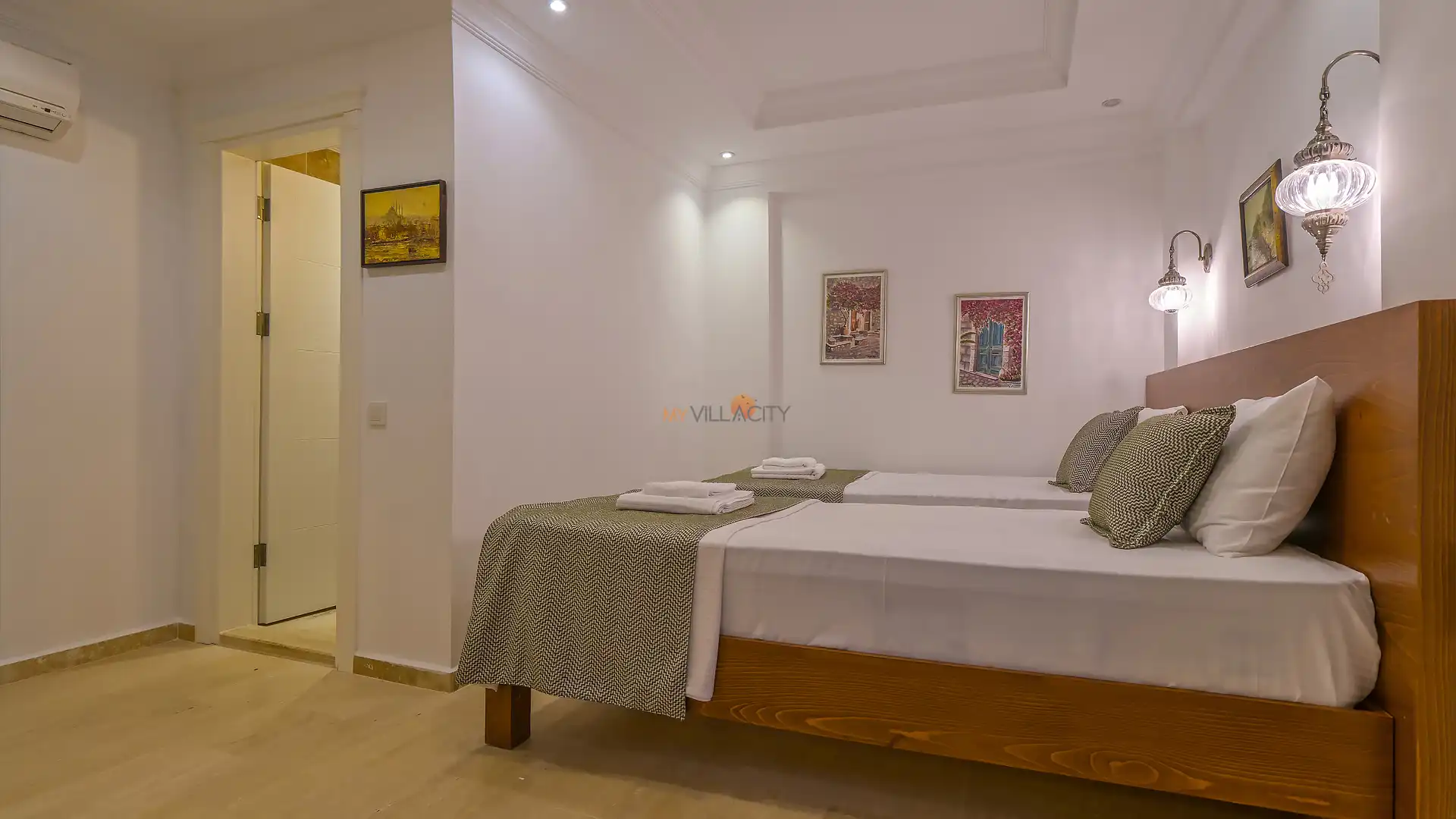 2 Tek Kişilik Yatak, 1 Banyo/WC, 2 Komodin, Elbise dolabı, Makyaj Masası, Klima,