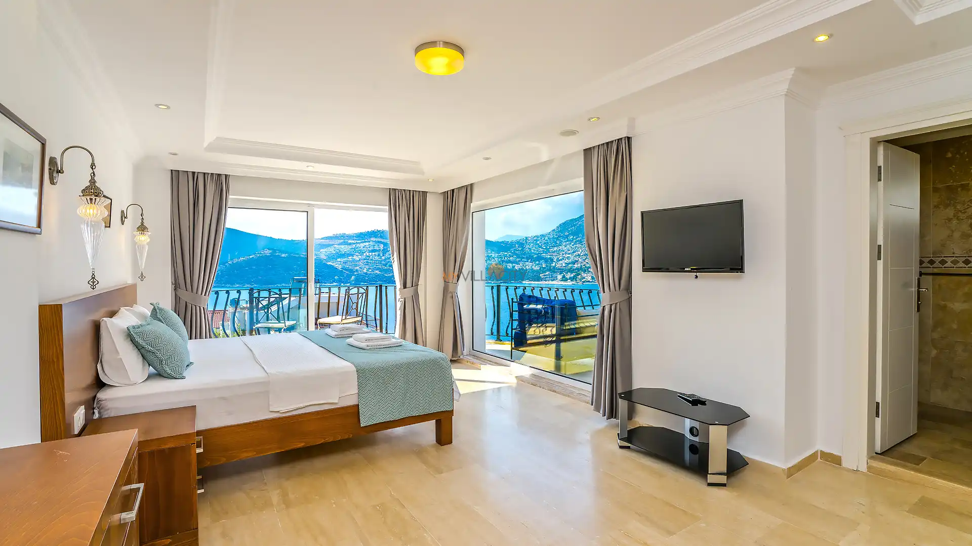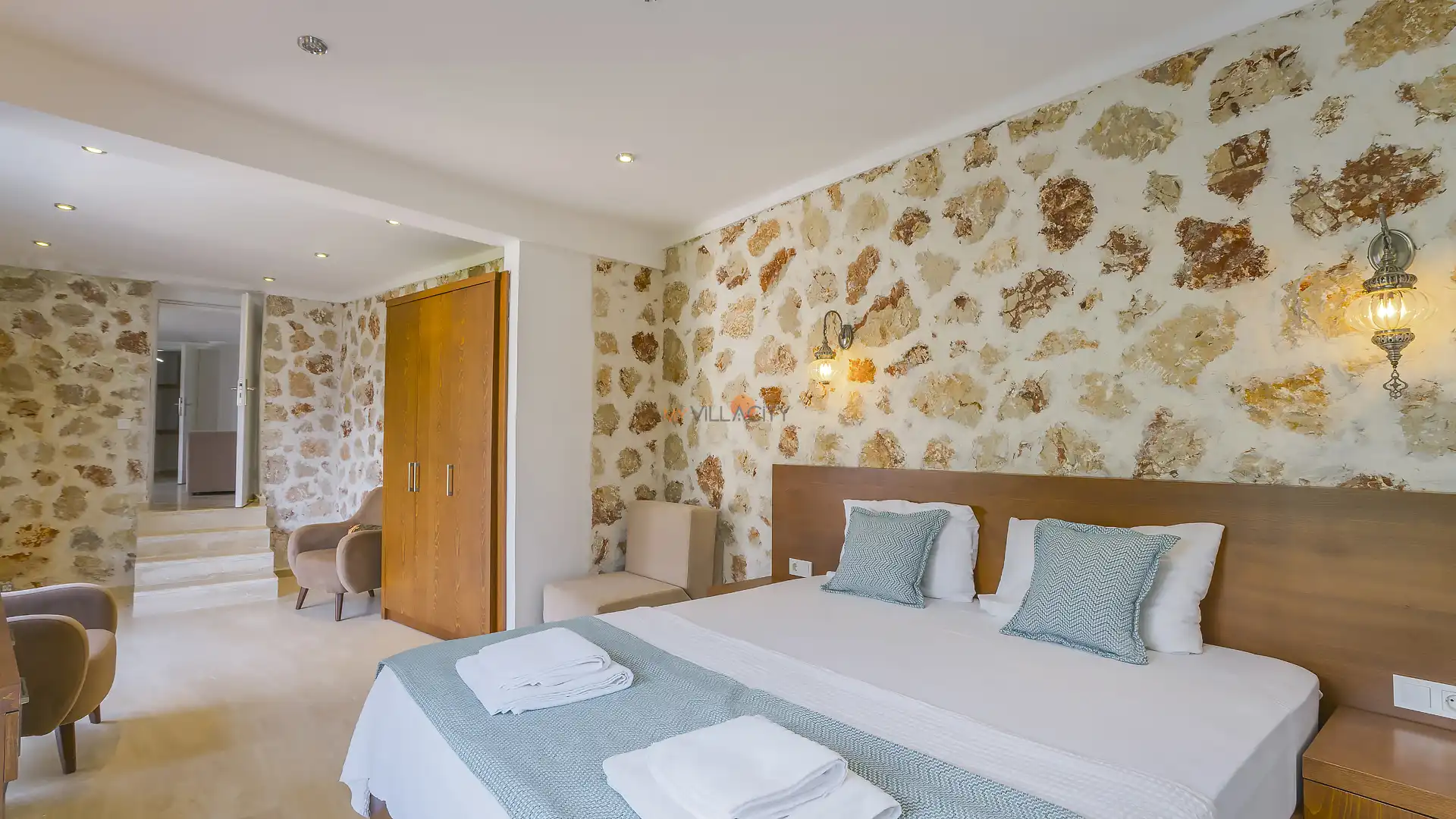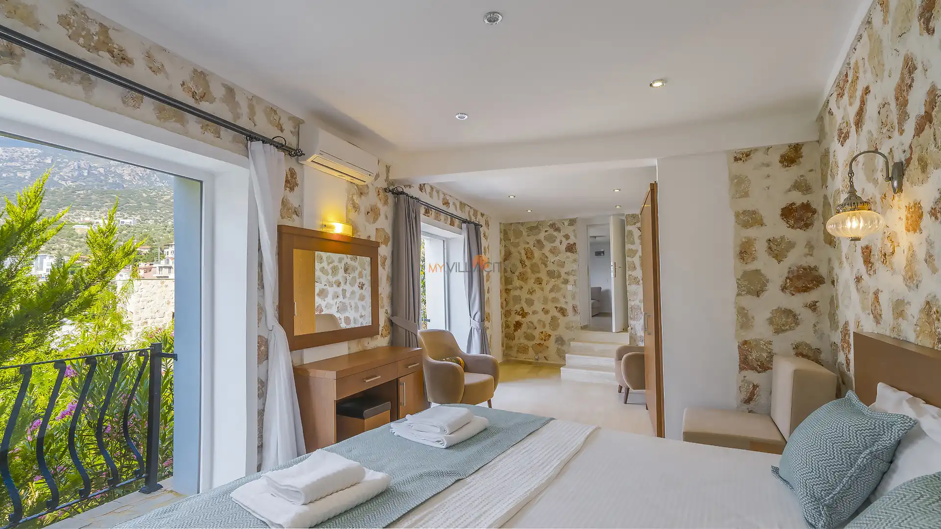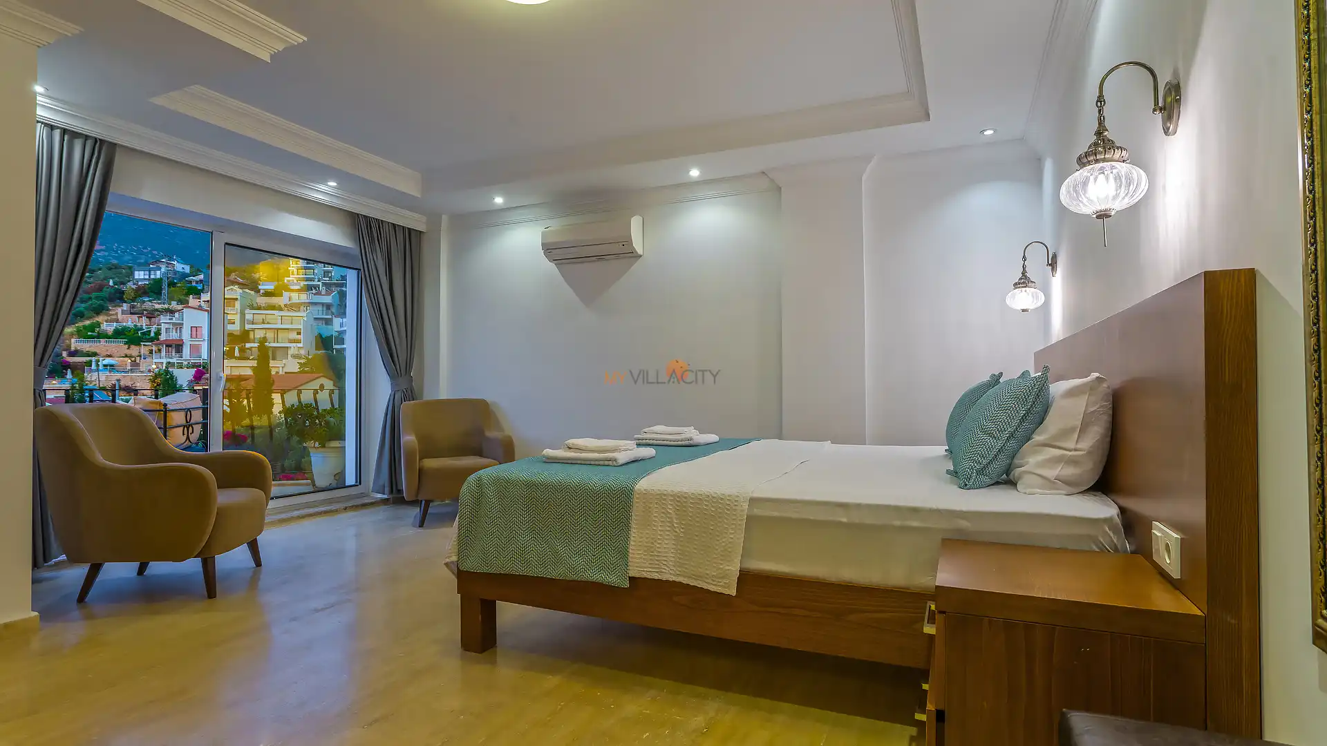 1 Çift Kişilik Yatak, 1 Banyo/WC, 2 Komodin, Elbise dolabı, Makyaj Masası, Klima,