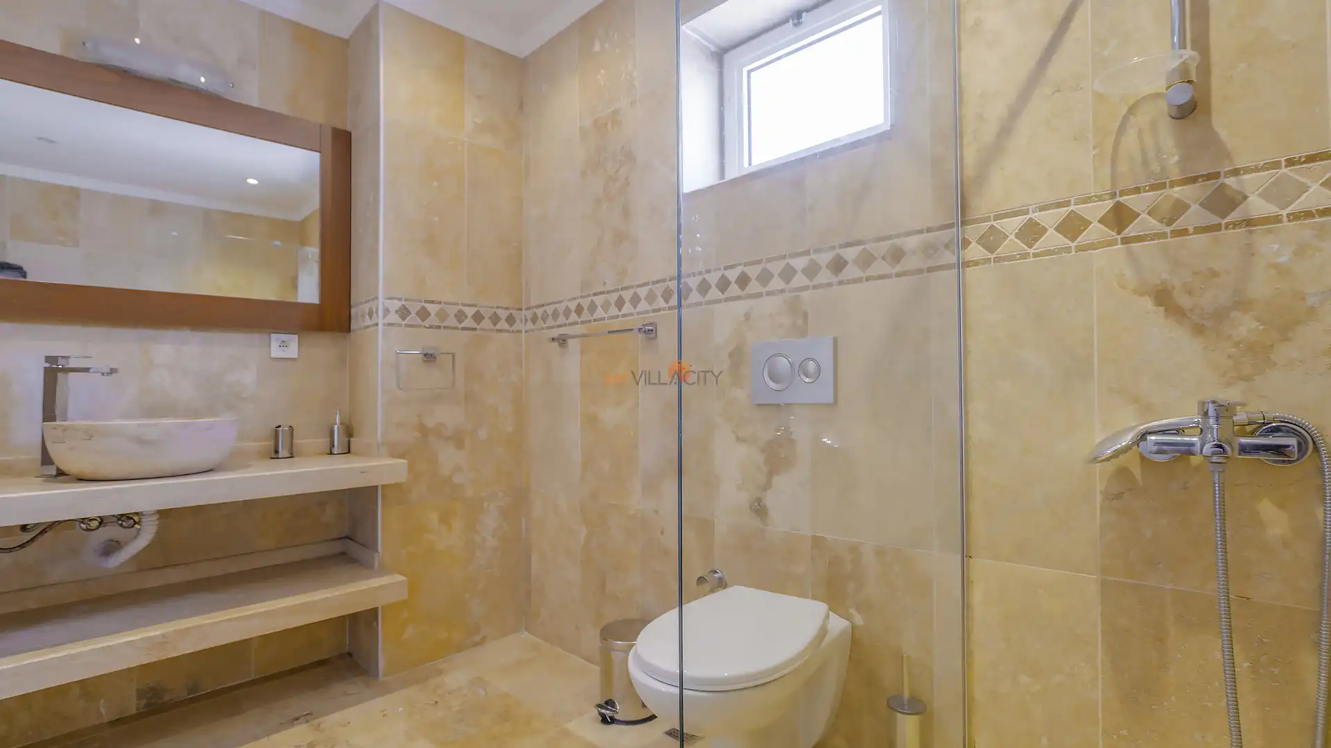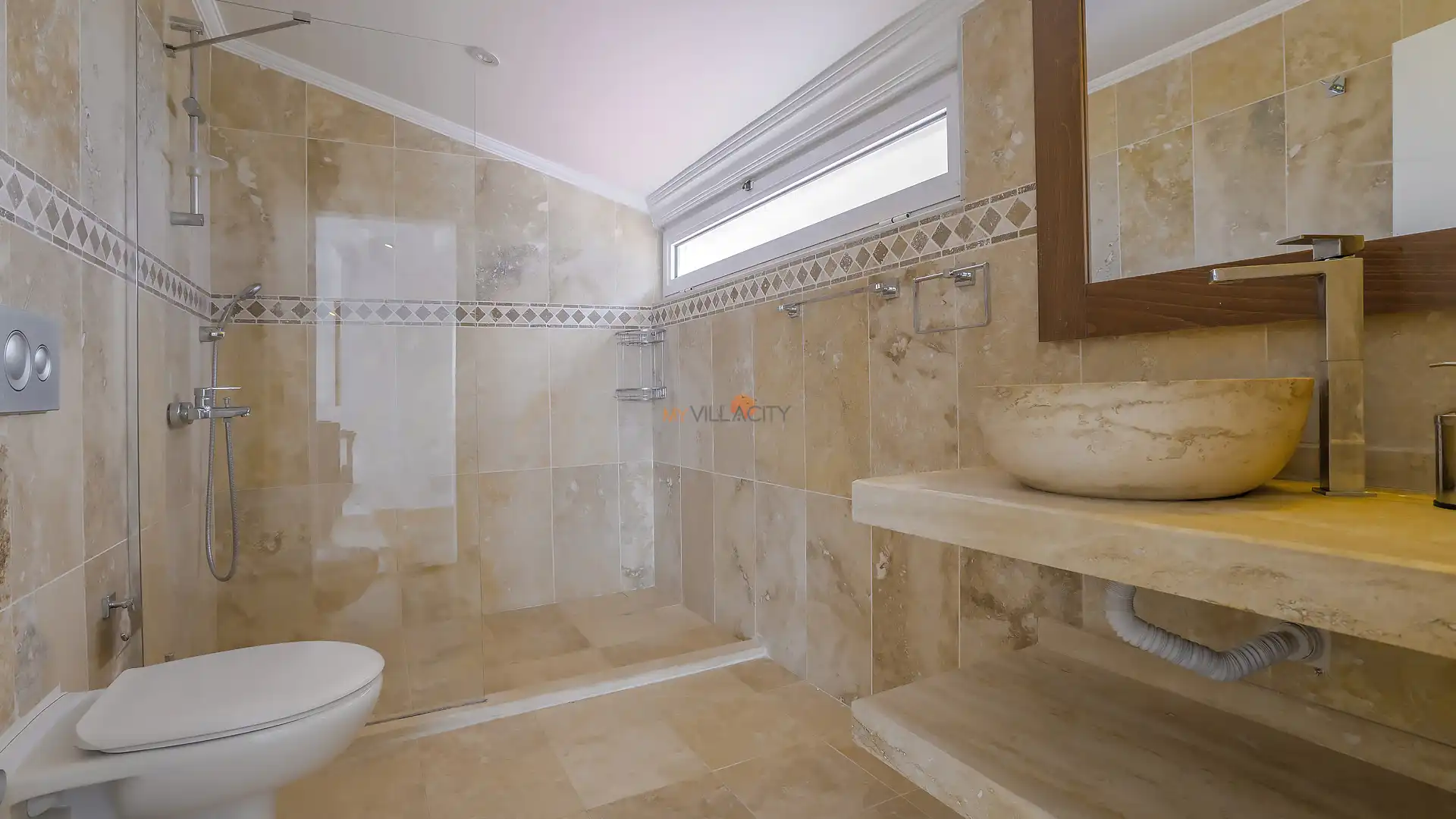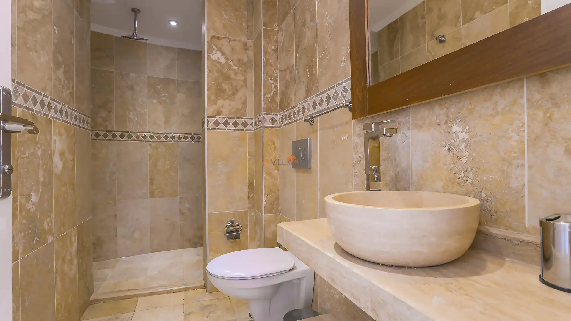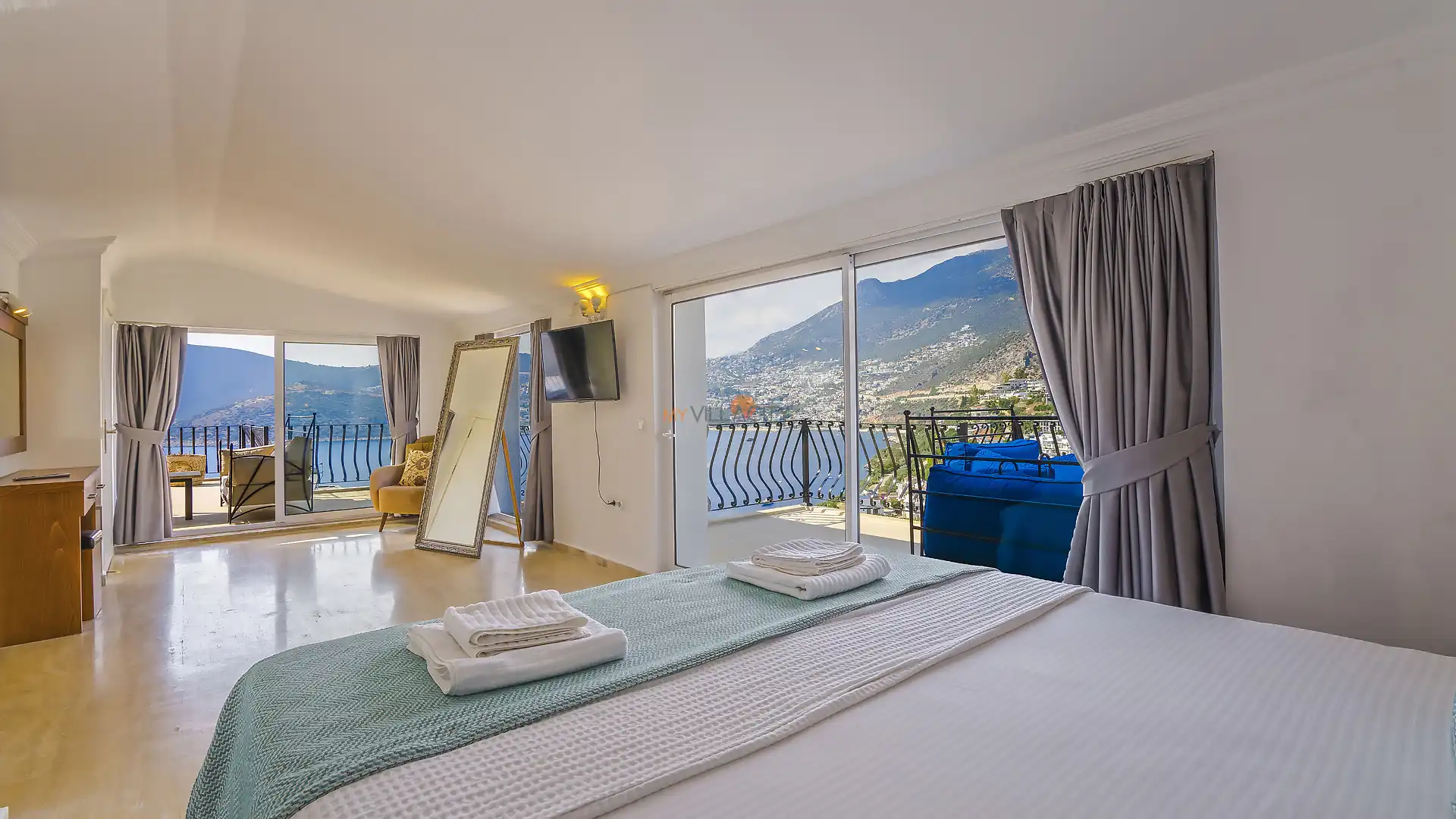 1 Çift Kişilik Yatak, 1 Banyo/WC, 2 Komodin, Elbise dolabı, Makyaj Masası, Klima,