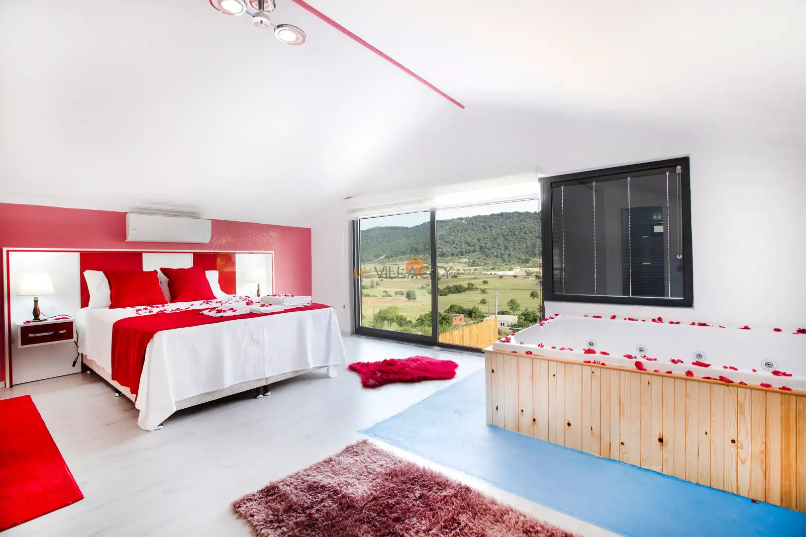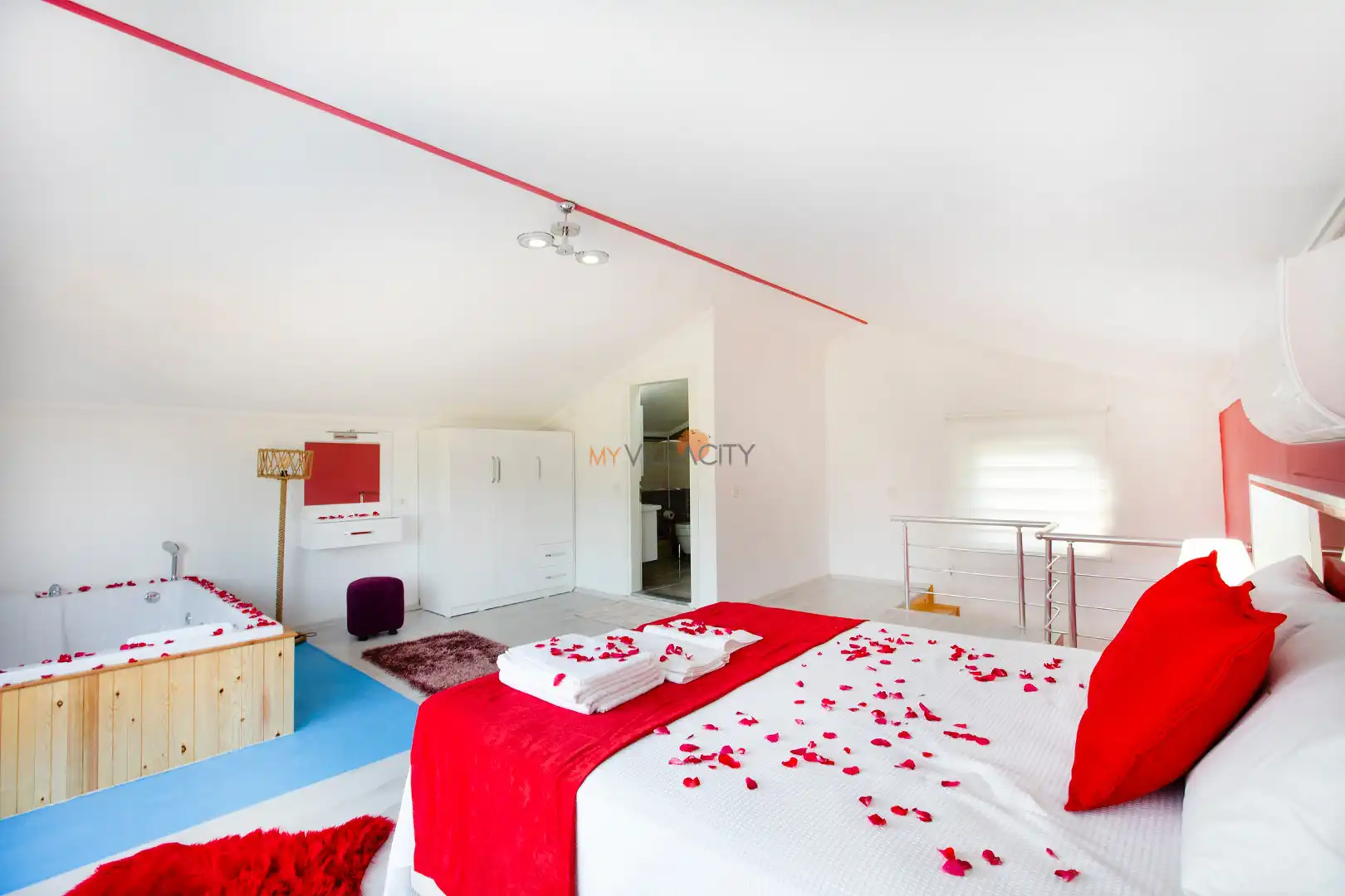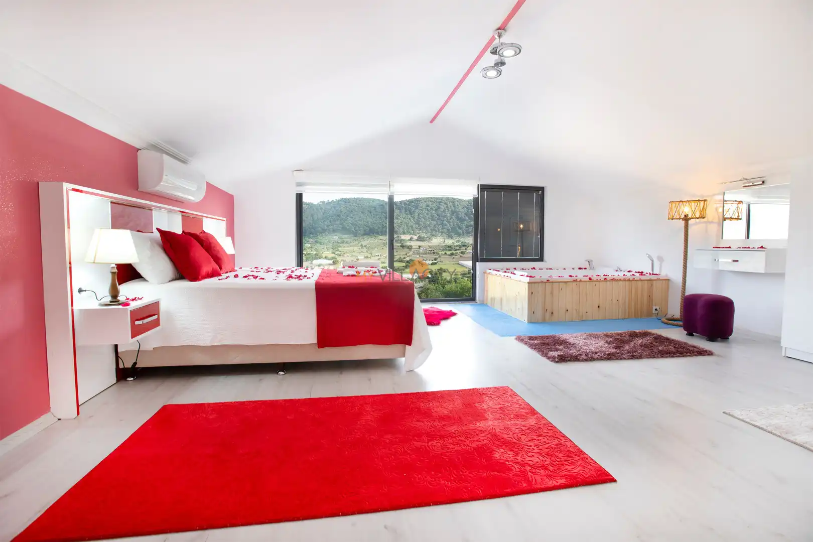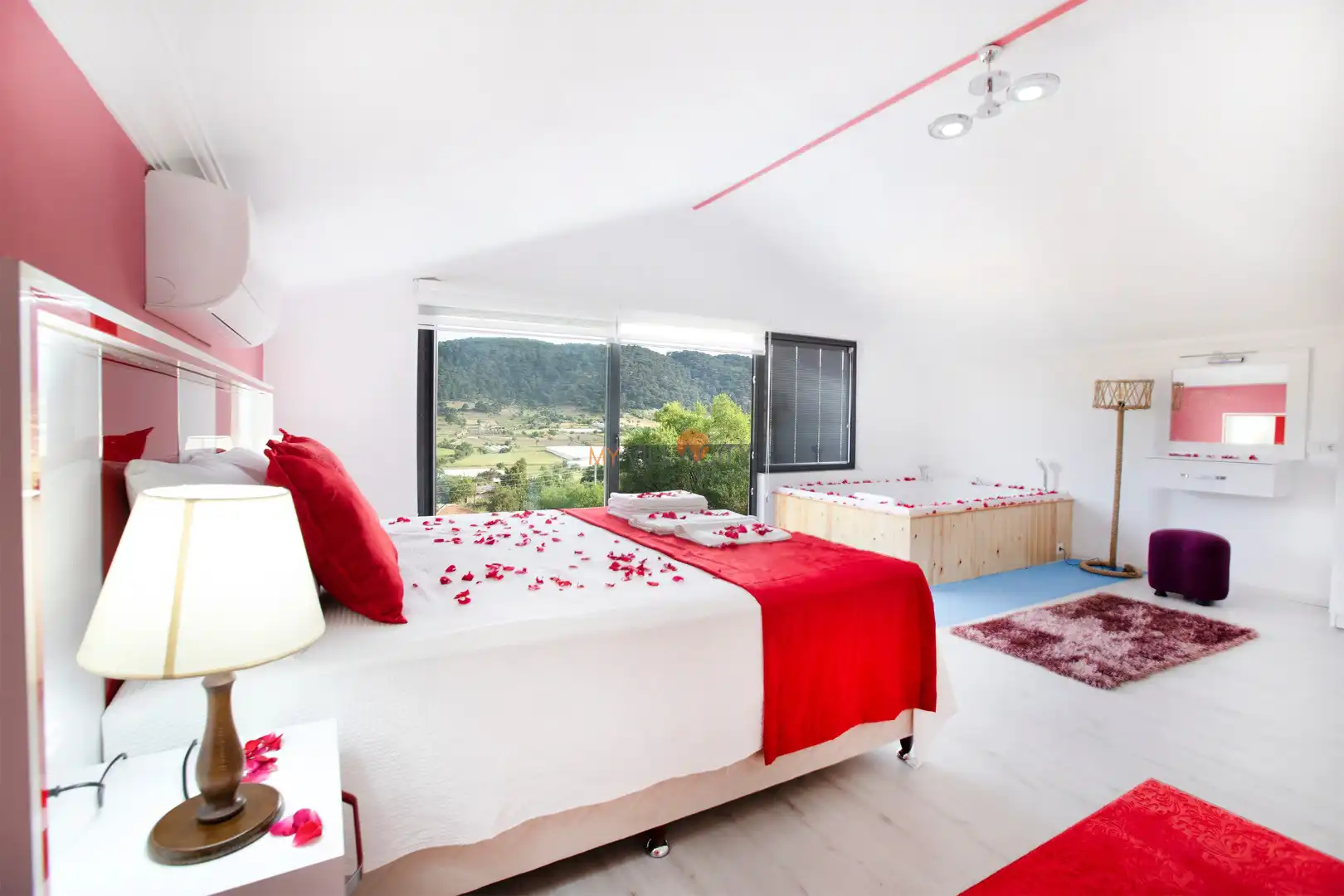 - 1 Çift Kişilik Yatak, 1 Jakuzi, 1 Banyo/WC, 2 Komodin, Elbise dolabı, Makyaj Masası, Klima,