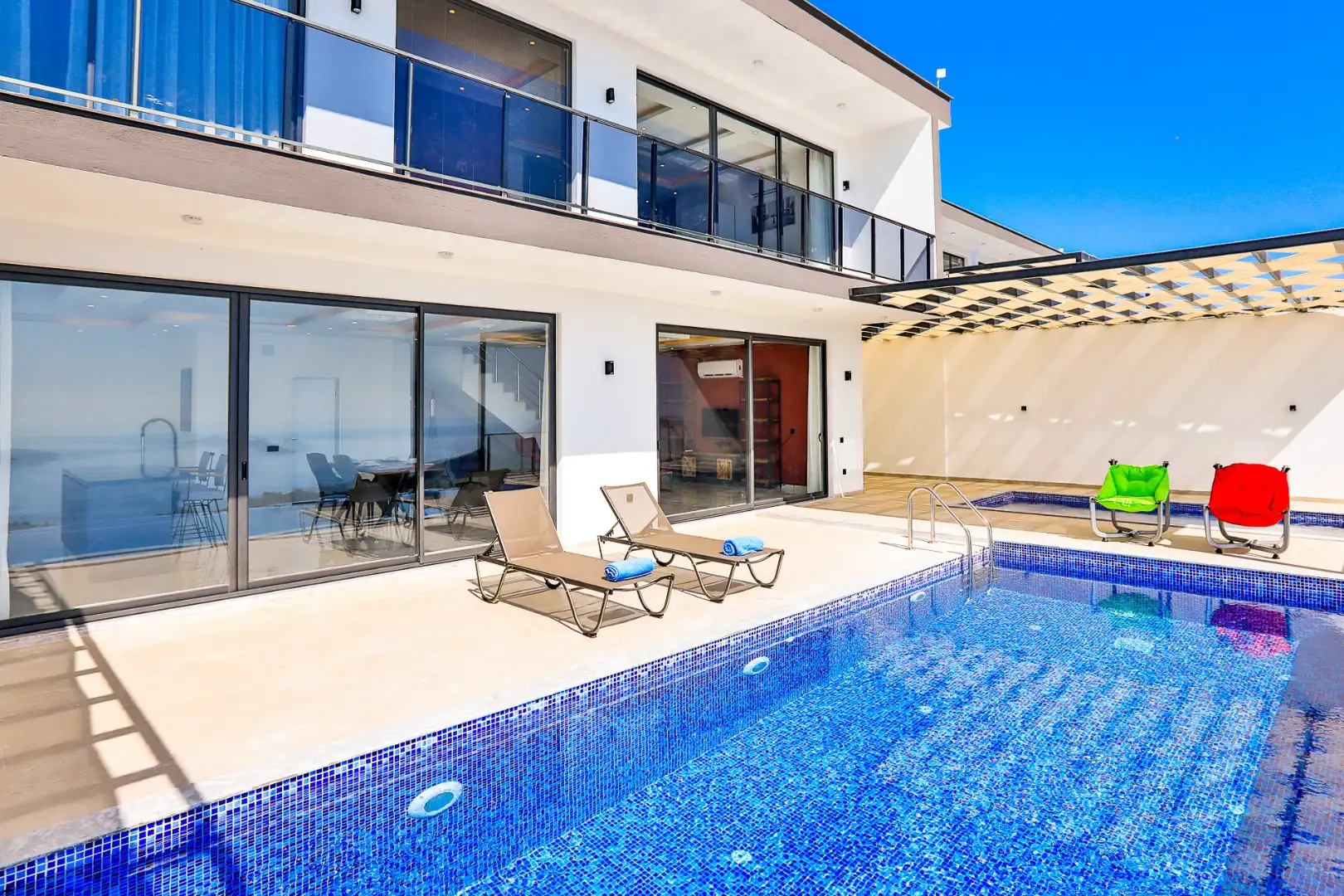 Villa Ranka; Kalkan'ın manzarayı en güzel gören konumlarından biri olan Kördere mevkisinde bulunmaktadır. Villamız tatil keyfinizi en üst düzeyde yaşayabilmeniz adına her detay düşünülmüş ve özenle dizayn edilmiştir. Havuz terası Kalkan'ın eşsiz deniz manzarasını görmektedir. Küçük misafirlerimiz için çocuk oyun alanı, kış tatilini mümkün kılan ısıtmalı havuz, rahat şezlonglar ve mangal alanı yine havuz terasında konumlanmıştır. Eğlenceli vakitlerinize eşlik edecek bir masa tenisi de villamızda bulunmaktadır. Villamızın tüm odaları tam donanıma sahip olup çift kişilik yatak odasında bir adet jakuzisi bulunmaktadır. Çekirdek ailelerin ve balayı çiftlerinin ilk tercihleri arasında yer alan villamızda siz değerli misafirlerimize keyifl tatiller dileriz.