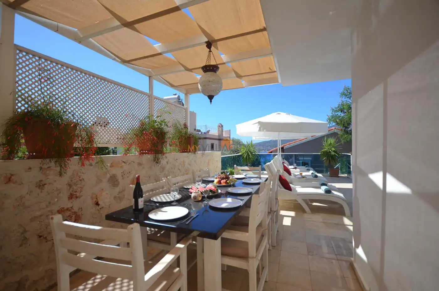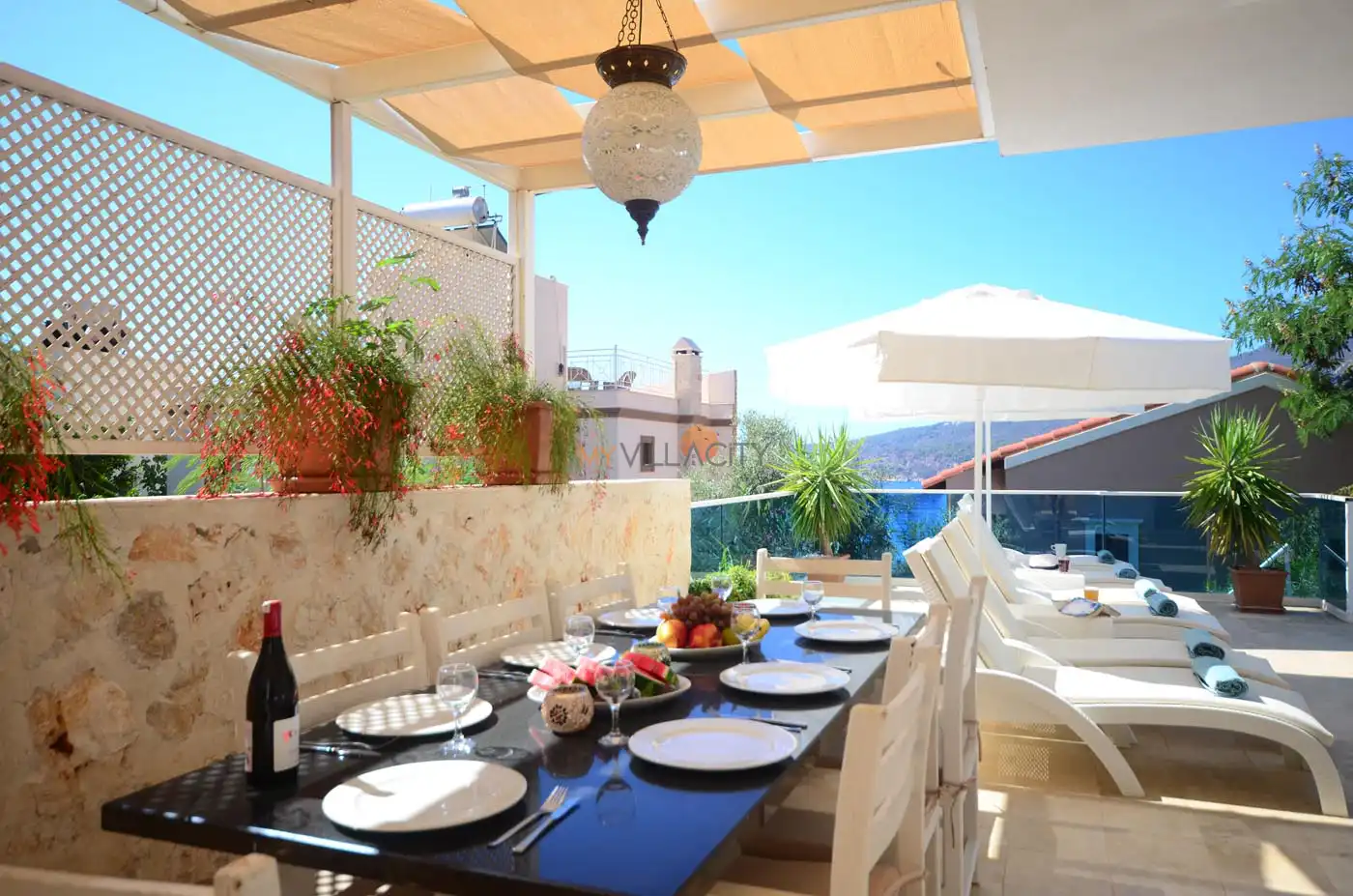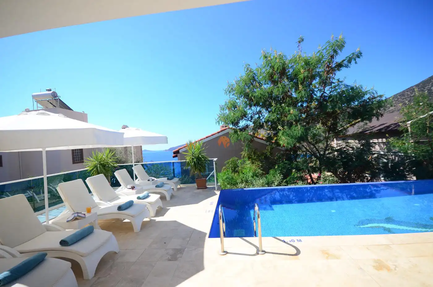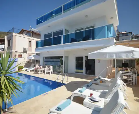 Villa Rüzgar ; Kalkan'ın merkezi konumuna yakın, lüks ve deniz manzaralı bir villadır. Havuz terasında mangal alanı, yemek masası ve rahat şezlonglar bulunmaktadır. Villa içerisi tatilinizi konforlu şekilde geçirebilmeniz adına tam donanımlı hale getirilmiştir. Manzaraya sahip odaları sayesinde villada vakit geçirmek sizin için keyifli bir hale gelmektedir. Çift kişilik yatak odasında, deniz manzarasına karşı keyifli dakikalar geçirebileceğiniz bir adet jakuzi bulunmaktadır. Geniş ailelerin ve kalabalık grupların tercihleri arasında yer alan villamızda siz değerli misafirlerimizin güzel bir tatil geçirmesini diliyoruz.