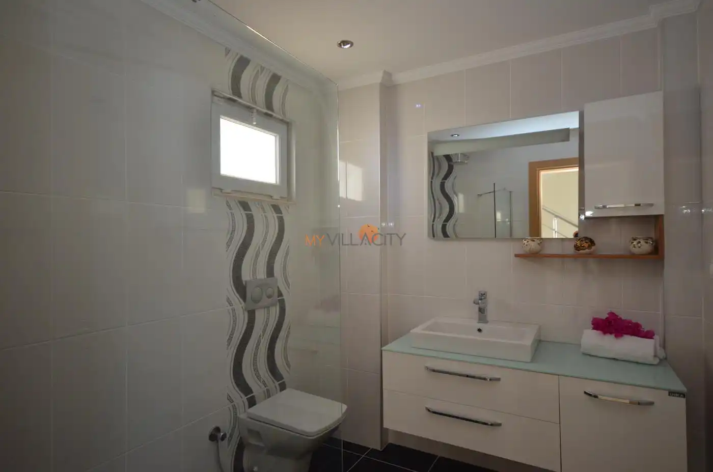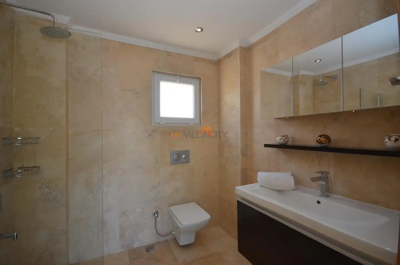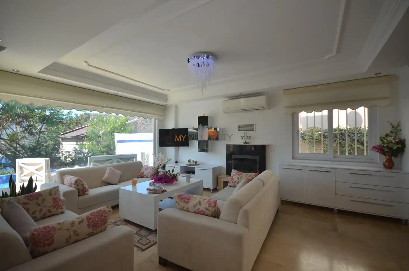 NOT: Villanın bir yatak odası ana bina dışında müştemilat şeklindedir.Konfor olarak ana binada olan yatak odalarından eksiği yoktur İçerisinde WC vardır ve 2 adet single yatak bulunmaktadır.