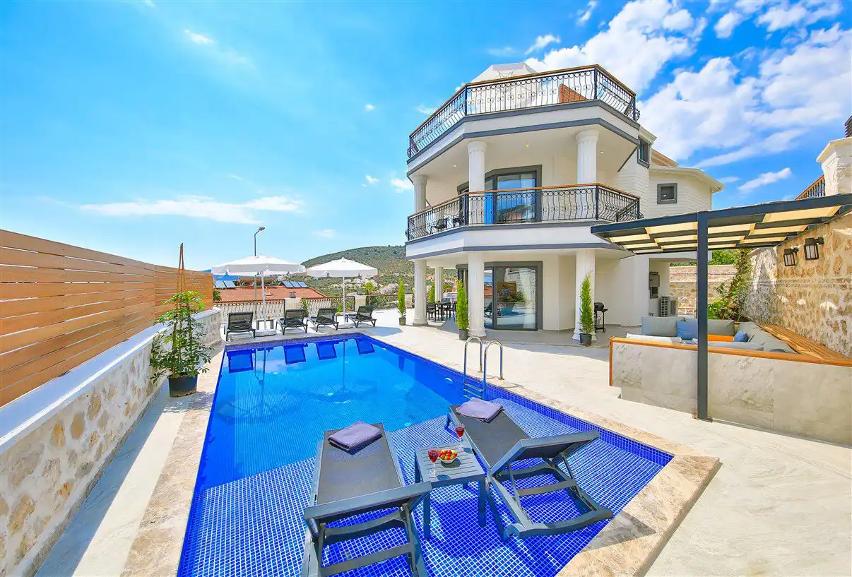 Villa Samira 2; Kalkan'ın merkezi konumunda bulunan, yüksek kapasiteli, deniz manzaralı, lüks tatil villasıdır. Geniş bahçesinde size özel yüzme havuzu, rahat şezlonglar, mangal alanı ve oturma köşesi bulunmaktadır. Modern yapısı ve şık mimarisi ile herkesi büyüleyen villamızın iç dizaynında kullanılan mobilyalar oldukça kaliteli ve rahattır. Tüm odaları tam konfora sahiptir ve her şey ihtiyaçlarınıza cevap verecek şekilde konumlanmıştır. Villamızın geniş terasında Kalkan'ın eşsiz deniz manzarasına ve şehir manzarasına sahip geniş bir jakuzi bulunmaktadır. Güzel anılar biriktirebileceğiniz bir tatil istiyorsanız sizleri Villa Samira 2' ye bekliyoruz.