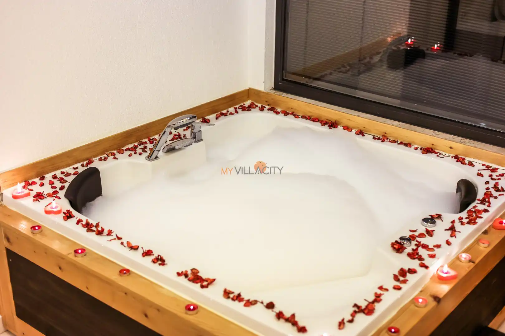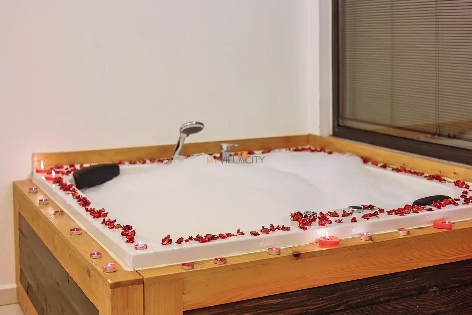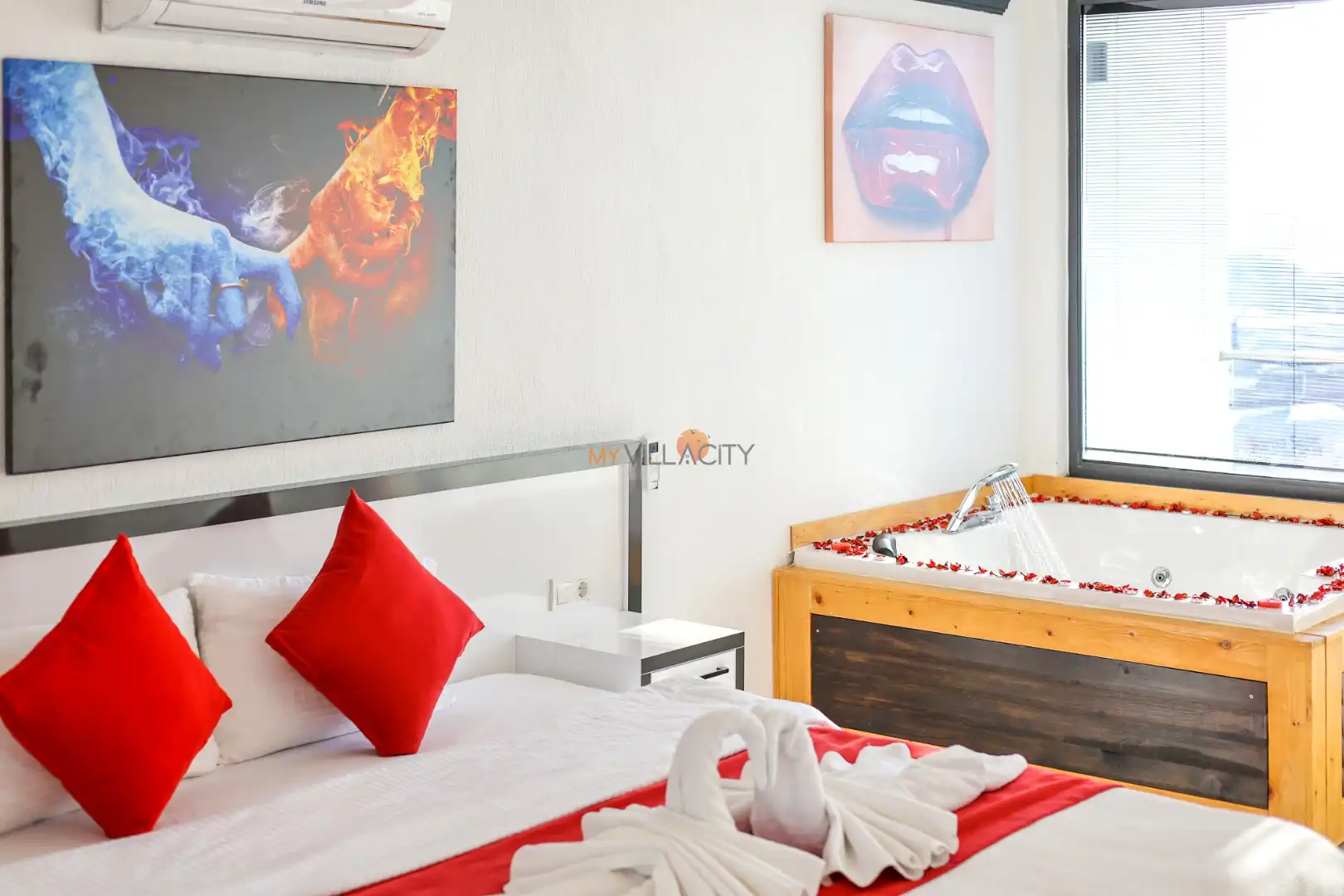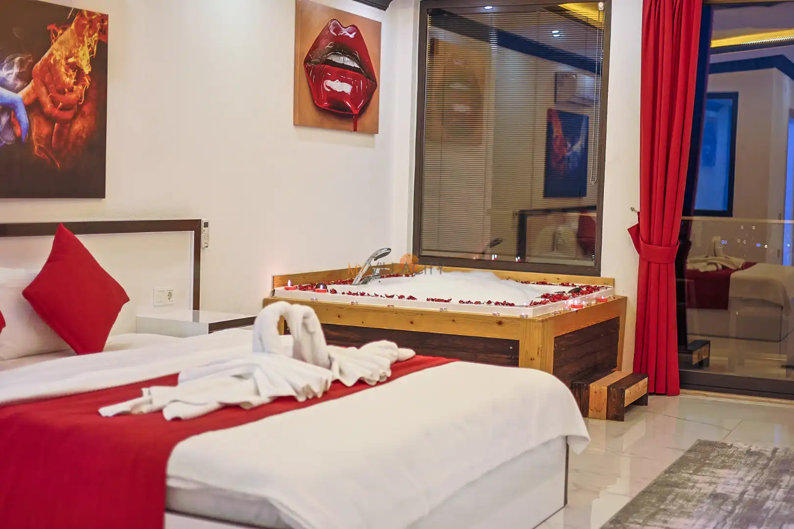 - 1 Çift Kişilik Yatak, 1 Jakuzi, 1 Banyo/WC, 2 Komodin, Elbise dolabı, Makyaj Masası, Klima,