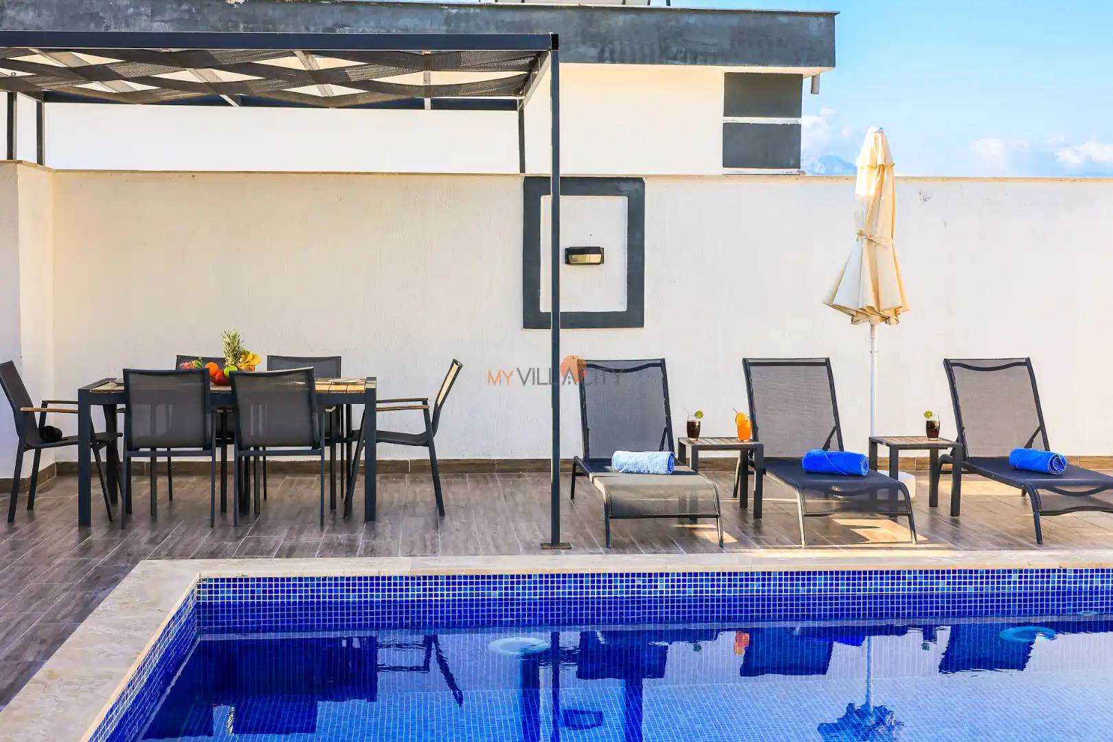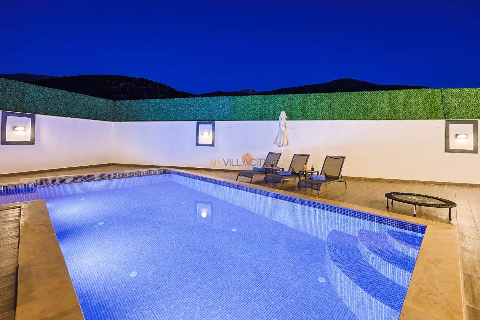 Villa Sidelya Duo, Kalkan'ın Çavdır mevkisinde konumlanmıştır ve 4 kişi konaklama kapasitesine sahiptir. Bu lüks villa, modern yapısı ve dikkat çeken şık dizaynıyla unutulmaz bir tatil deneyimi sunmaktadır. Villamız, özellikle muhafazakar aileler ve balayı çiftleri için ideal bir seçimdir.