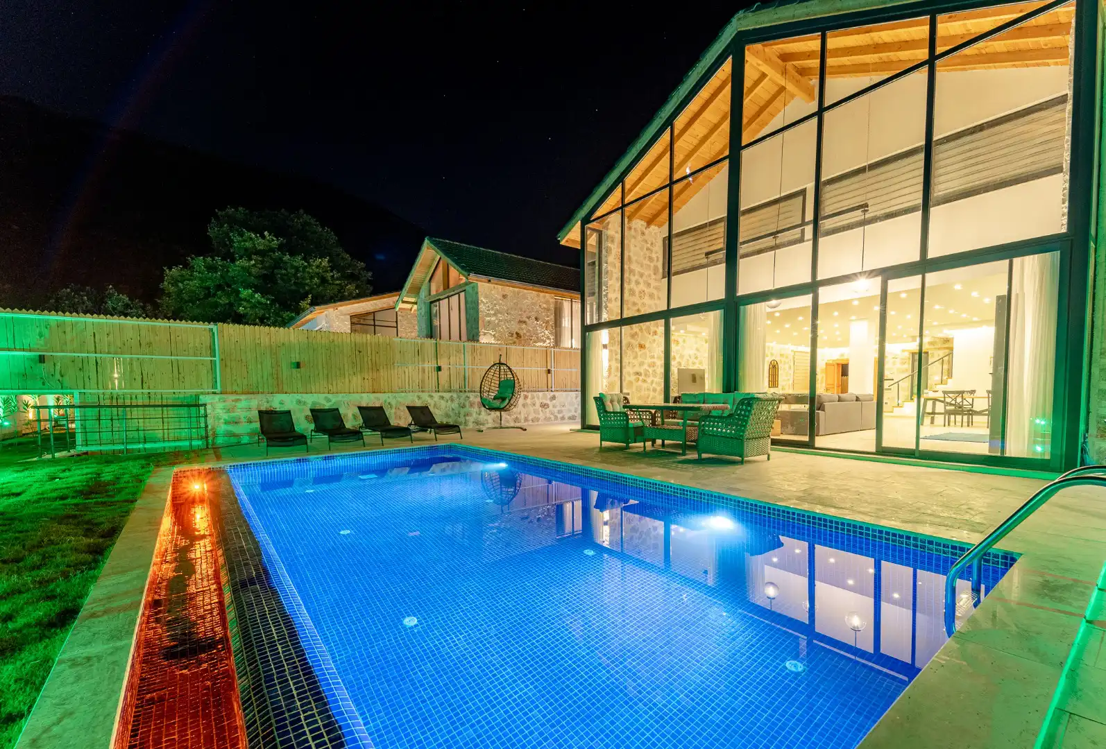Villa Sirius Bezirgan, Kaş Kalkan Bölgesinde yer alan muhteşem bir tatil villasıdır. Bu villa, 2 yatak odası ve 4 kişilik kapasiteye sahiptir. Özellikle muhafazakar aileler ve balayı için ideal bir seçenektir. Havuz alanı tamamen korunaklıdır ve misafirlerin mahremiyetine önem verilmektedir. Yatak odasında özel banyo ve tuvalet bulunmaktadır.Ayrıca yatak odasında jakuzi bulunmaktadır. Villamızın lüks ve konforlu tasarımı göz kamaştırmaktadır. Havuz terasımız oldukça geniştir ve bu alanda keyifli vakit geçirebilirsiniz.Modern mobilyaları,şık dekarasyonu,modern ile ön plana çıkmaktadır. İhtiyaç duyabileceğiniz tüm temel araç ve gereçler villada mevcuttur. Doğayla iç içe, sakin ve huzurlu bir tatil isteyen misafirlerimiz için mükemmel bir seçimdir.