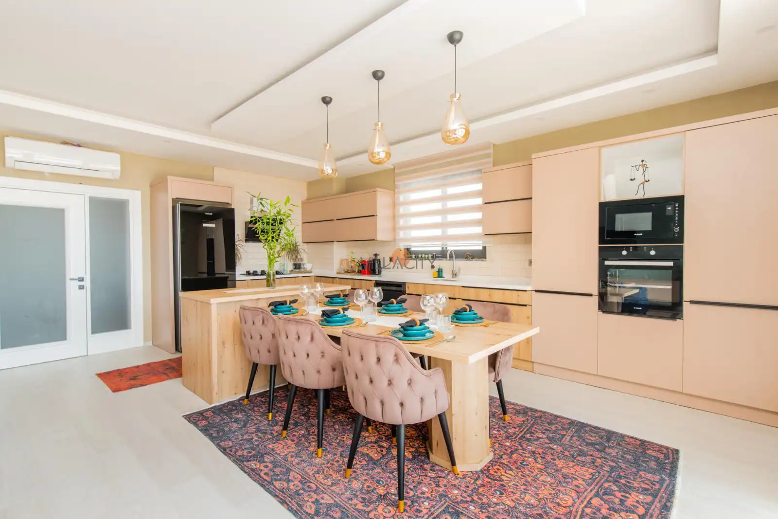 - Elbise dolabı, Makyaj Masası, Klima, 1 Çift Kişilik Yatak, 1 Banyo/WC, 2 Komodin, Elbise dolabı, Makyaj Masası, Klima,