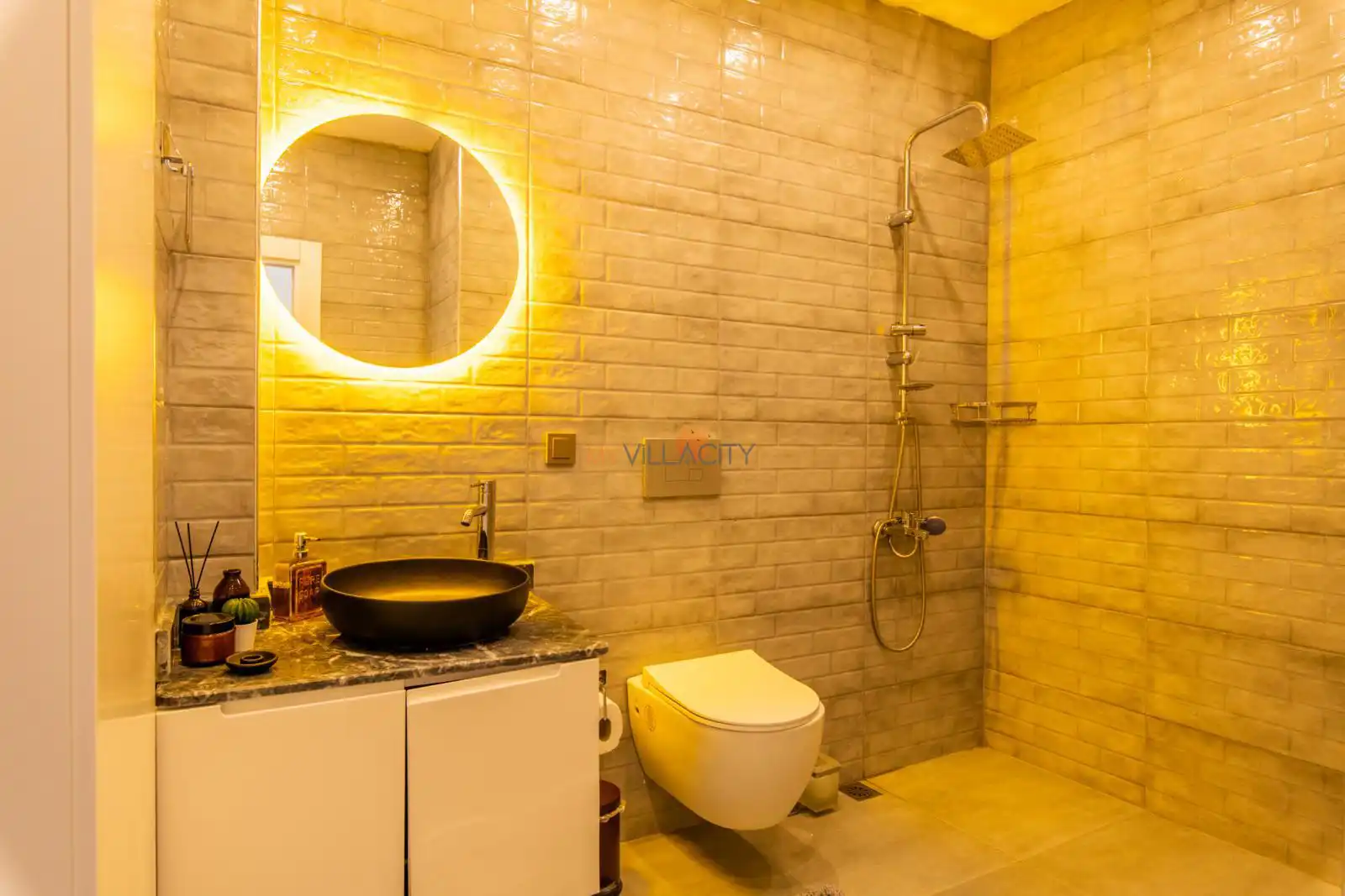 - 1 Çift Kişilik Yatak, 1 Banyo/WC, 2 Komodin, Elbise dolabı, Makyaj Masası, Klima,