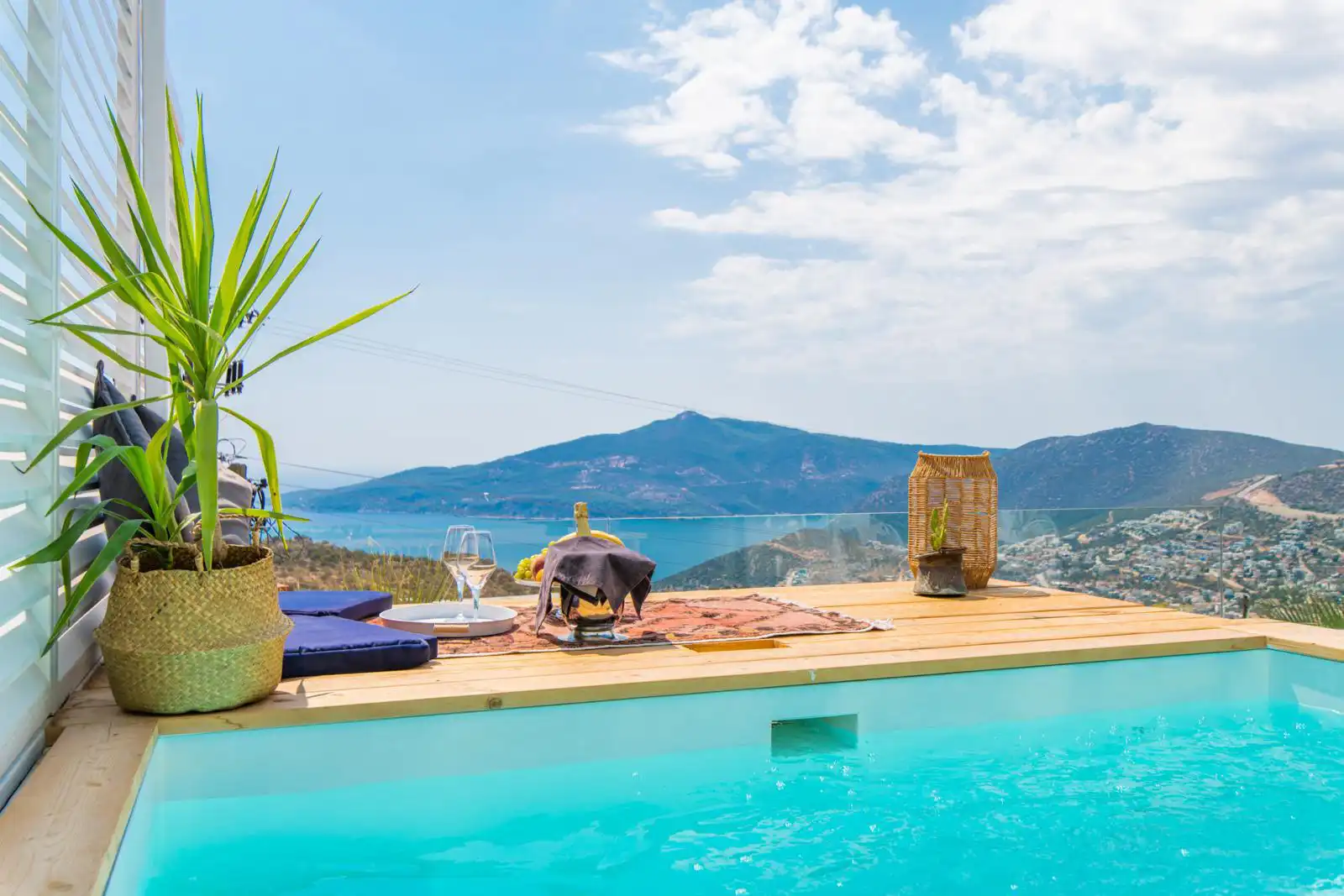 Villa Suit Palozza ; Kalkan Kördere mevkisinde yer alan deniz manzaralı lüks bir villadır. Geniş havuz terasında; salıncak, mangal alanı ve deniz manzarasına karşı keyifli yemekler yiyebileceğiniz bir yemek masası bulunmaktadır. Villamızın tam donanımlı odaları deniz manzarasına sahiptir. Size konforlu bir tatil imkanı sunan villamızın çift kişilik yatak odasında bir adet jakuzi bulunmaktadır. Çekirdek ailelerin ve balayı çiftlerinin ilk tercihleri arasında yer alan villamızda siz değerli misafirlerimizin güzel bir tatil geçirmenizi diliyoruz.