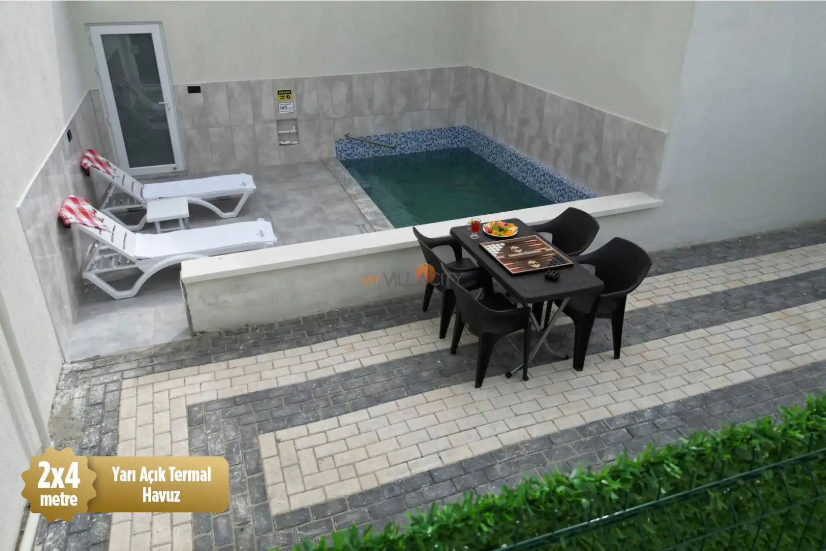 Villalarda jeotermal termal su bulunmaktadır.