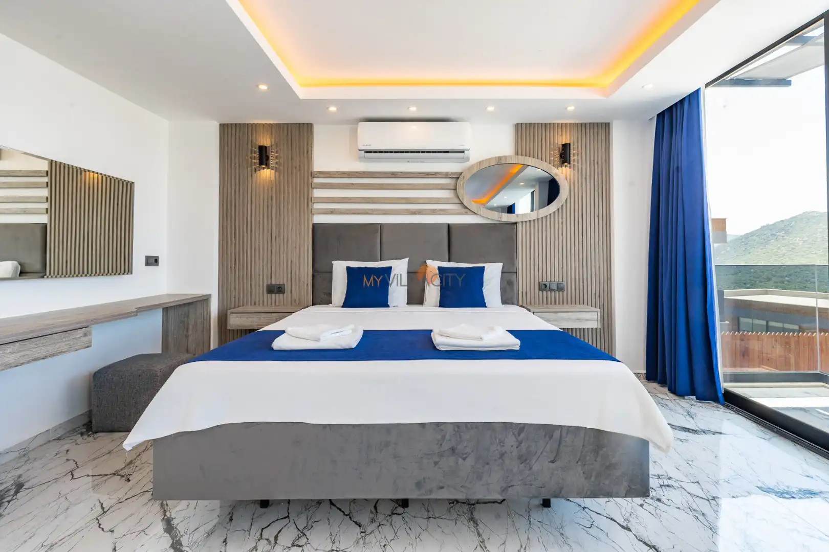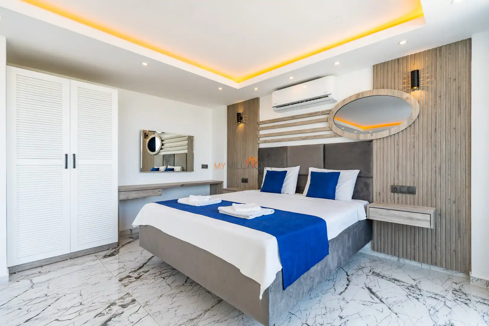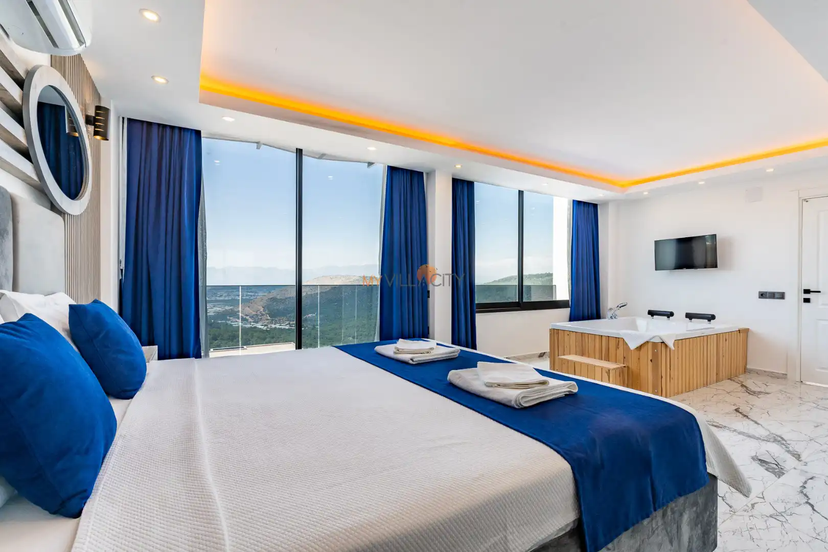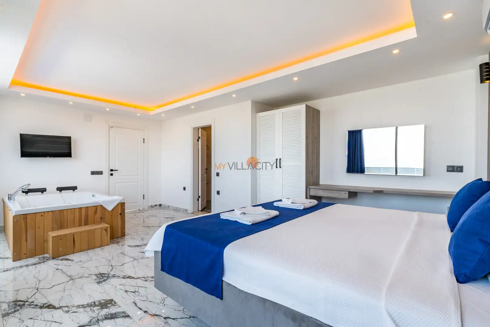 - 1 Çift Kişilik Yatak, 1 Jakuzi, 1 Banyo/WC, 2 Komodin, Elbise dolabı, Makyaj Masası, Klima,