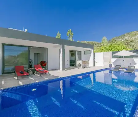 Doğa içerisinde yer alan konumu sayesinde sakinlik ve mahremiyet ön planda tutulurken, korunaklı yapıya sahip özel yüzme havuzu dışarıdan görünmeyecek şekilde tasarlanmıştır. Bu özelliği ile muhafazakar çiftler için de oldukça uygun bir konaklama imkânı sunar. Geniş havuz terası, şezlong alanları ve dinlenme köşeleri sayesinde gün boyunca keyifli vakit geçirebilir, doğanın eşsiz manzarası eşliğinde unutulmaz anlar yaşayabilirsiniz.