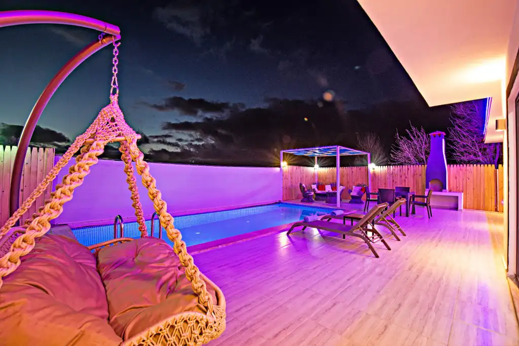 Villa Yücel Üzümlü, Kalkan'ın huzurlu bölgesi Üzümlü'de yer alan, 2 kişilik, jakuzi ve özel havuzlu muhafazakar bir balayı villasıdır. Şık dekorasyonu ve doğayla iç içe konumuyla sakin bir tatil arayan çiftlere mükemmel bir seçenektir.