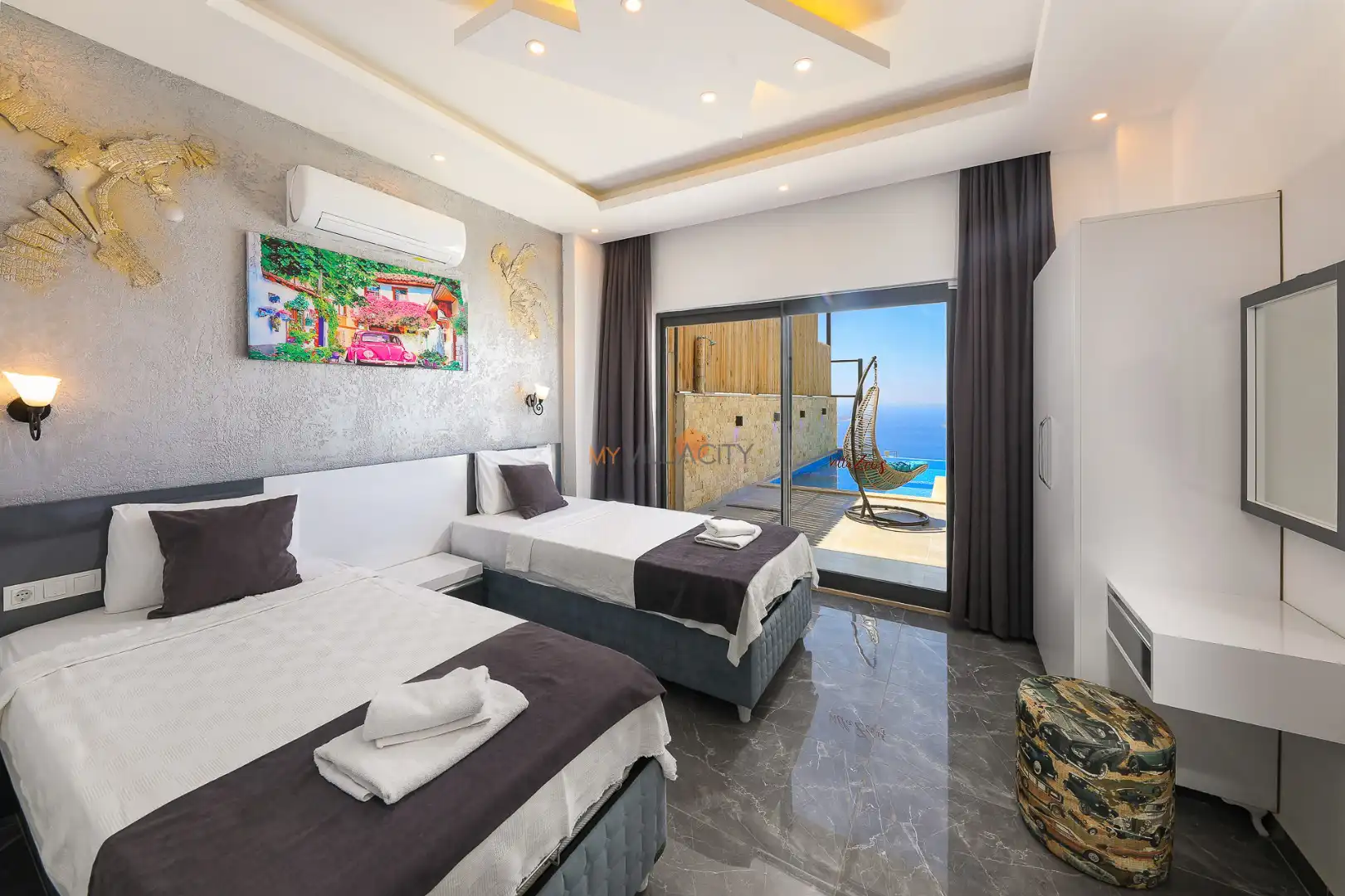2 Tek Kişilik Yatak, 1 Banyo/WC, TV, 2 Komodin, Elbise dolabı, Makyaj Masası, Klima,