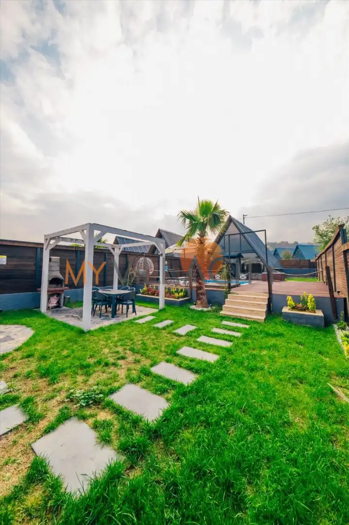 Dış alanında misafirleri özel ısıtmalı havuz (3x5m / 1.50m), jakuzi, salıncak, taş barbekü ve bahçe mobilyaları karşılar. Kış döneminde aktif olan sıcak havuz sistemi, dört mevsim konforlu bir tatil fırsatı sunar.