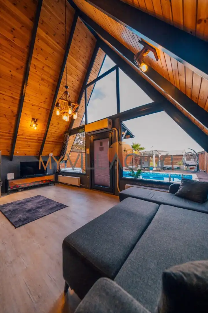 Her bungalov müstakil olup tamamen size özel bir yaşam alanı sunar. İçerisinde 2 yatak odası, üst katta çift kişilik yatak, alt katta ise birleştirilebilir iki kişilik yatak, ayrıca salonda açılabilir L koltuk, Smart TV, klima ve elektrikli şömine bulunmaktadır. Şömine için gerekli odun hizmeti +300₺ ücretle sunulmaktadır.