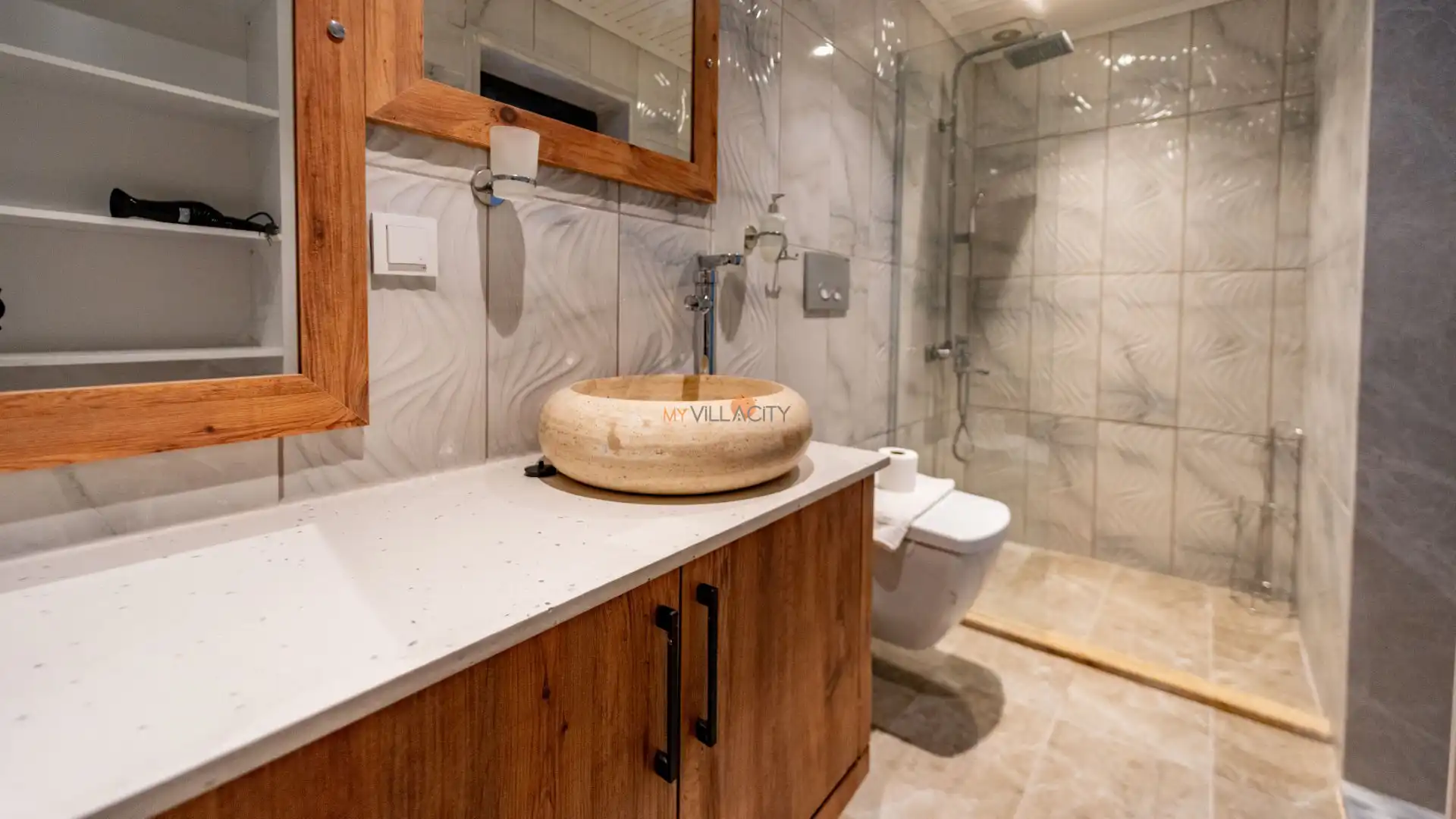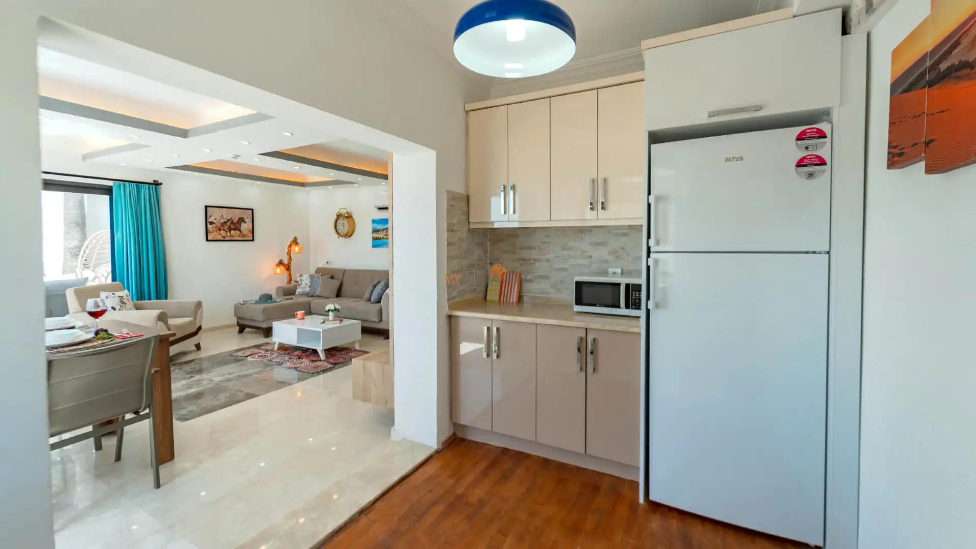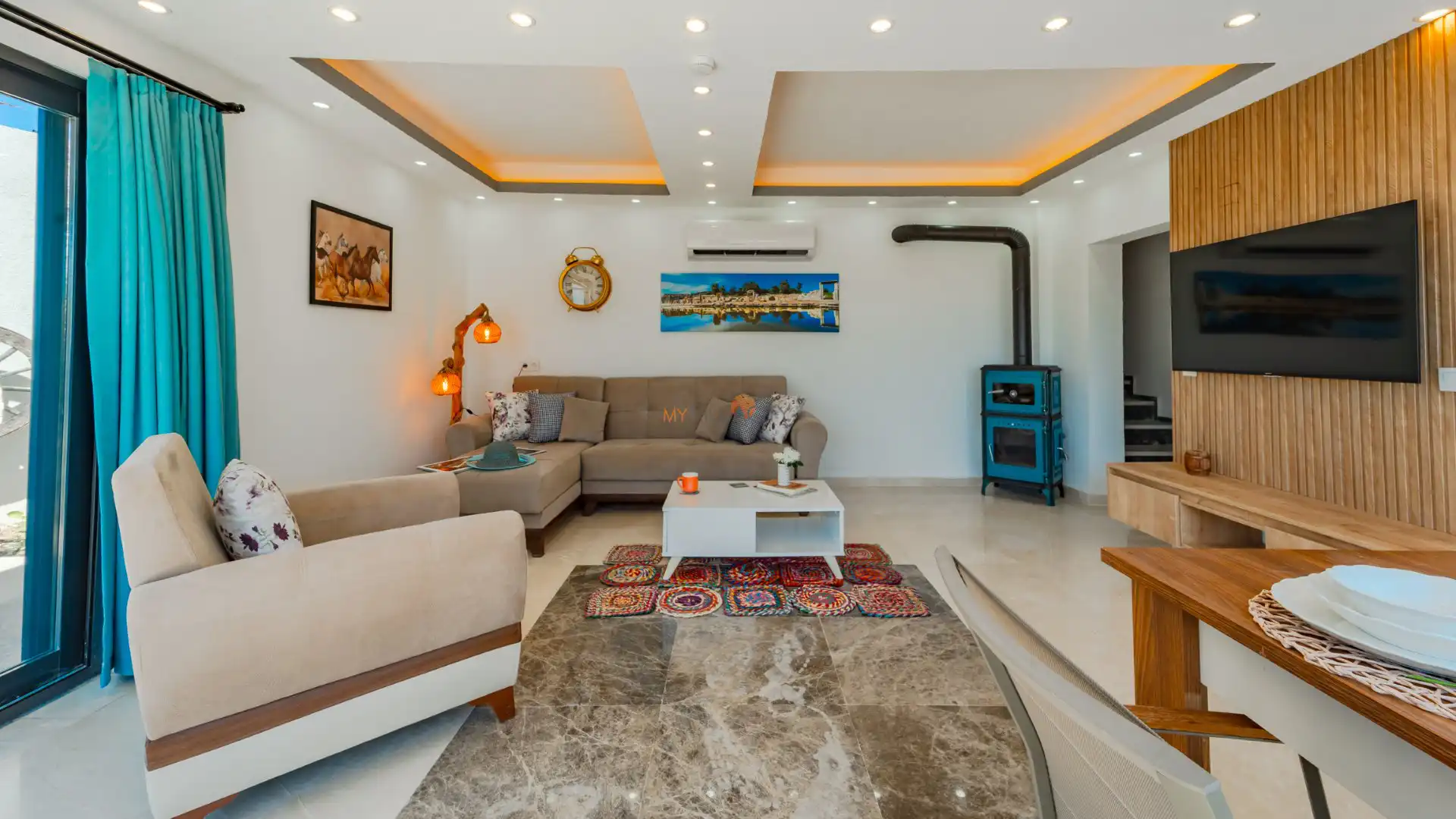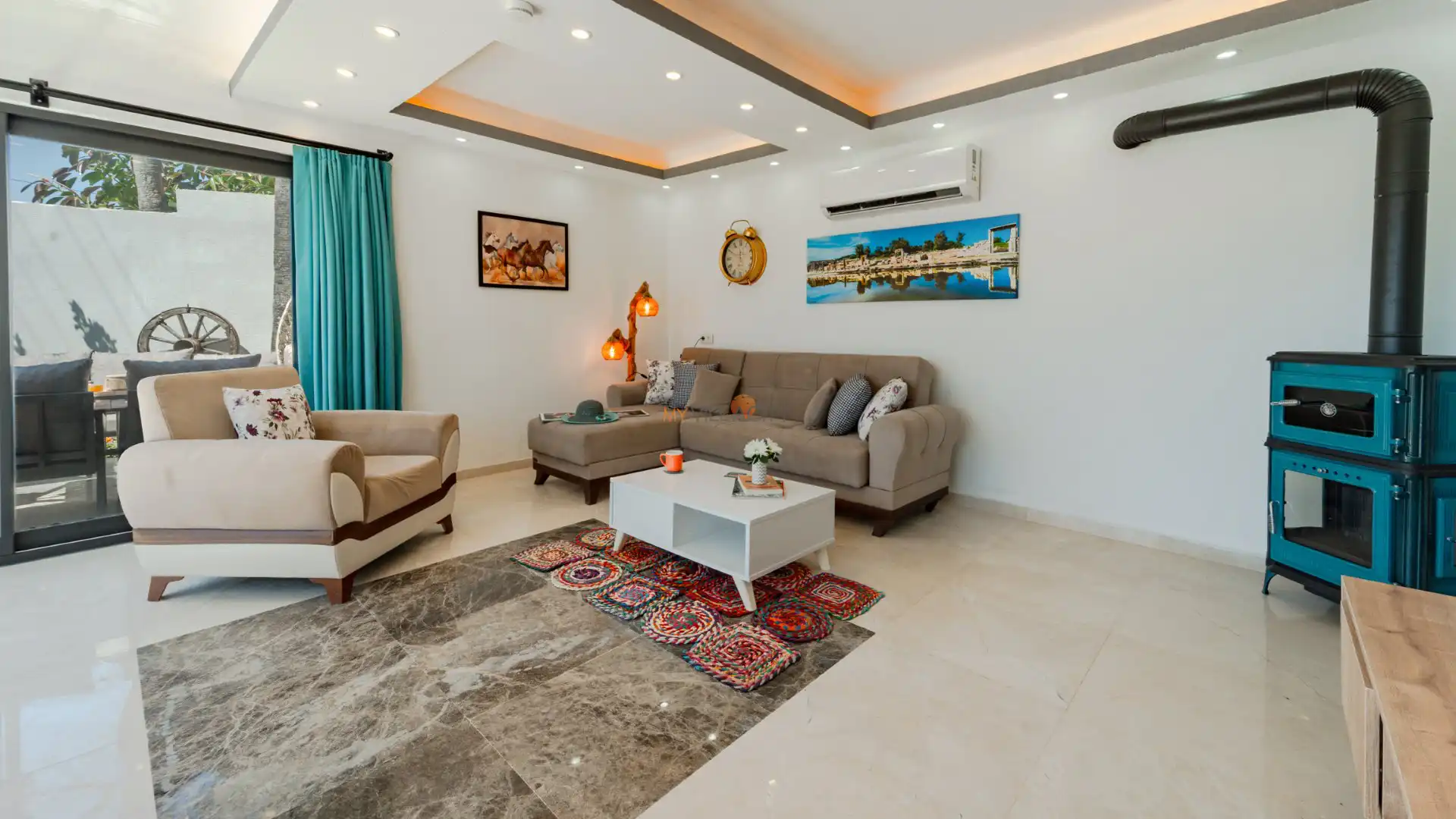 - 1 Çift Kişilik Yatak, 1 Banyo/WC, 2 Komodin, Elbise dolabı, Makyaj Masası, Klima,