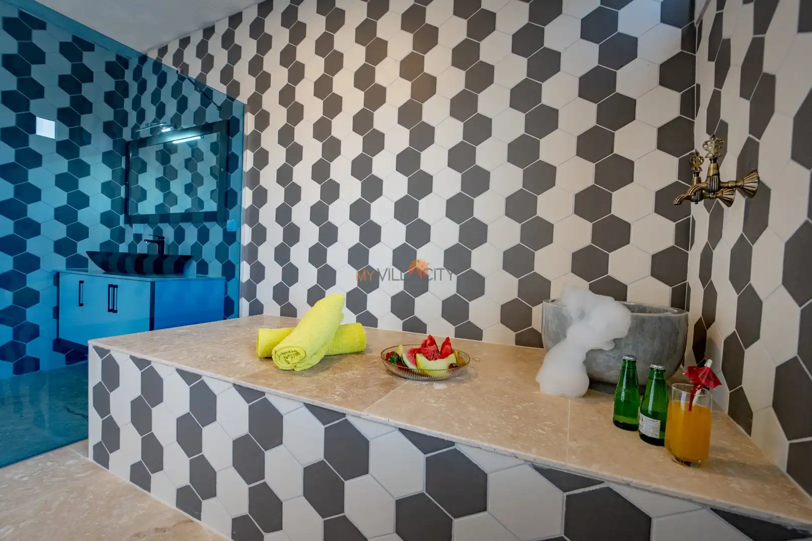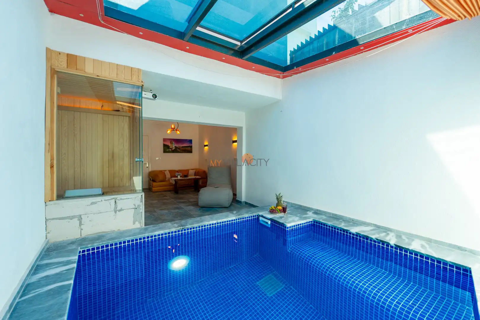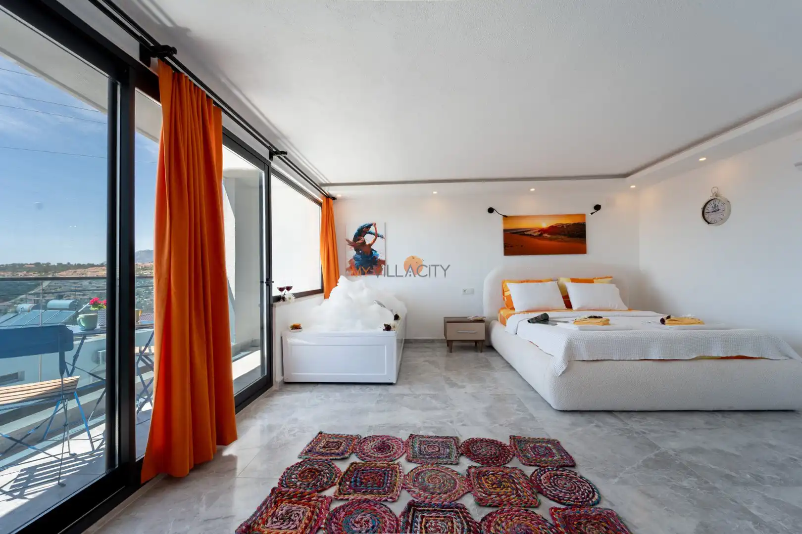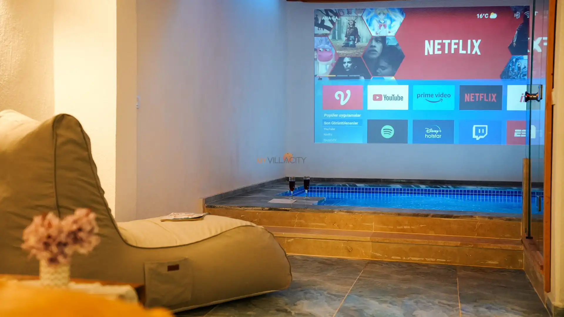- 1 Çift Kişilik Yatak, 1 Jakuzi, Sauna, 1 Banyo/WC, 2 Komodin, Elbise dolabı, Makyaj Masası, Klima,