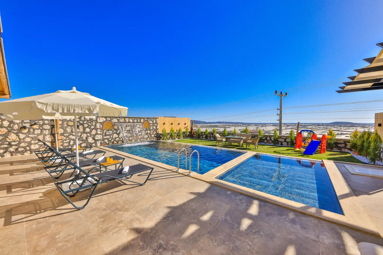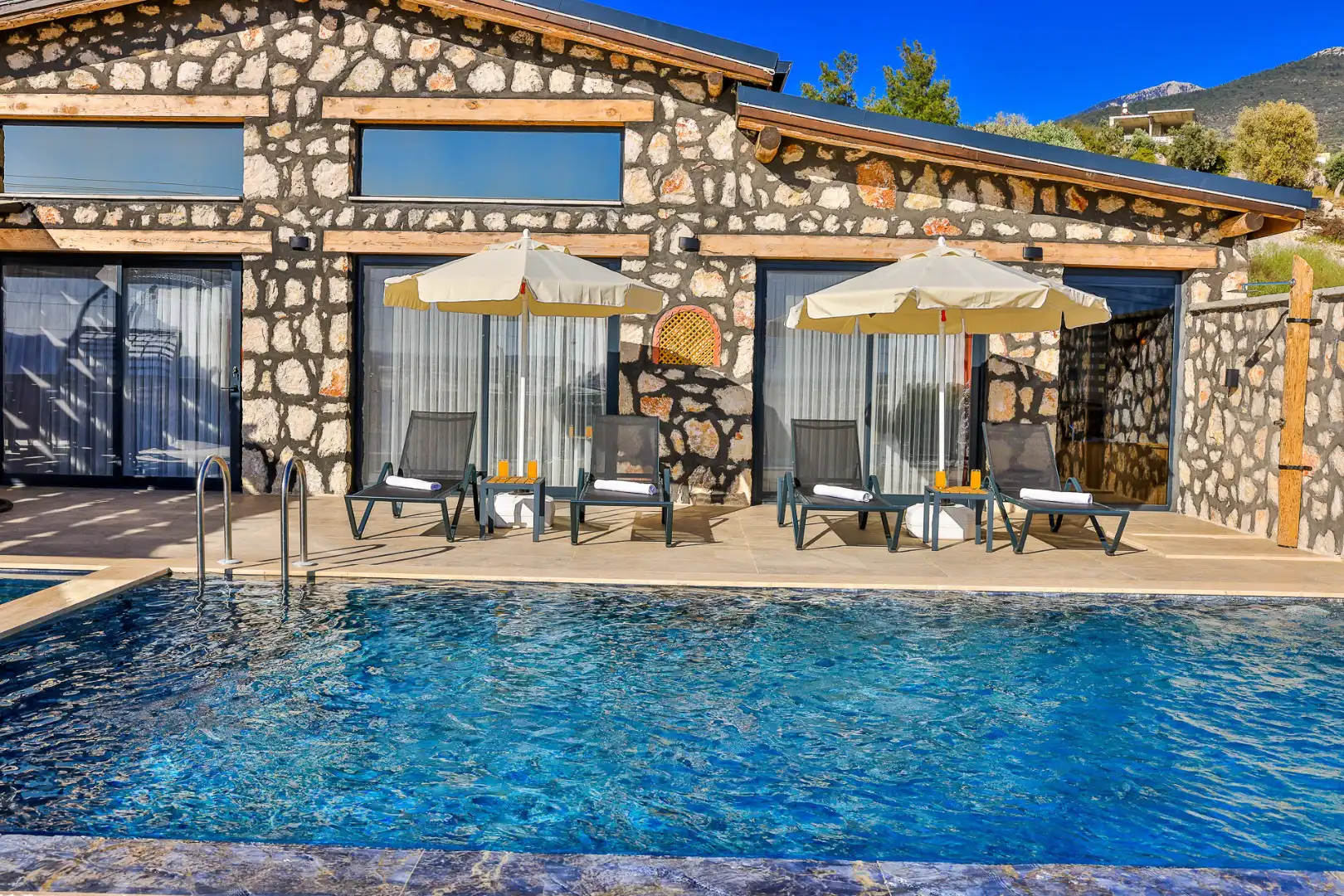 Villa Yıldız, Kaş Kalkan Bölgesinde yer alan muhteşem bir tatil villasıdır. Bu villa, 2 yatak odası ve 4 kişilik kapasiteye sahiptir. Özellikle muhafazakar aileler ve balayı çiftleri için ideal bir seçenektir. Havuz alanı tamamen korunaklıdır ve misafirlerin mahremiyetine önem verilmektedir. Yatak odasında özel banyo ve tuvalet bulunmaktadır.Ayrıca yatak odasında jakuzi bulunmaktadır. Villamızın lüks ve konforlu tasarımı göz kamaştırmaktadır. Havuz terasımız oldukça geniştir ve bu alanda keyifli vakit geçirebilirsiniz.Modern mobilyaları,şık dekarasyonu,modern ile ön plana çıkmaktadır. İhtiyaç duyabileceğiniz tüm temel araç ve gereçler villada mevcuttur. Doğayla iç içe, sakin ve huzurlu bir tatil isteyen misafirlerimiz için mükemmel bir seçimdir.Unutulmaz bir tatil içim Villa Yıldız ,tam da bunun için var.