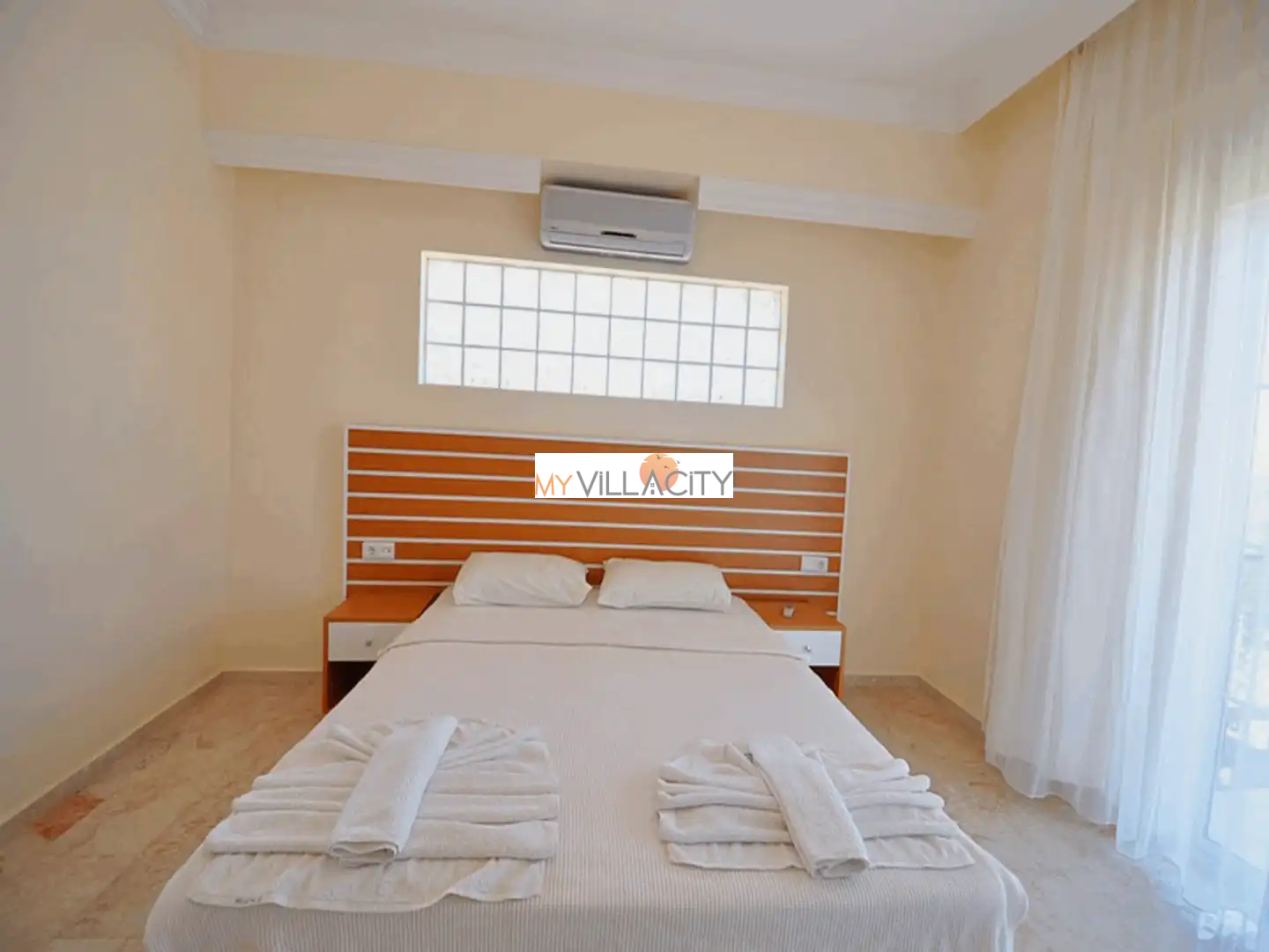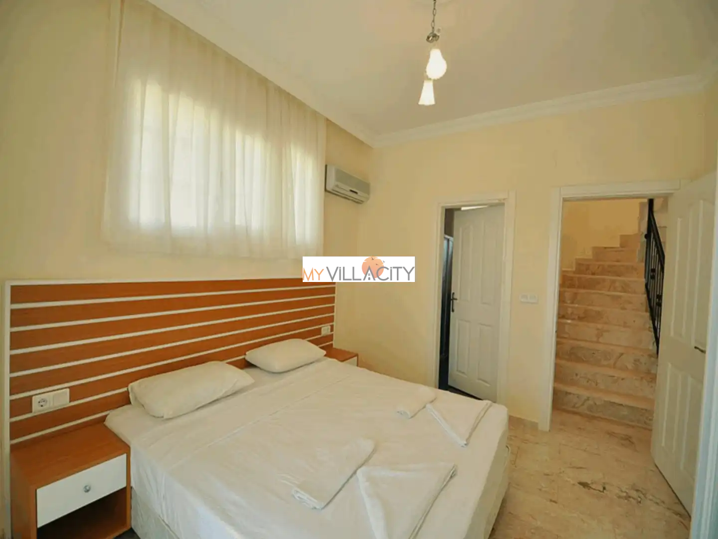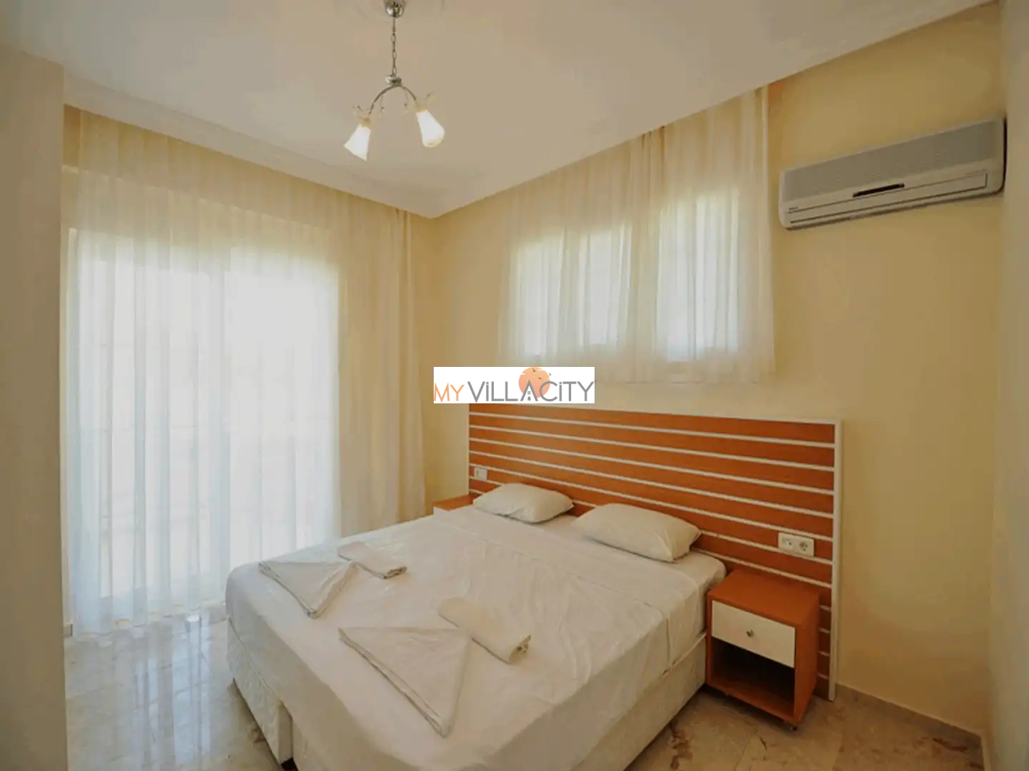 - 1 Çift Kişilik Yatak, 1 Banyo/WC, 2 Komodin, Elbise dolabı, Makyaj Masası, Klima,