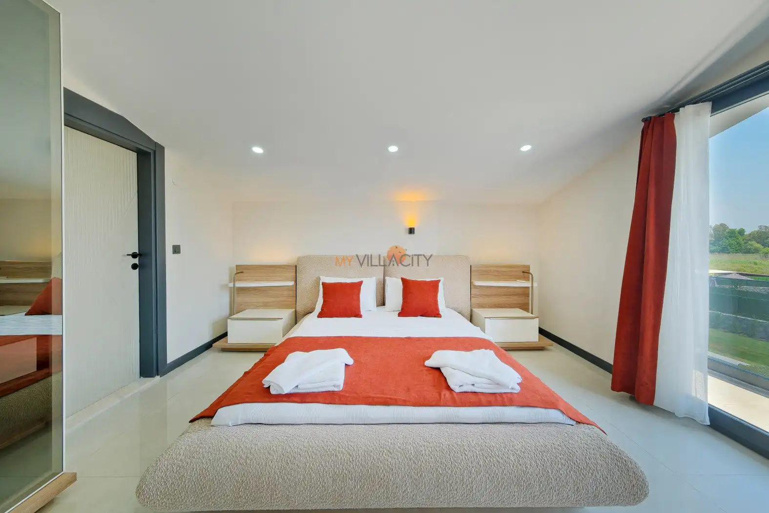 - 1 Çift Kişilik Yatak, 1 Jakuzi, Sauna, 1 Banyo/WC, 2 Komodin, Elbise dolabı, Makyaj Masası, Klima,