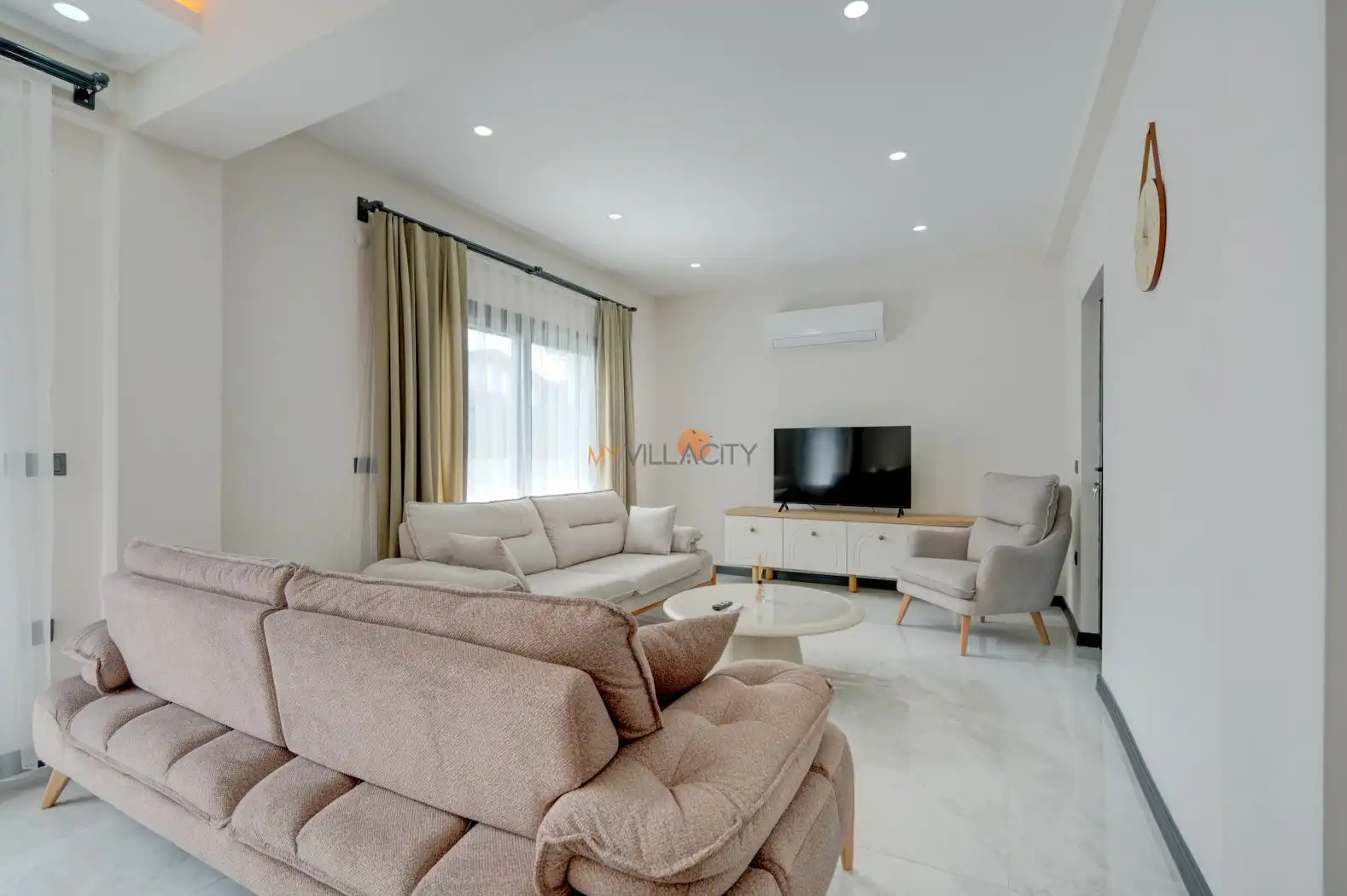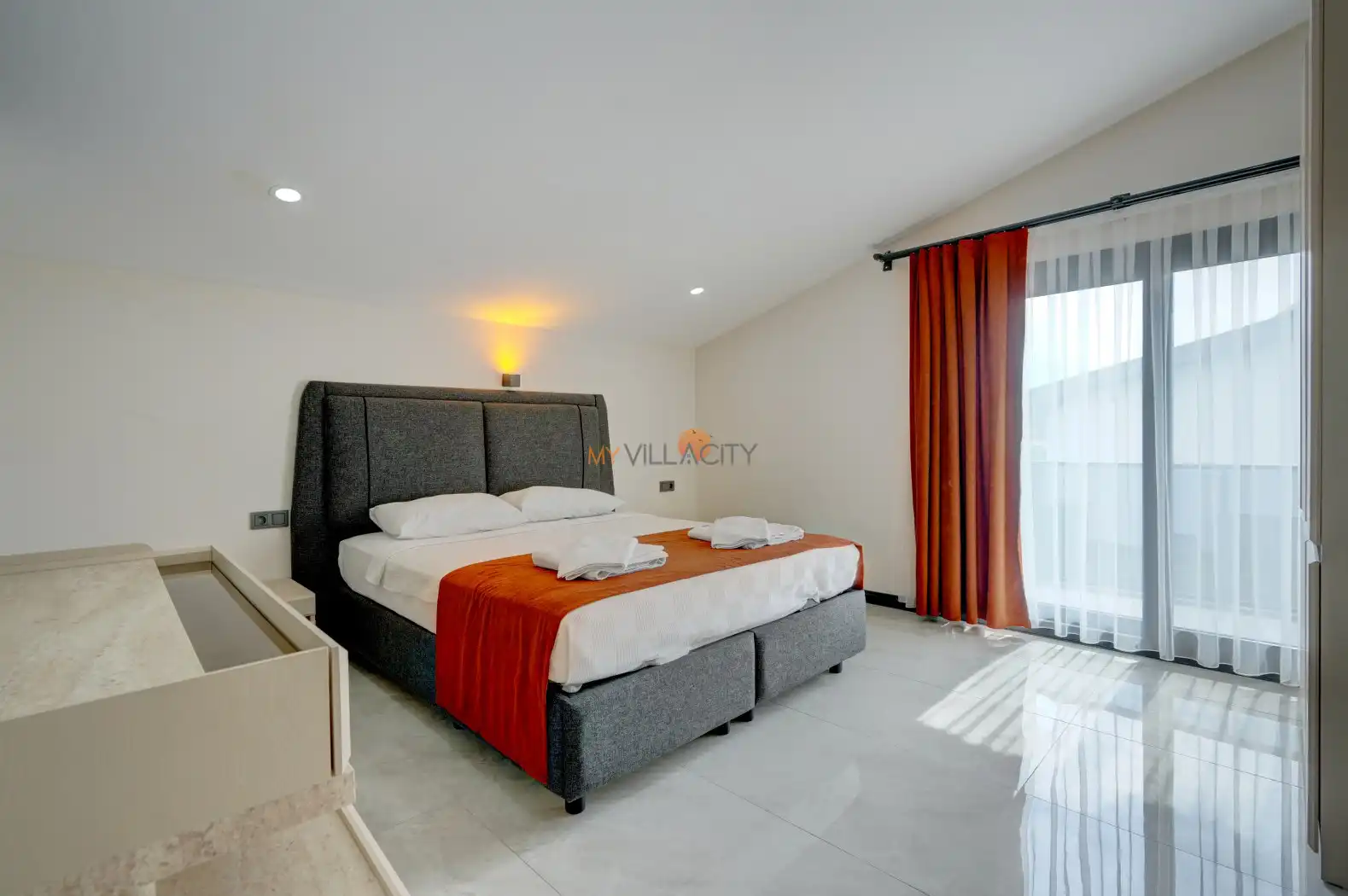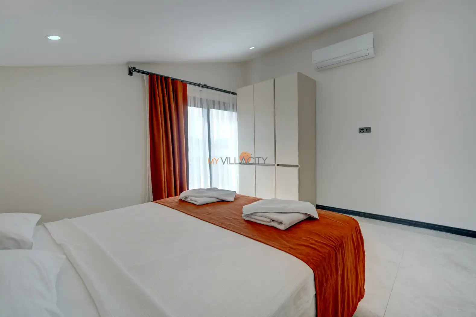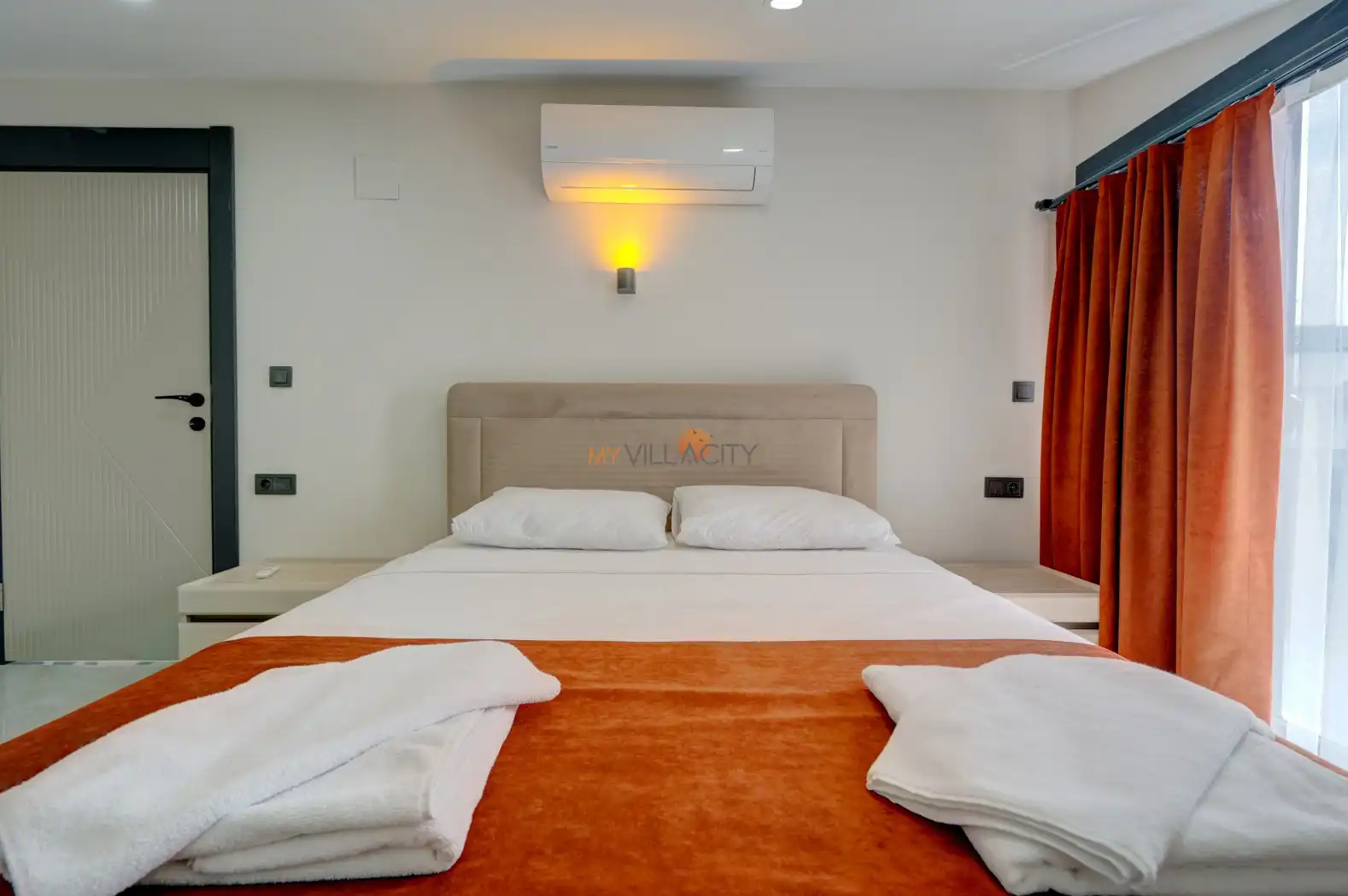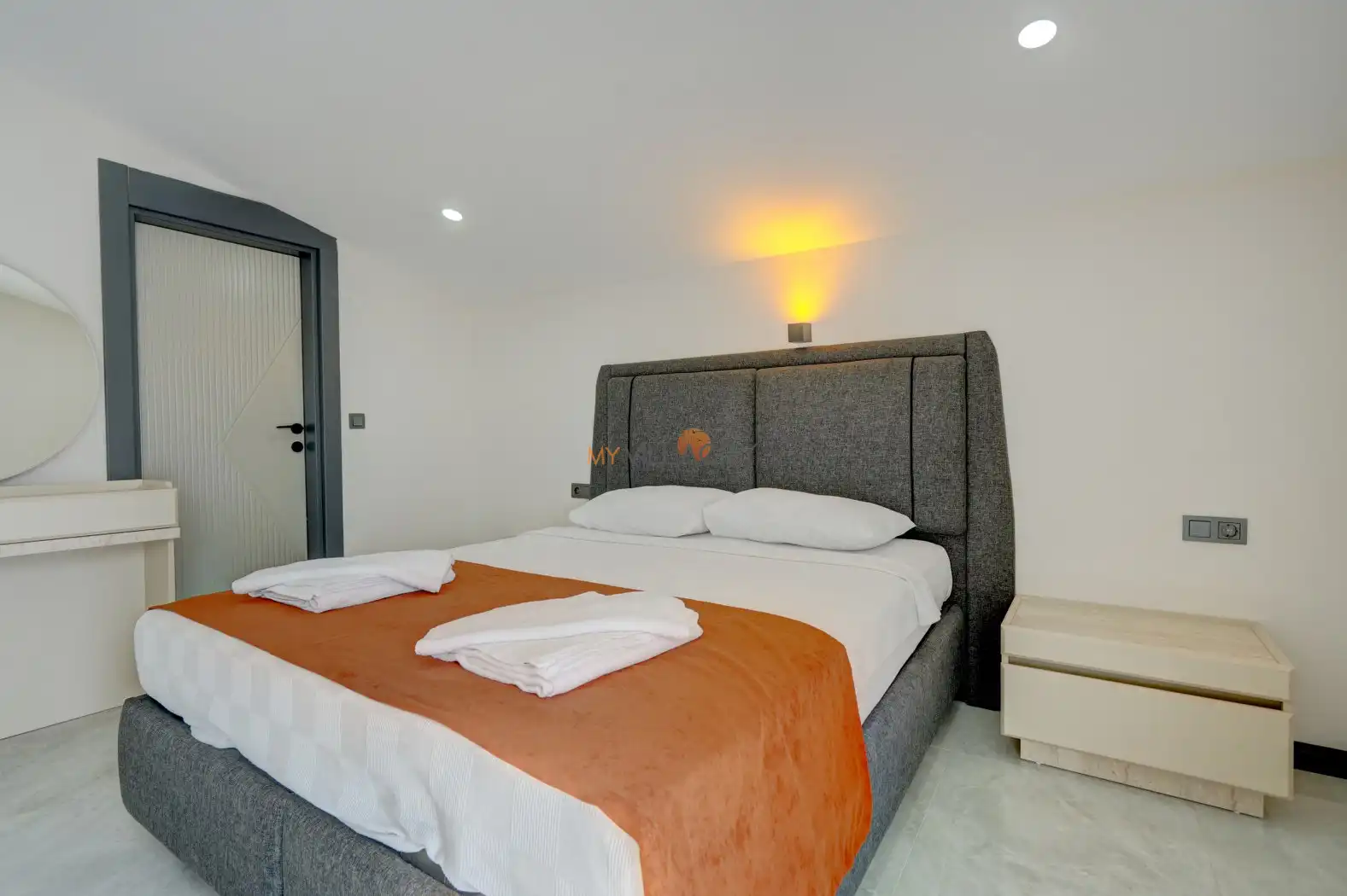 - 1 Çift Kişilik Yatak, 1 Banyo/WC, 2 Komodin, Elbise dolabı, Makyaj Masası, Klima,