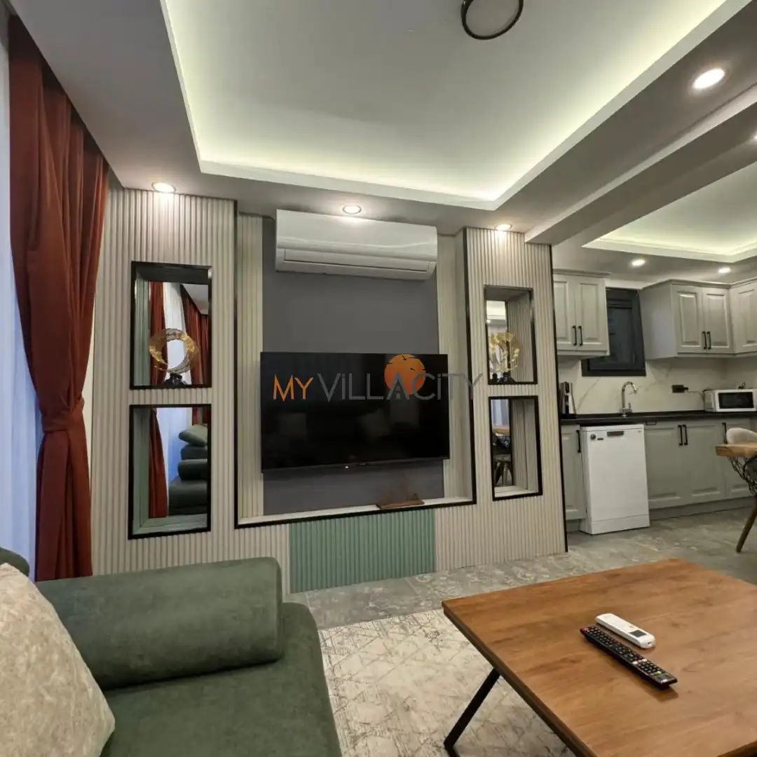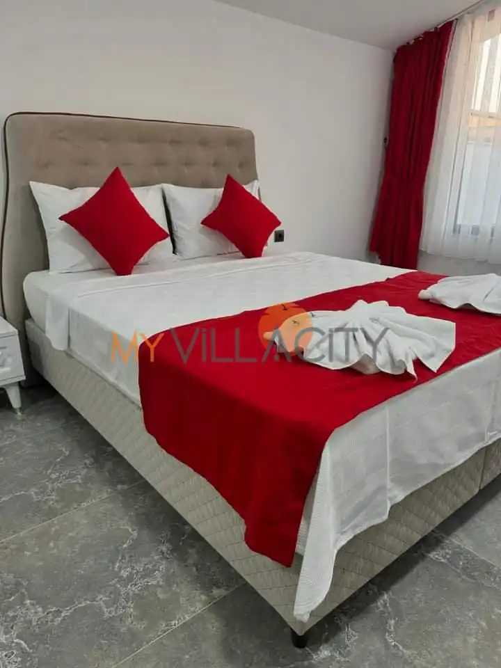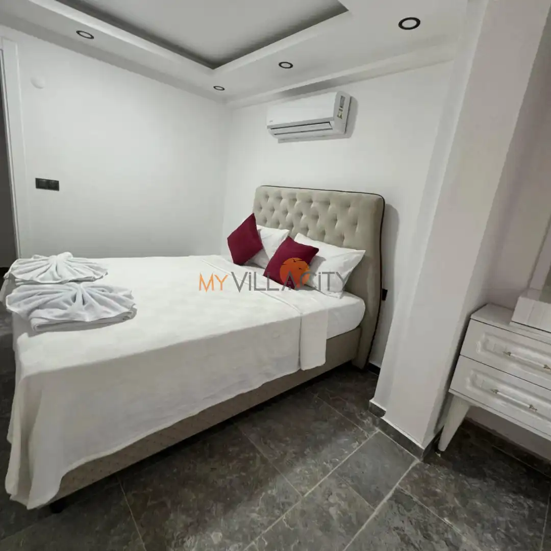 - 1 Çift Kişilik Yatak, 1 Banyo/WC, 2 Komodin, Elbise dolabı, Makyaj Masası, Klima,